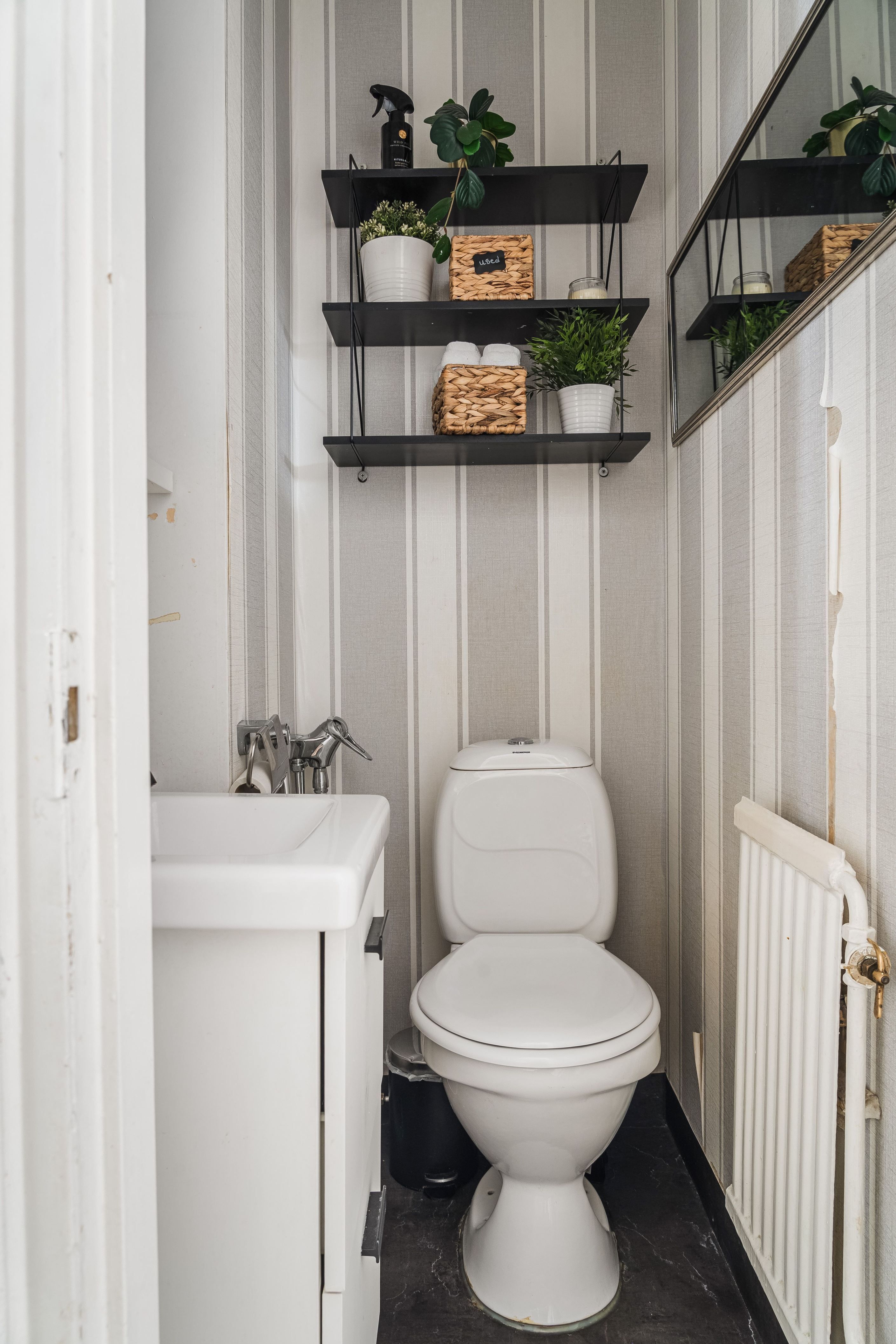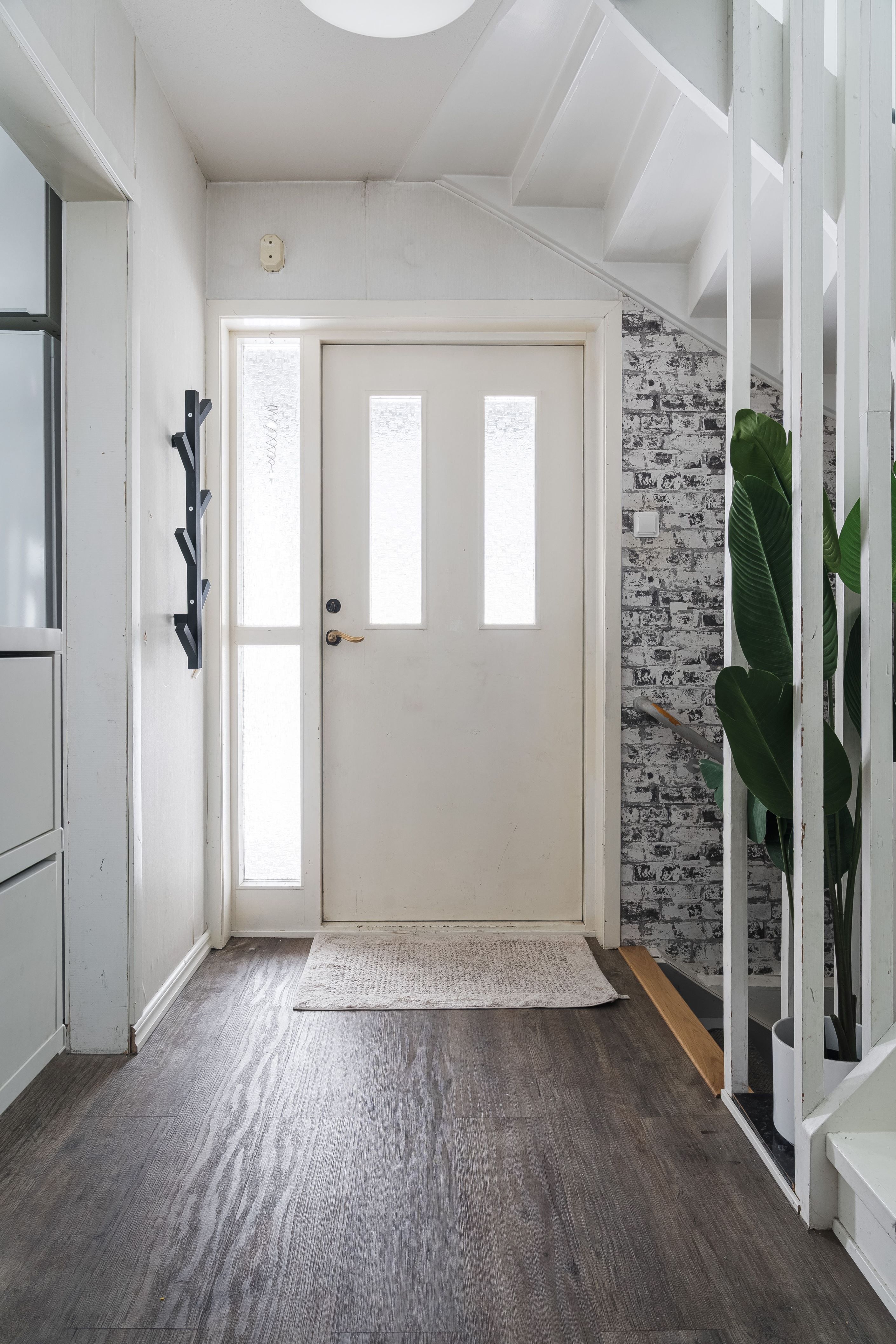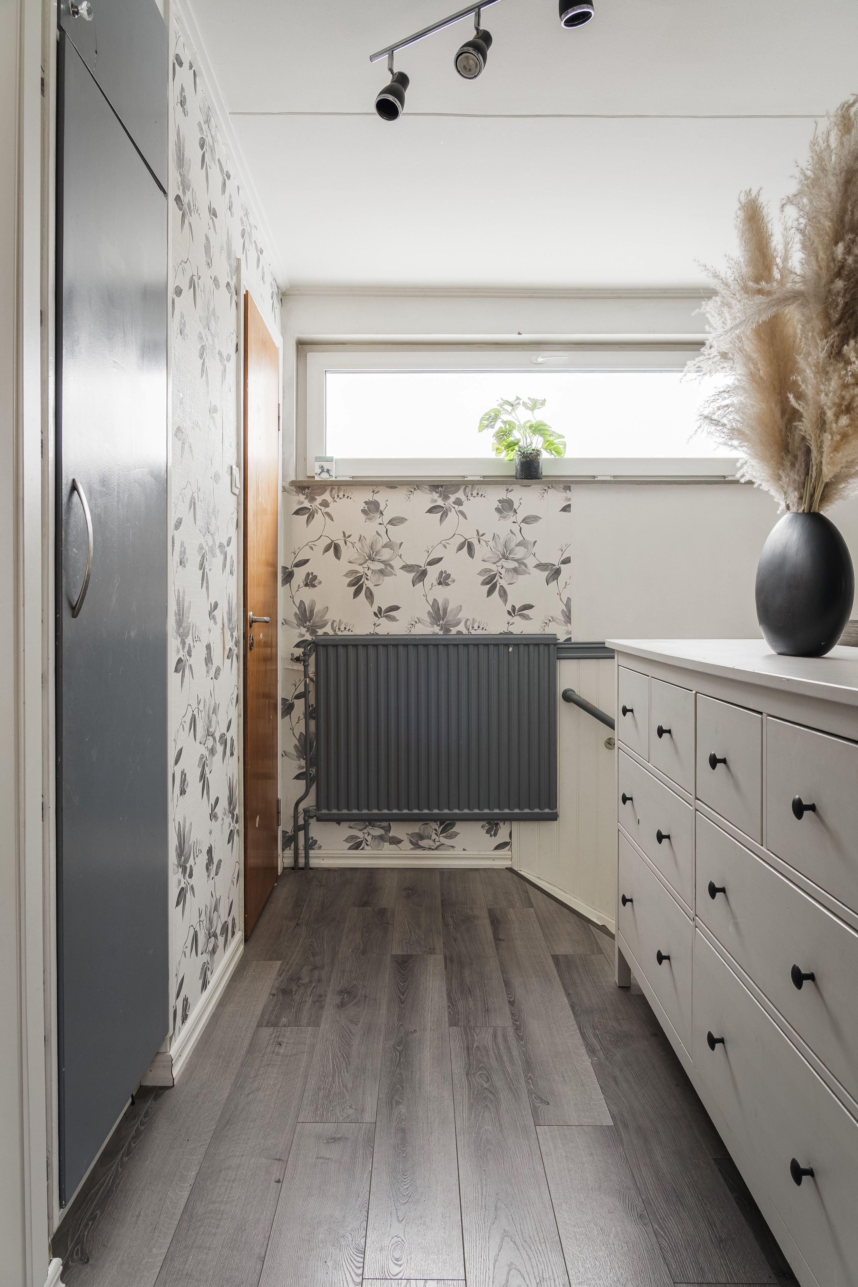 Entréplanet erbjuder även på en praktisk hall med gott om plats för hela familjens ytterkläder samt en renoverad toalett. Från hallen nås både övre plan och källarplan.