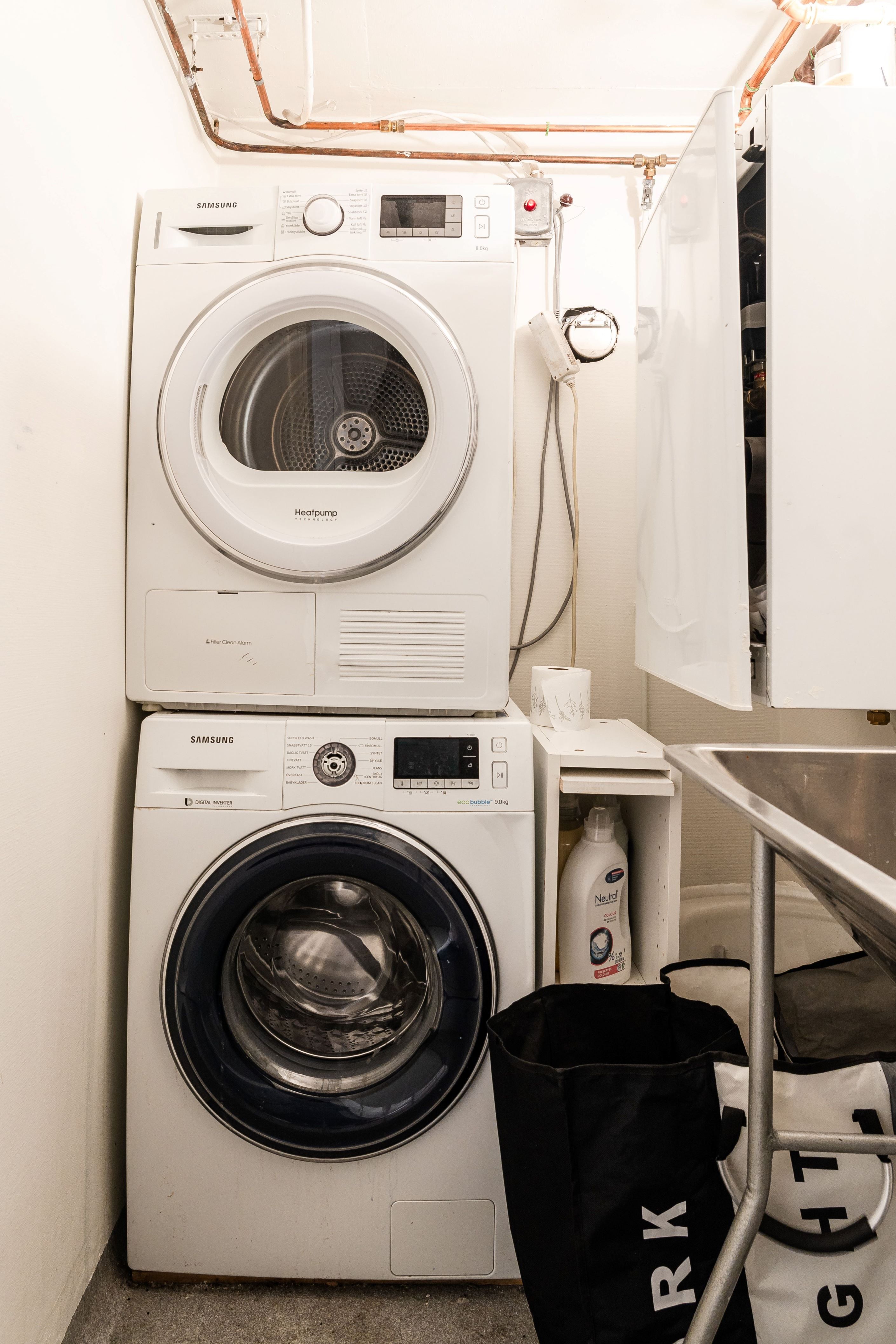 Källarplanet har renoverats och inretts till en trivsam boendedel med två sovrum varav ett mindre rum som kan passa som kontor, här finns även en mindre tvättstuga med tvättmaskin och torktumlare samt två förråd.