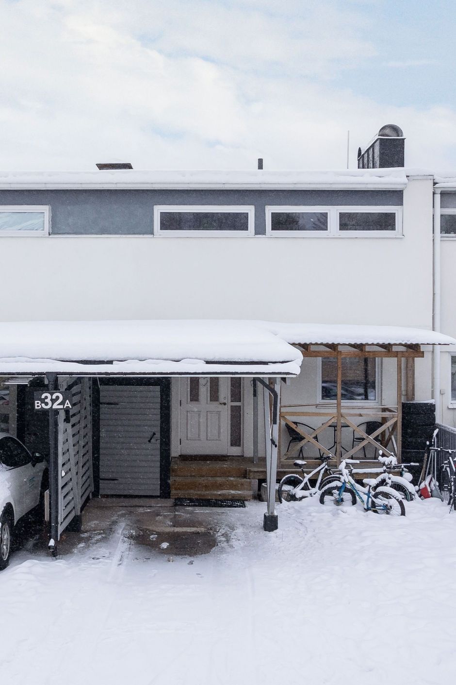 Bostaden har låg driftskostnad tack vare uppvärmning via fjärrvärme och energieffektiva 3-glasfönster. På uppfarten finns plats för två bilar, varav en under carport.