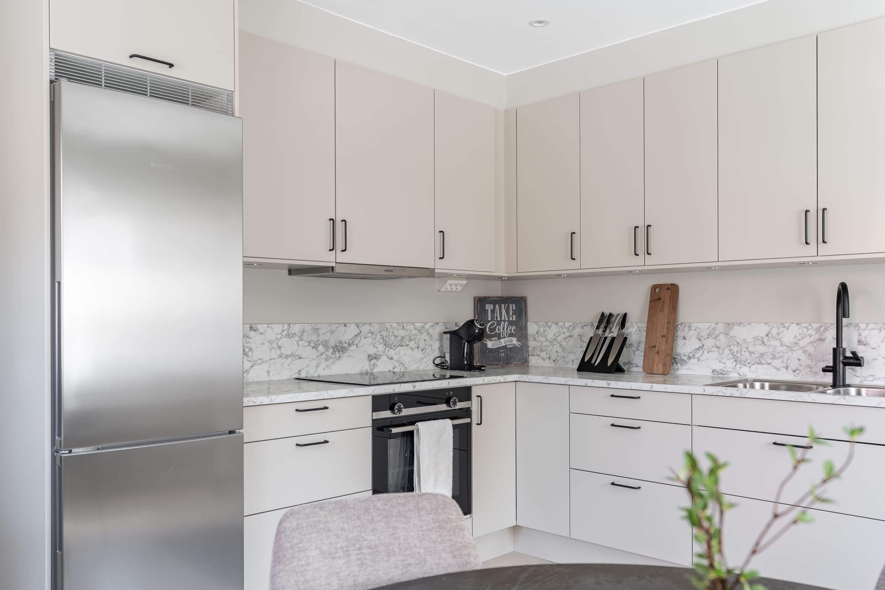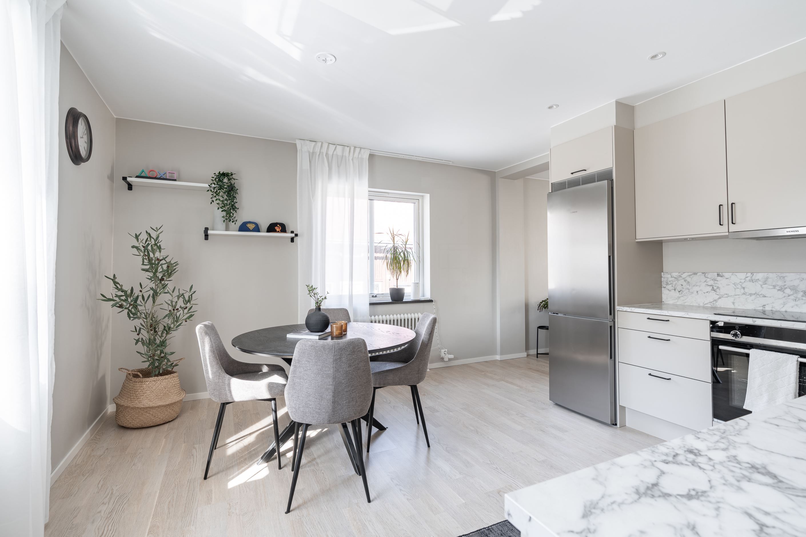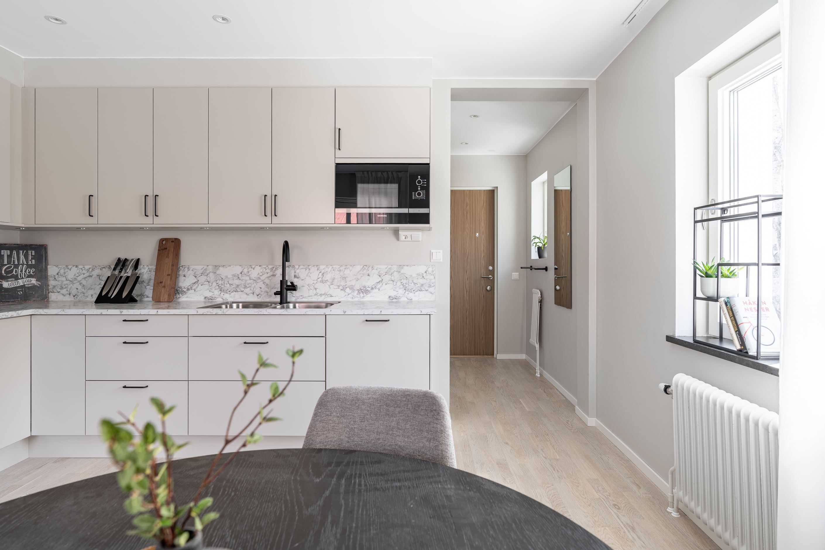 Välkommen till denna stilfulla och totalrenoverade tvåa på Frösön – ett hem där materialval och färgsättning är genomtänkta in i minsta detalj.