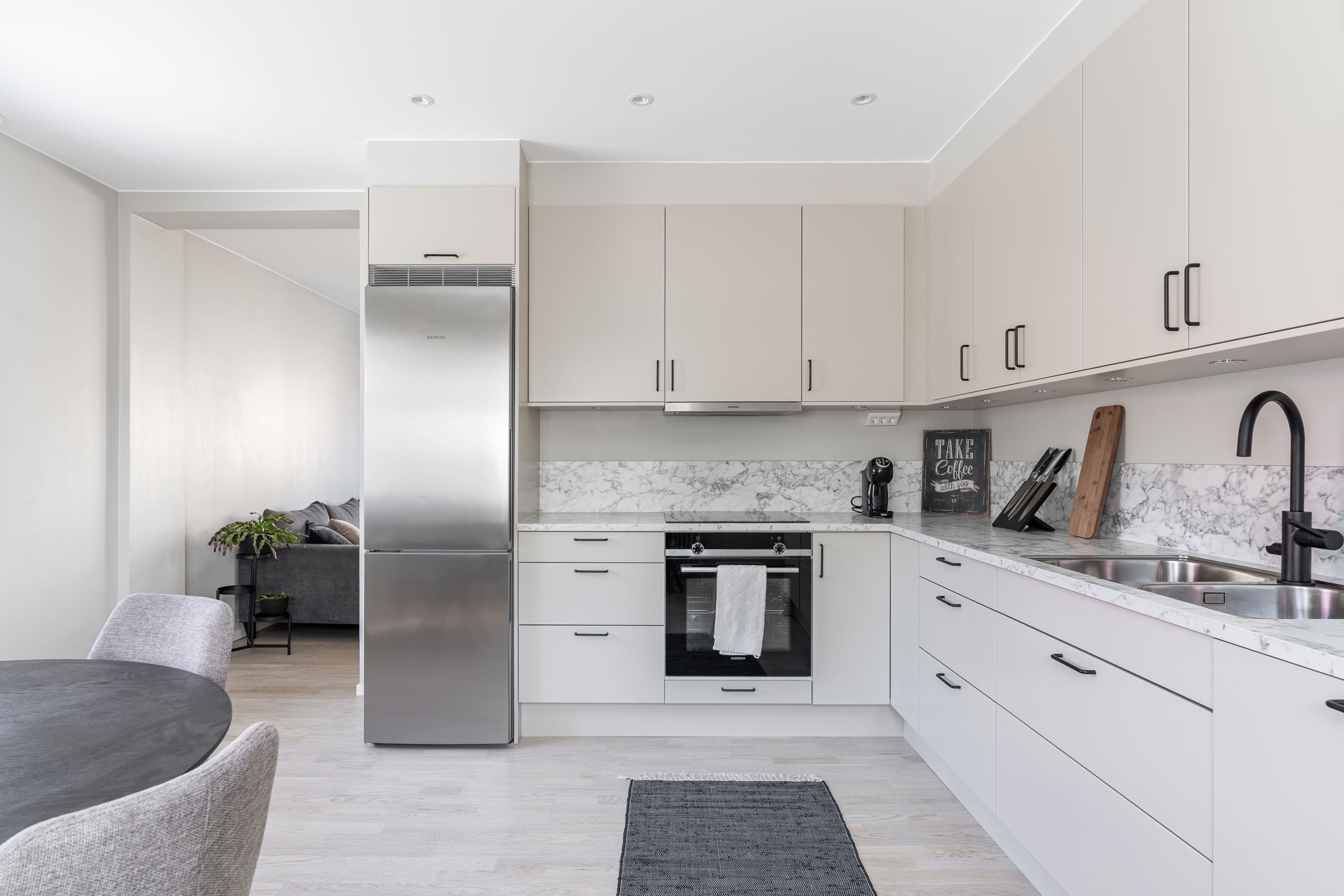 Hela bostaden har renoverats med stil och kvalitet – ljusa ytskikt, enhetliga golv och moderna lösningar skapar ett hem att trivas i från första stund.¨