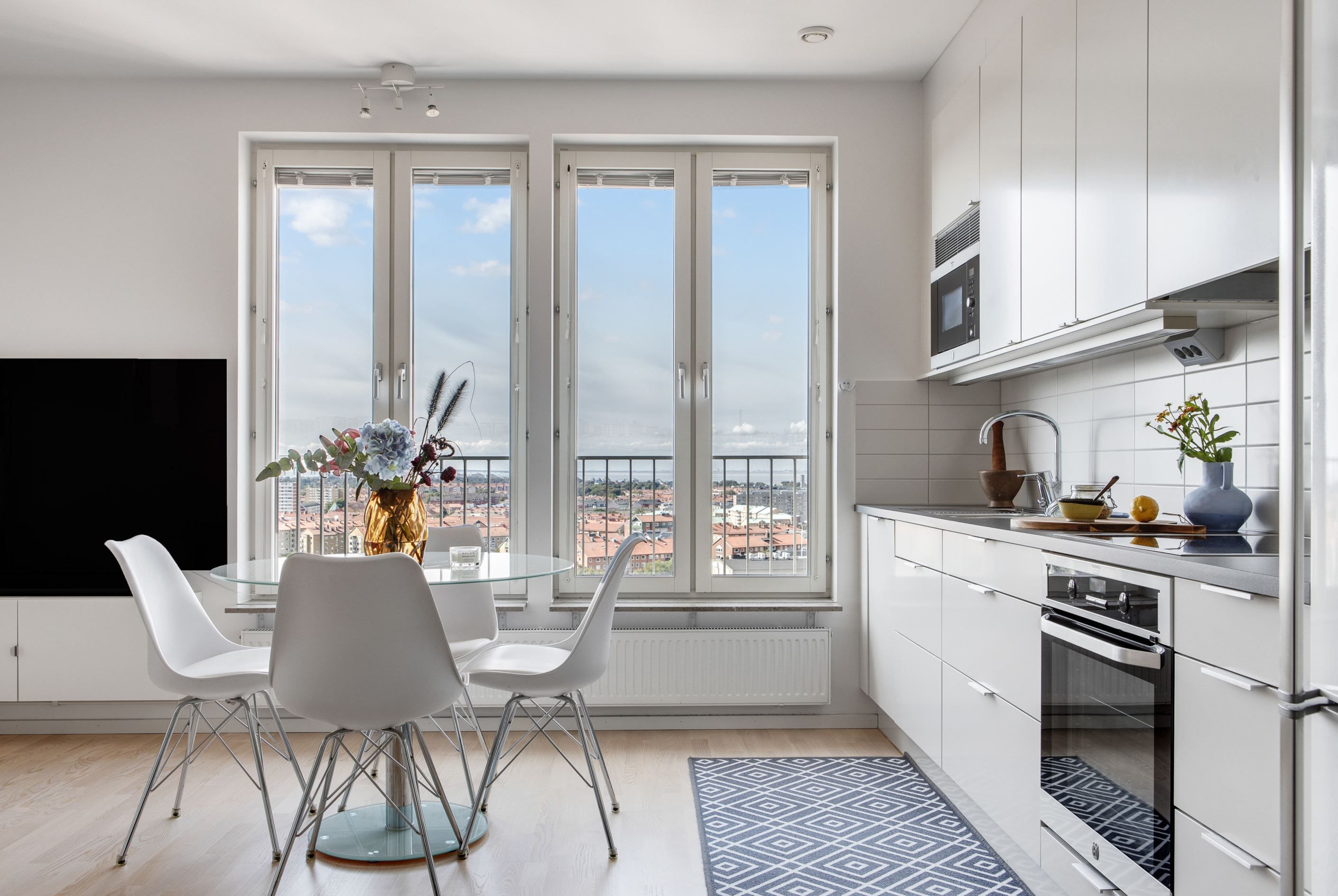 På omåttligt populärt läge ges det nu möjlighet att förvärva denna fantastiska tvårummare om 47 kvm med vidunderlig utsikt över Malmö och Öresund. Lägenheten ligger på våning 16 med hiss från markplan. Från de stora fönsterpartierna lockar en magisk utsikt över både takåsar och Öresund. Bostaden bjuder på väldisponerade kvadratmeter med ett rymligt sovrum, öppna, sociala sällskapsytor samt ett väl tilltaget badrum med tvättmöjligheter. Hela lägenheten har nytt parkettgolv och nymålade släta väggar. Föreningen har en grönskande och vacker innergård samt en fantastisk terrass att tillgå. Dessutom garage i huset och en engagerad och stabil förening.