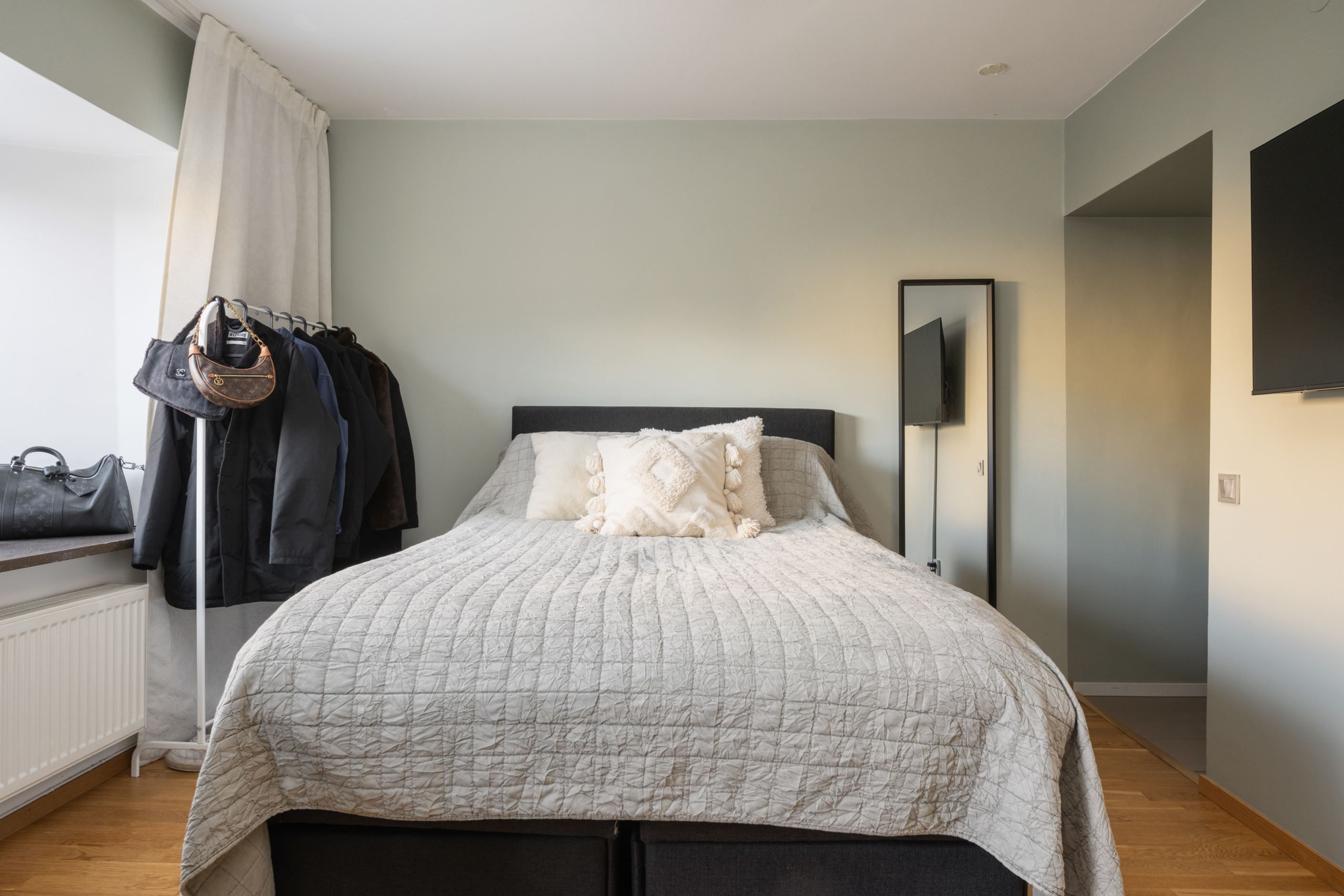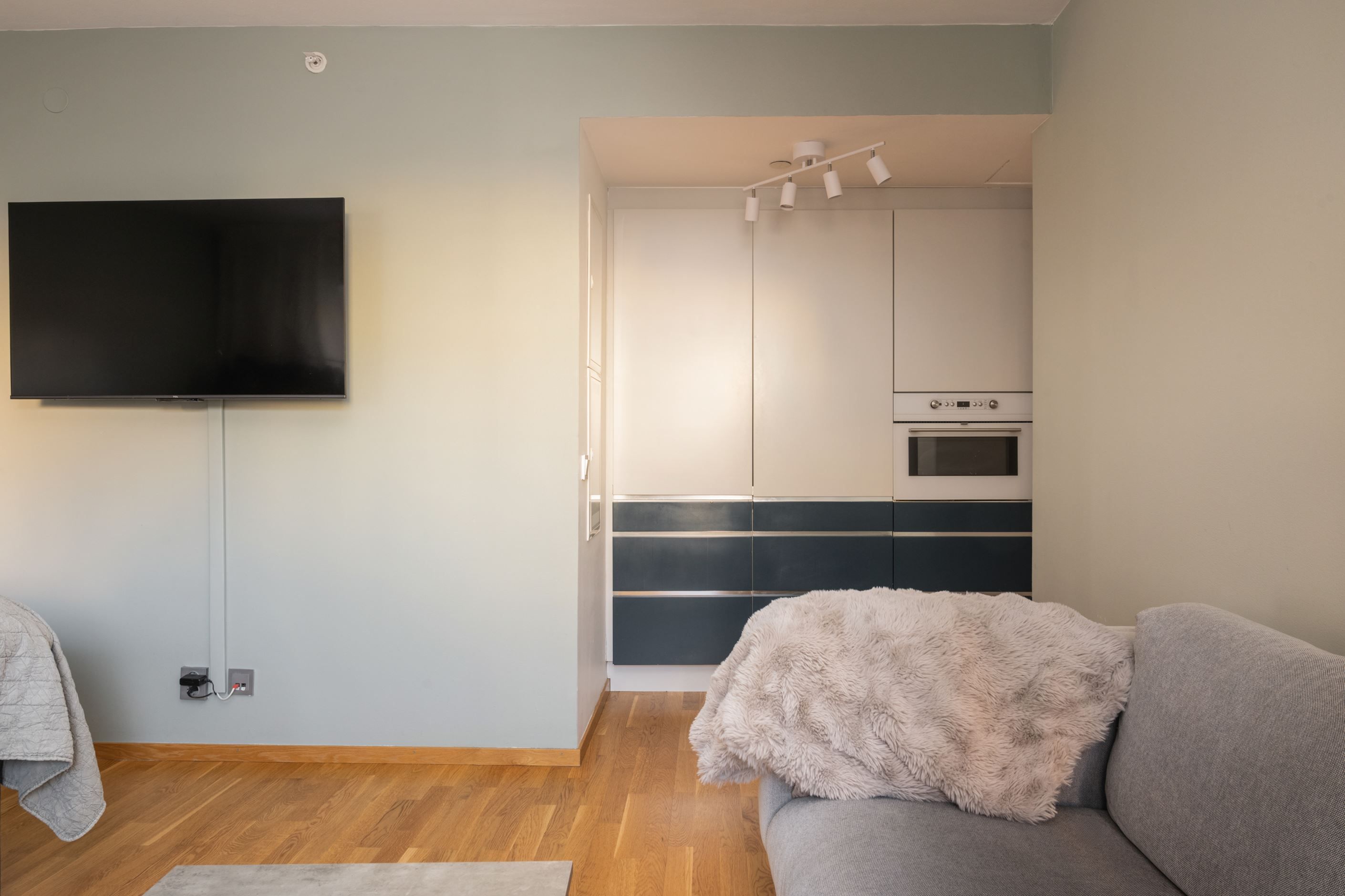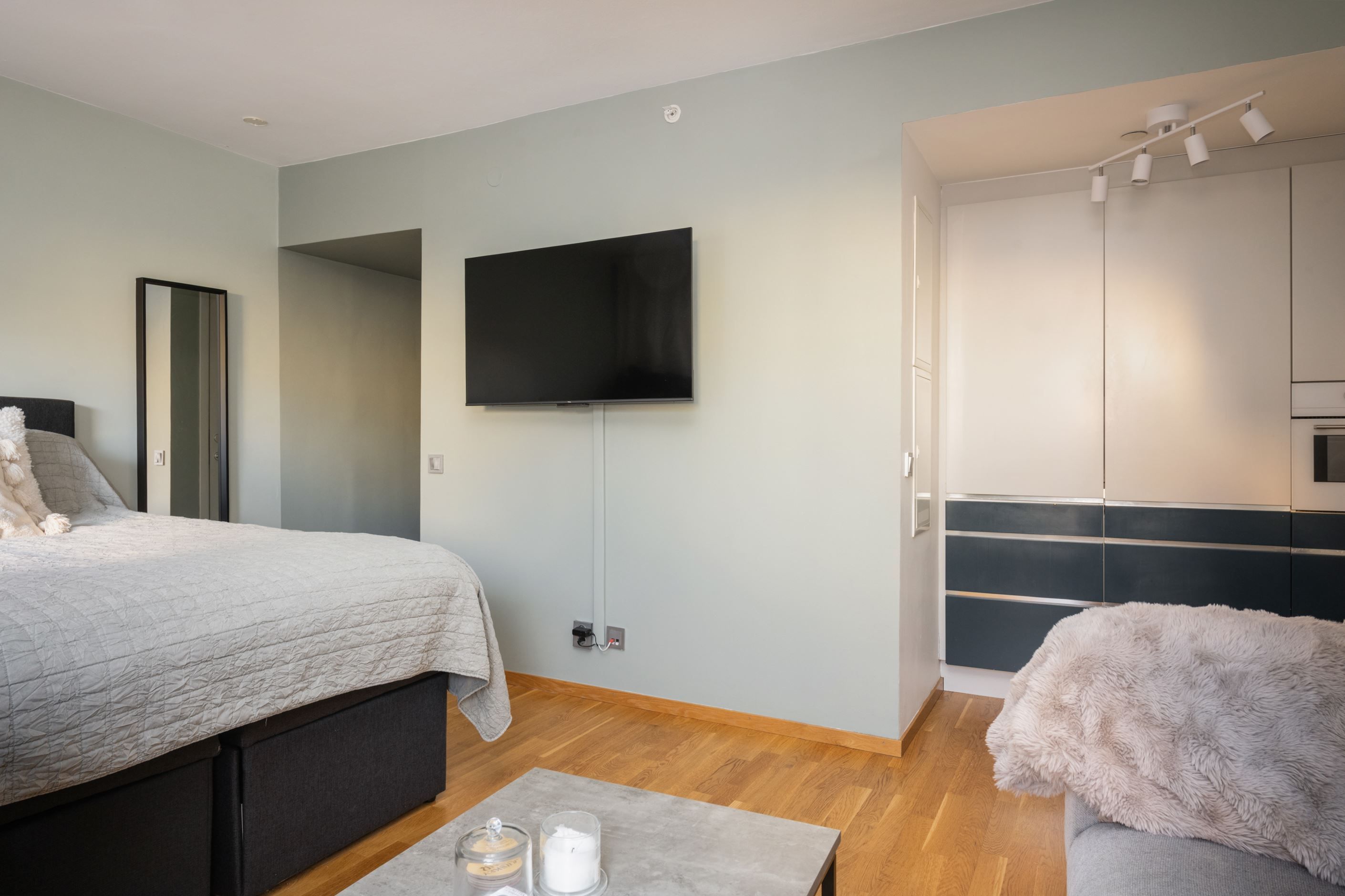 Stilrena och funktionella materialval genomsyrar bostaden, från inredning till ytskikt och det stora fönsterpartiet ger ett underbart ljusinsläpp. Genomgående trägolv skapar en varm och enhetlig känsla. Smakfullt badrum, säng med praktisk förvaring undertill samt ett ändamålsenligt, platsbyggt kök som har maskinell utrustning i form av kyl, ugn, spis, diskho och tvättmaskin. Här erbjuds kompakt boende när det är som bäst. Dessa egenskaper är endast ett smakprov på vad som gör denna bostad till en oöverträfflig studiolägenhet.
