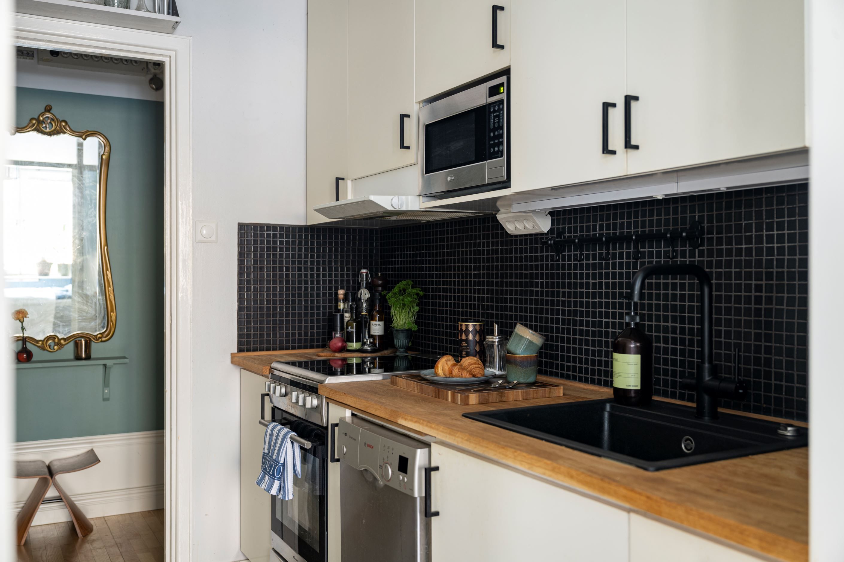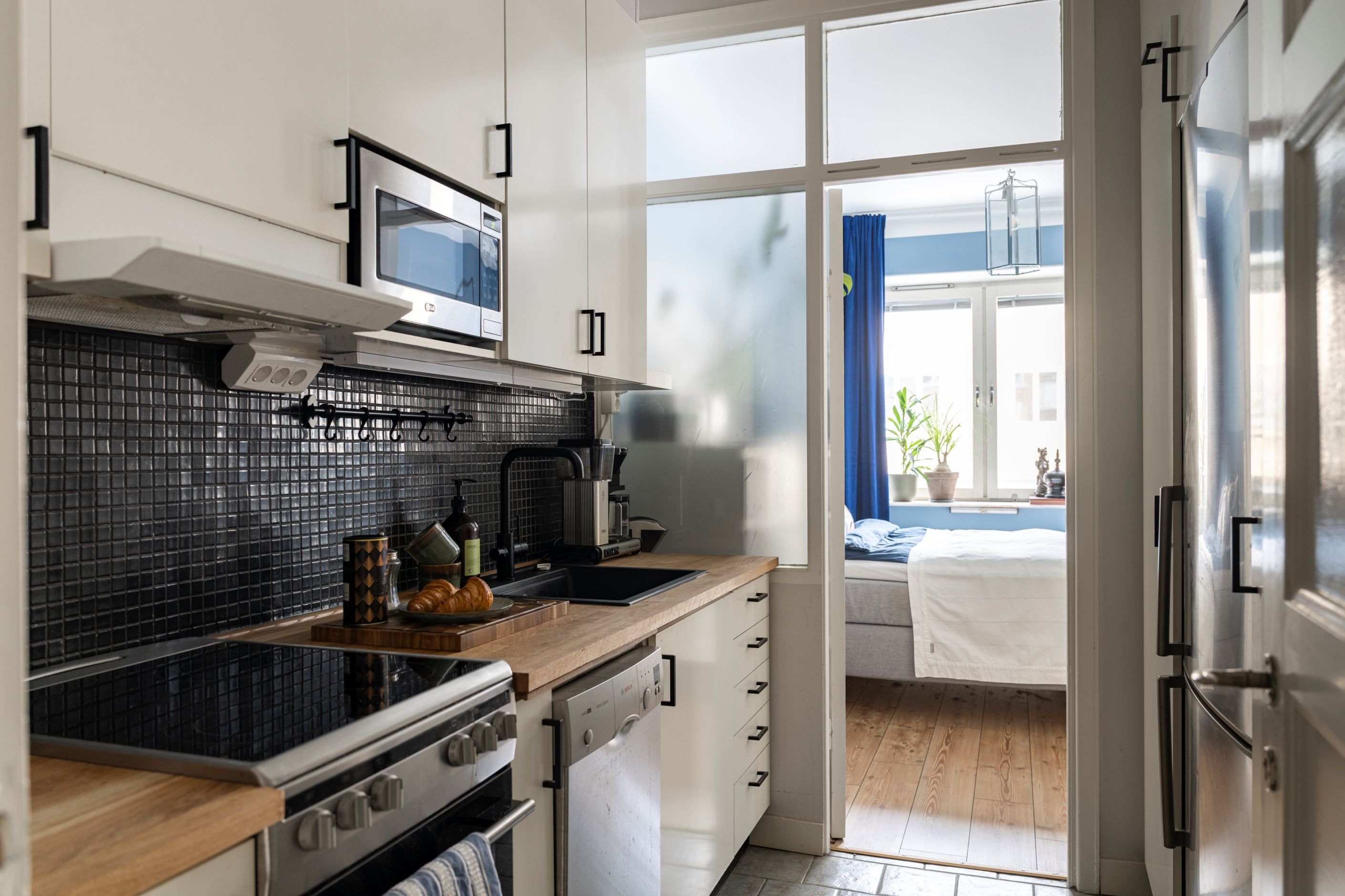 Från vardagsrummet nås den stora balkongen som förlänger bostaden under årets varmare månader – en självklar plats för avkoppling, odling eller umgänge. Här bor du på en lugn gata med klassisk funkiskaraktär och närhet till både service och kommunikationer.