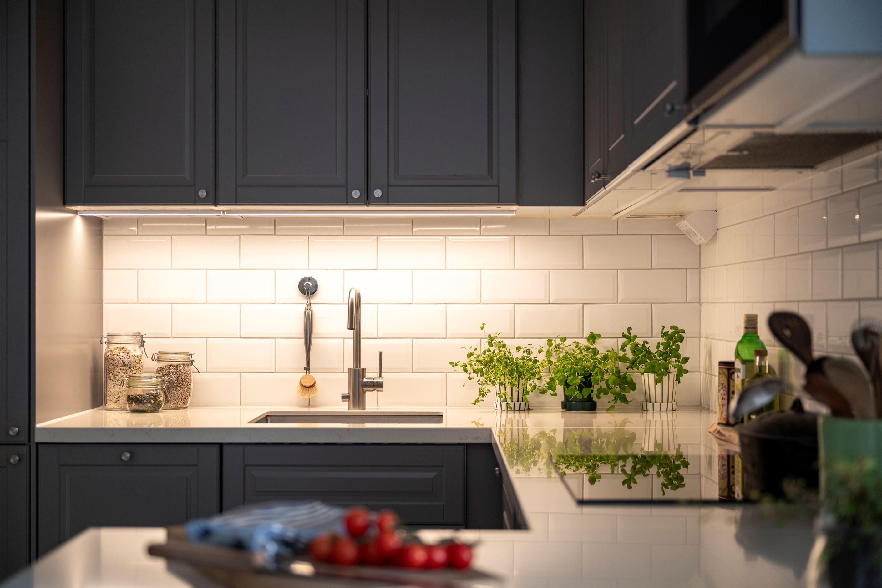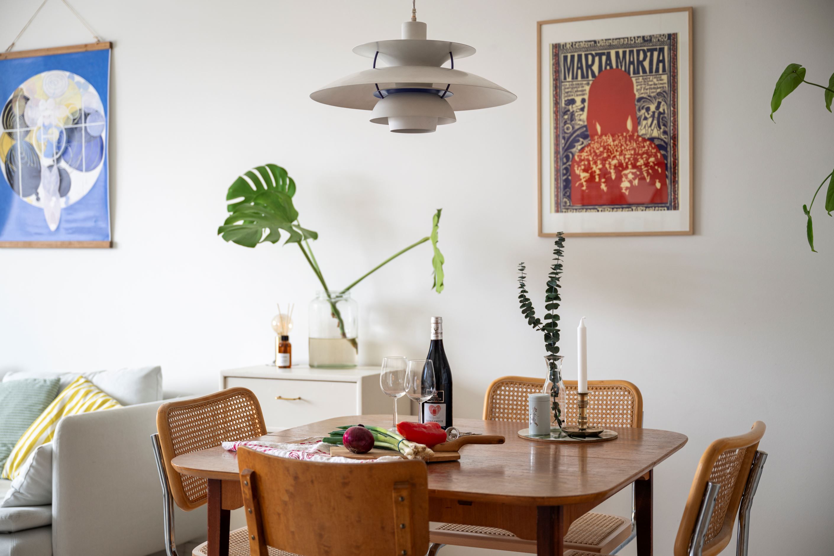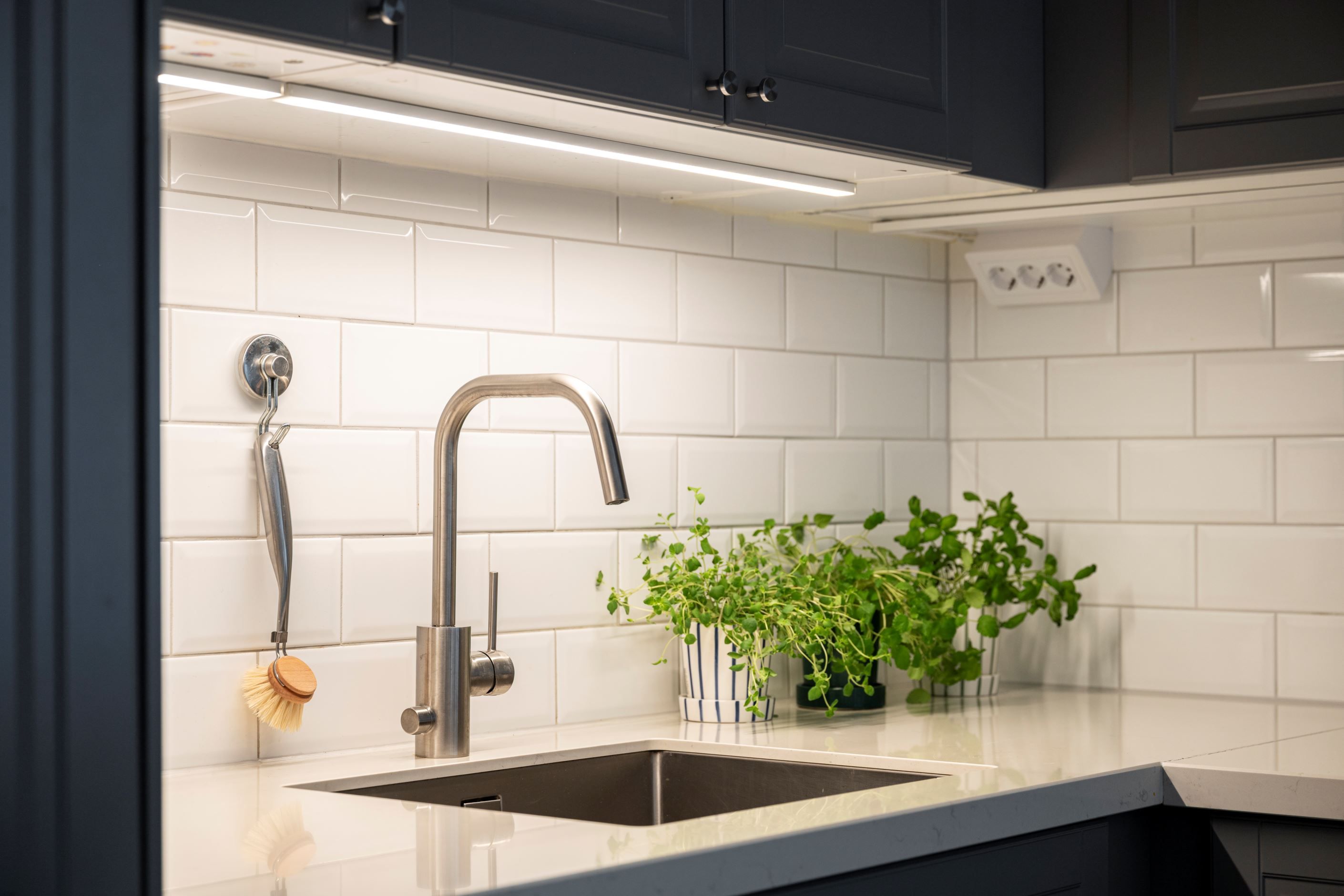 Det sociala hjärtat av hemmet är den öppna planlösningen mellan kök och vardagsrum. Köket är fräscht och fullt utrustat med allt du behöver, inklusive gott om arbetsyta för både vardagsmatlagning och större middagsbestyr. Vardagsrummet rymmer med lätthet både soffgrupp och matplats.