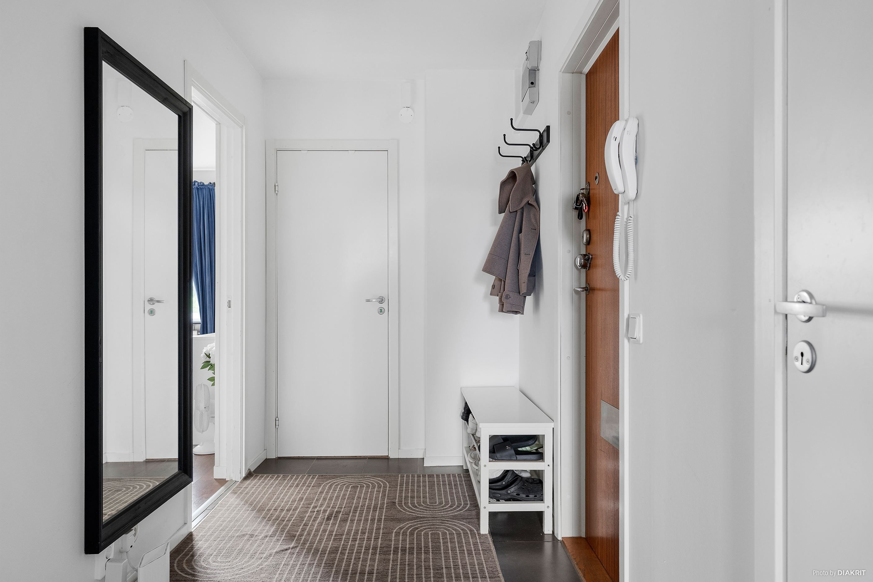 När du kliver in möts du av en inbjudande hall med praktisk klädkammare – perfekt för att hålla ordning på ytterkläder och skor. Köket är stilrent och ljust, med gott om förvaring och arbetsyta för den matlagningsintresserade. Vardagsrummet är rymligt och ljust tack vare stora fönsterpartier som släpper in härligt dagsljus. Härifrån når du den inglasade balkongen – en underbar plats att njuta av både morgonkaffet och kvällssolen med utsikt mot grönskande omgivningar. Sovrummet är generöst tilltaget och erbjuder gott om förvaringsmöjligheter. Badrummet är nyrenoverat i hög standard – helkaklat i ljusa, moderna färger och utrustat med tvättmaskin och praktisk förvaring. Här är det bara att kliva in och njuta av känslan av nytt och fräscht!