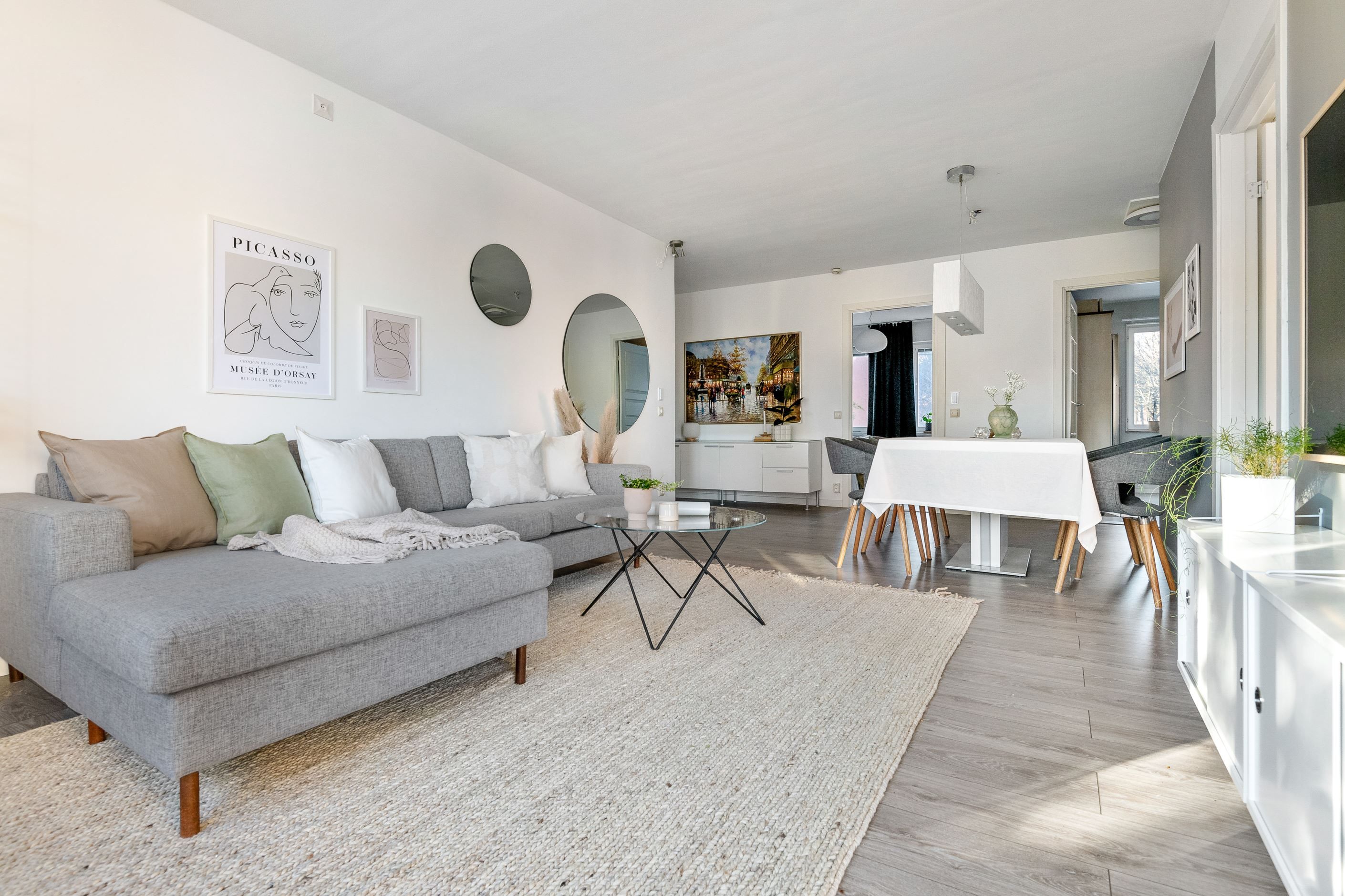 Lägenheten är genomgående i gott skick med omsorgsfullt valda material och rikligt med ljusinsläpp från tre väderstreck. Planlösningen är genomtänkt och ingen kvadratmeter går till spillo. Vardagsrummet är bostadens mittpunkt; ljust, luftigt, lättmöblerat och således perfekt för sociala sammankomster och trevliga middagar med vänner och familj. Härifrån når du den stora inglasade balkongen i söderläge, utrustad med infravärme och heltäckningsmatta, vilket bjuder in till härligt balkonghäng året runt. Bostaden erbjuder ett modernt Puustelli-kök i ljusa toner och med vitvaror som nyligen uppgraderats. Här finns också tre sovrum varav ett av dessa idag disponeras som ett barnrum, men detta kan också användas som exempelvis ett hemmakontor. Fräscht, rymligt och fullt utrustat badrum med tvättmaskin på plats, vilket underlättar vardagssysslorna rejält. Även separat gäst-WC finns att tillgå.