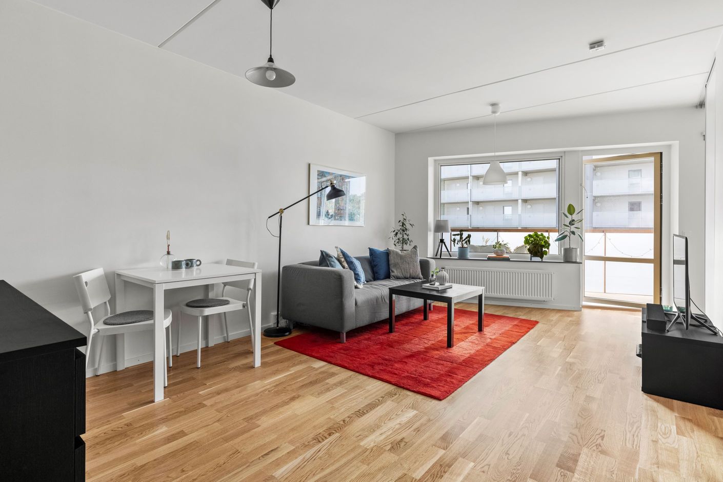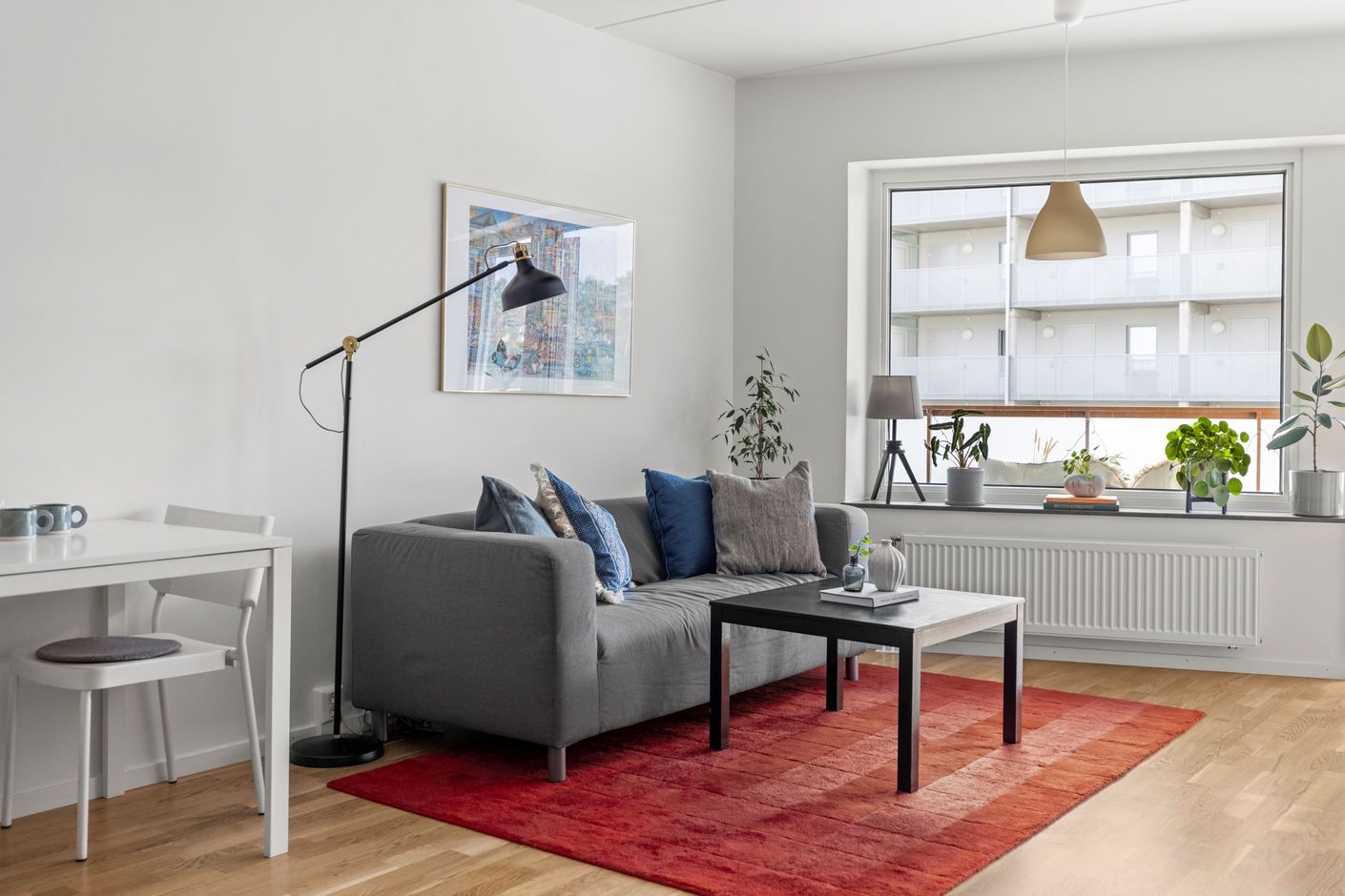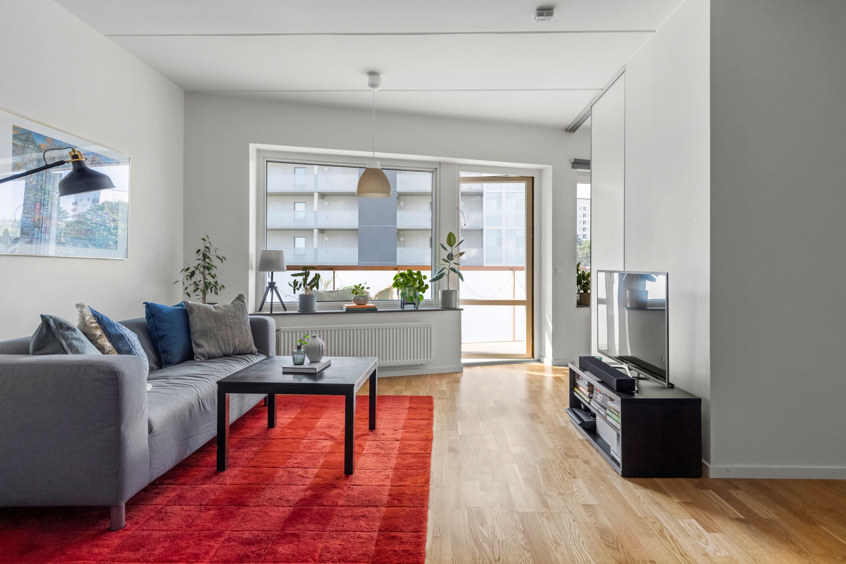 Bostaden erbjuder 45 mycket genomtänkta kvm i en öppen/social-planlösning. Tack vare den öppna planlösningen tillsammans med den fantastiska ljusinsläppen via de väl tilltagna fönsterpartierna så skapas en härlig atmosfär och rymd i bostaden. Man välkomnad av den rymliga hallen med goda förvaringsmöjligheter via en stor klädkammare. Vidare in i bostaden finner ni den stora helkaklade badrummet med alla tänkbara bekvämligheter, såsom exempelvis tvättmaskin och torktumlare. Stort och lättmöblerat vardagsrum i öppen planlösning gentemot det fullutrustade köket med diskmaskin, integrerad mikro, kyl/frys, ugn och induktionshäll. Rymligt sovrum där du får plats med större säng och annat möblemang. Från vardagsrummet tar du dig vidare ut till den härliga balkongen om 9 kvm! Här får du plats med mycket, såsom: solstolar, utemöbler, gasolgrill eller annat möblemang som faller dig i smaken. Ett hem att trivas i helt enkelt!