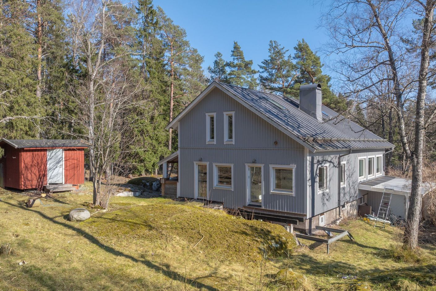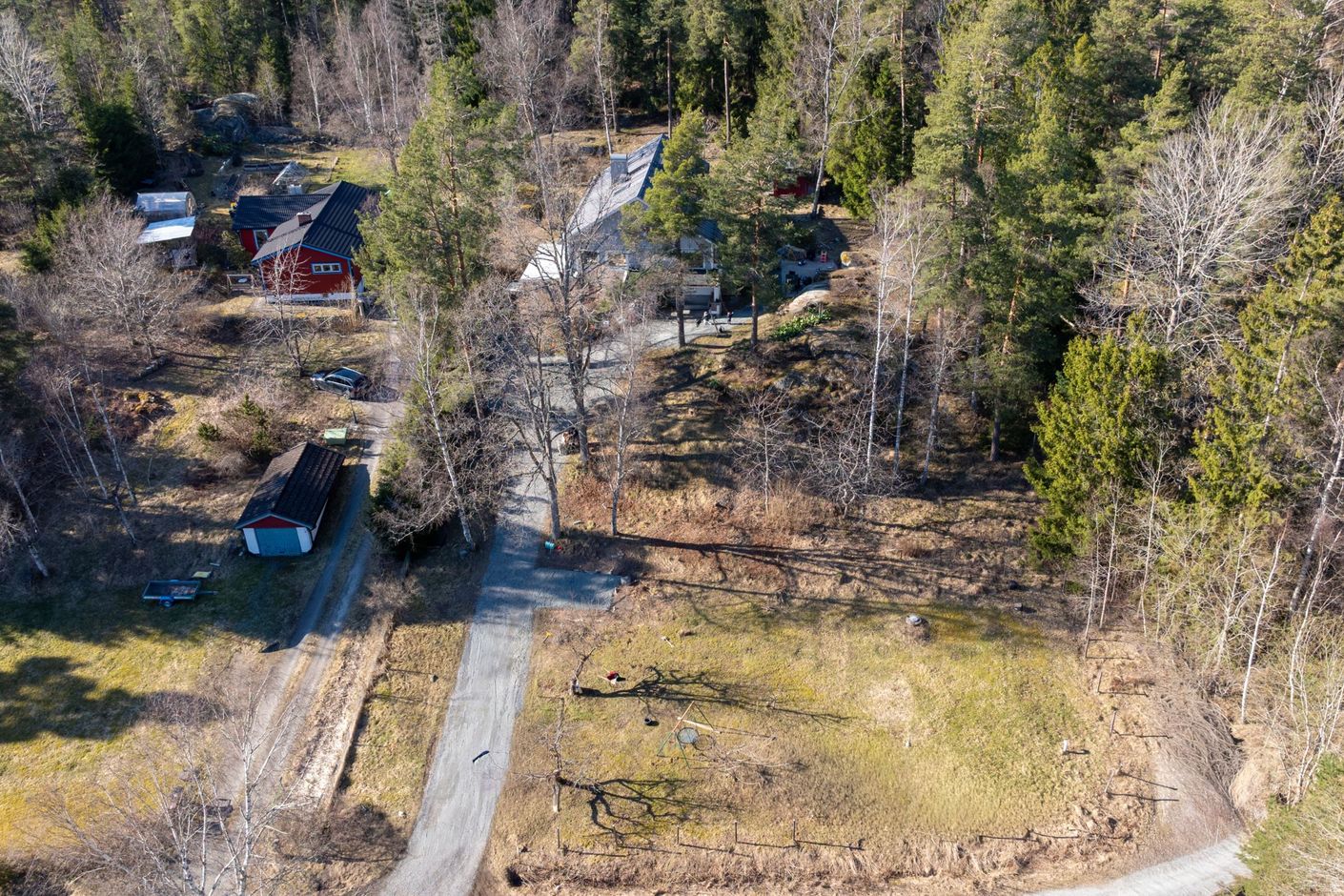 Tomten om 2 891 kvm är en harmonisk kombination av plan trädgårdstomt och naturnära inslag. Här finns generösa ytor för lek och aktivitet, samtidigt som tomten övergår i en mer levande naturmiljö som bjuder in till upptäckarglädje. Strax utanför tomtgränsen tar skogen vid och erbjuder fina promenadstråk och flera mil av natur att utforska. Inom bekvämt avstånd nås även populära Domarudden med motionsspår, badplats, vedeldad bastu, skridskoåkning, skidspår och vackra naturområden.