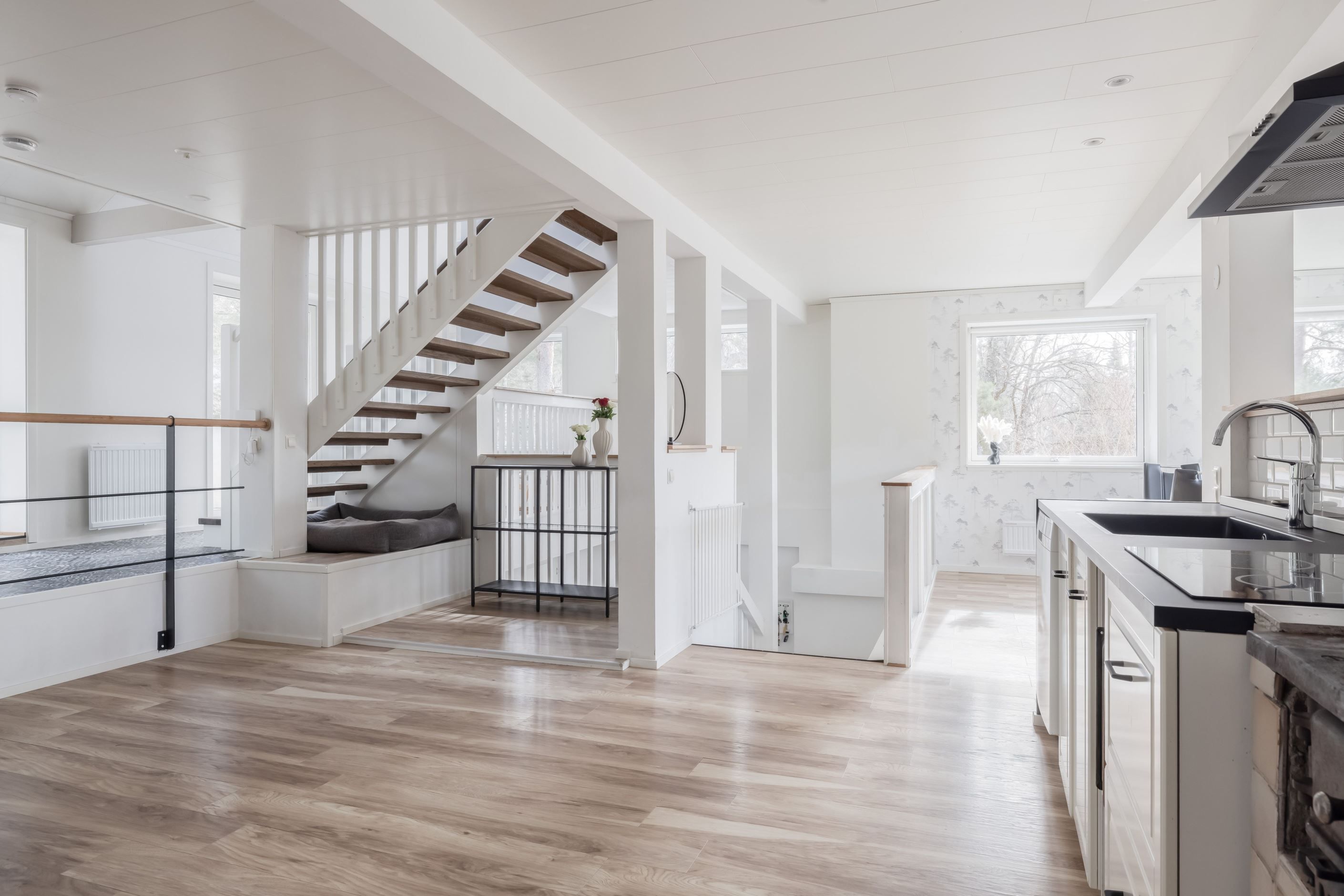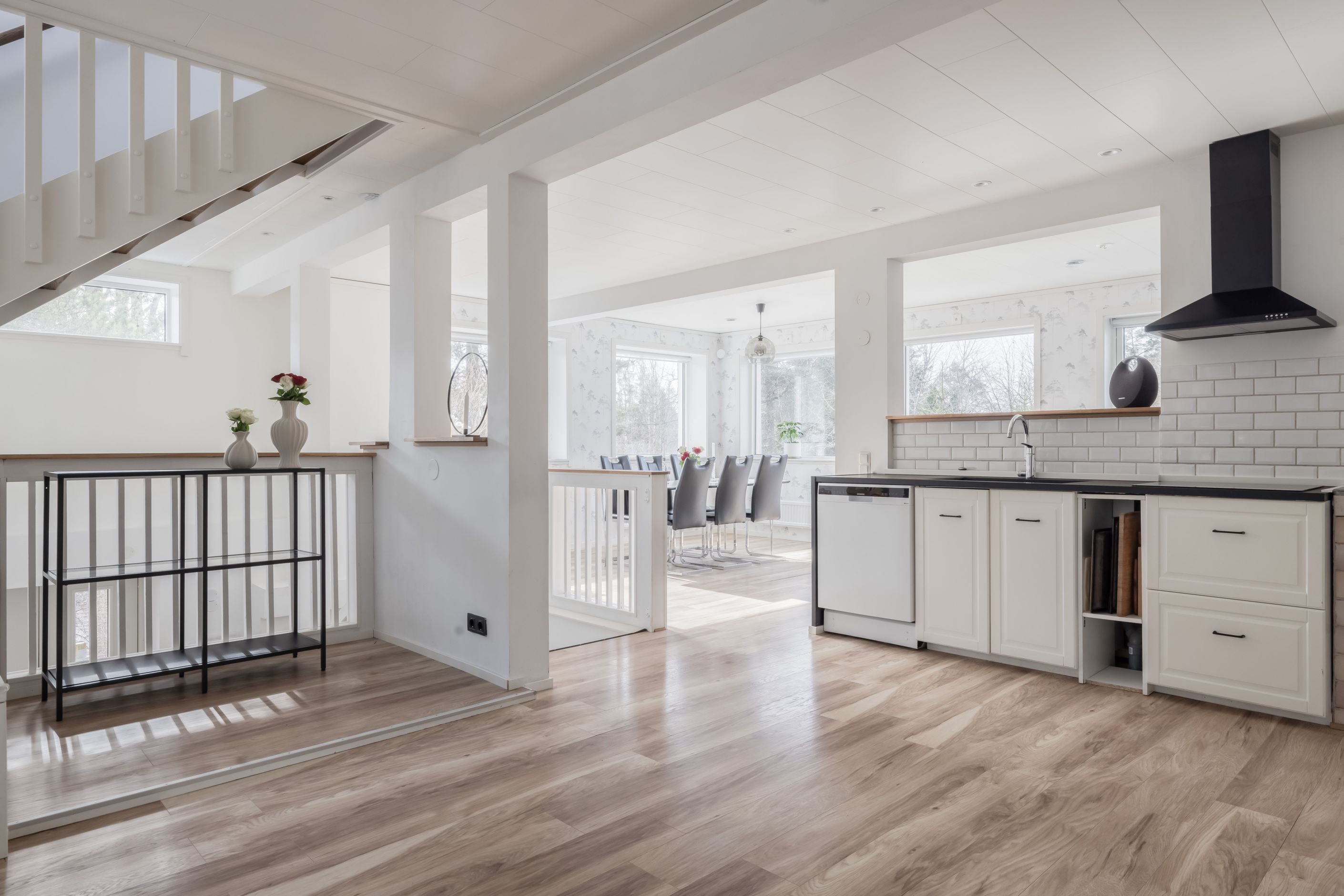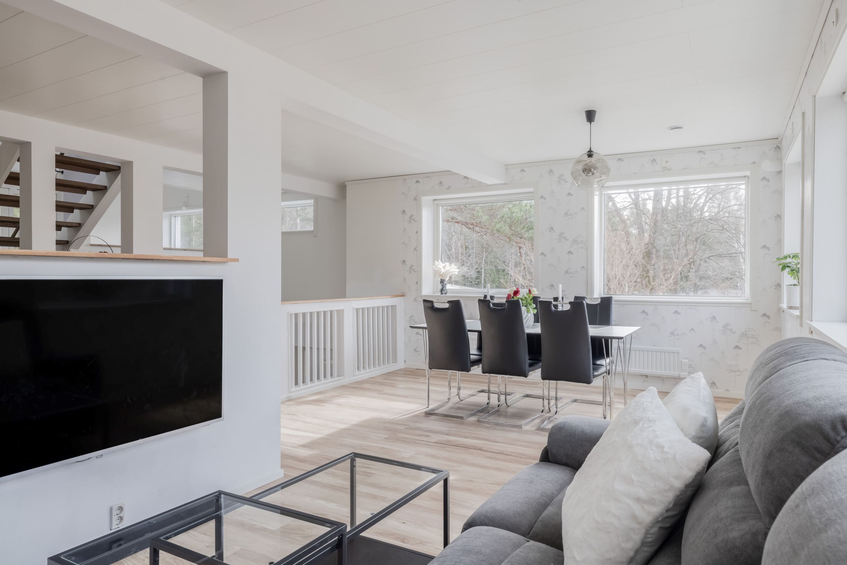 Ljust och rymligt hus med privat läge mot skog – social planlösning och fina sällskapsytor