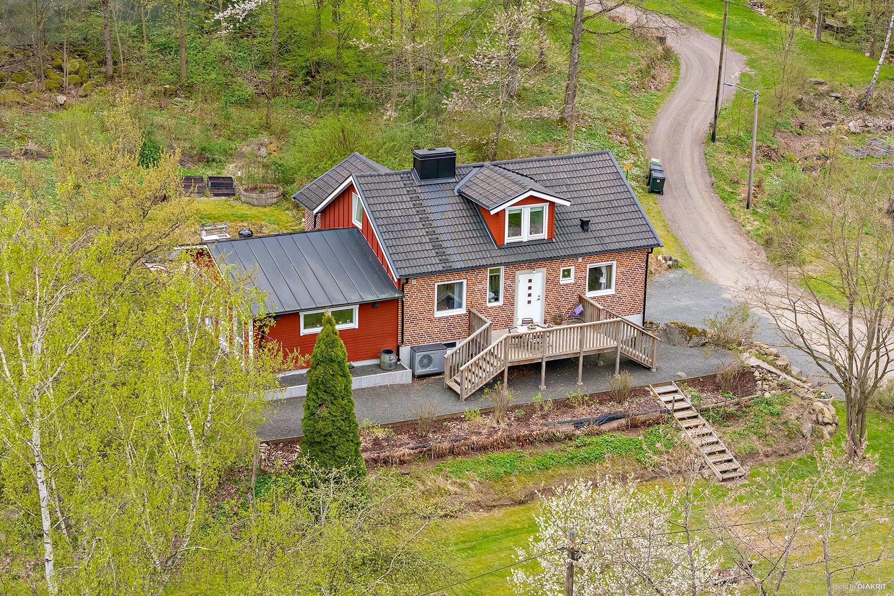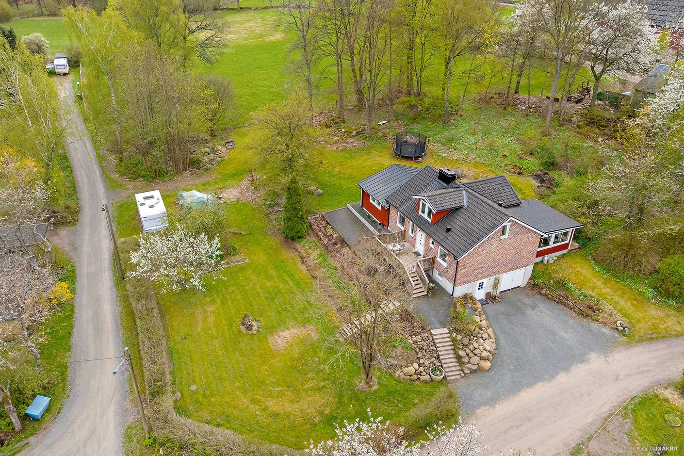 Utemiljön är charmigt anlagd i olika nivåer och sektioner, vilket ger en unik karaktär. På baksidan skapar träddäcket och sittplatserna en underbar plats för avkoppling, inramad av lummig grönska under sommarhalvåret. Övriga delar av trädgården består av generösa gräsytor, perfekta för lek eller odling. Här finns även plats för uppställning av husbil/husvagn. Flertalet rosenbuskar och stora träd pryder tomten och ger en naturtomt- känsla.