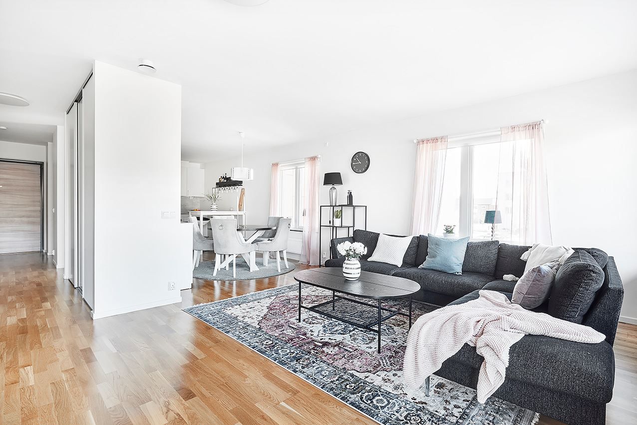Ett härligt ljusflöde genom hela bostadens och den generösa takhöjden är ett extra plus! Trendigt kök i skandinavisk stil, öppen planlösning mellan vardagsrum och kök, tre fina sovrum belägna lite mer privat och ett ljust badrum som bjuder en bra tvättsektion med gott om arbetsyta. För dig som inte kan få nog av god förvaring följer även ett förråd med lägenheten beläget i entréplan.