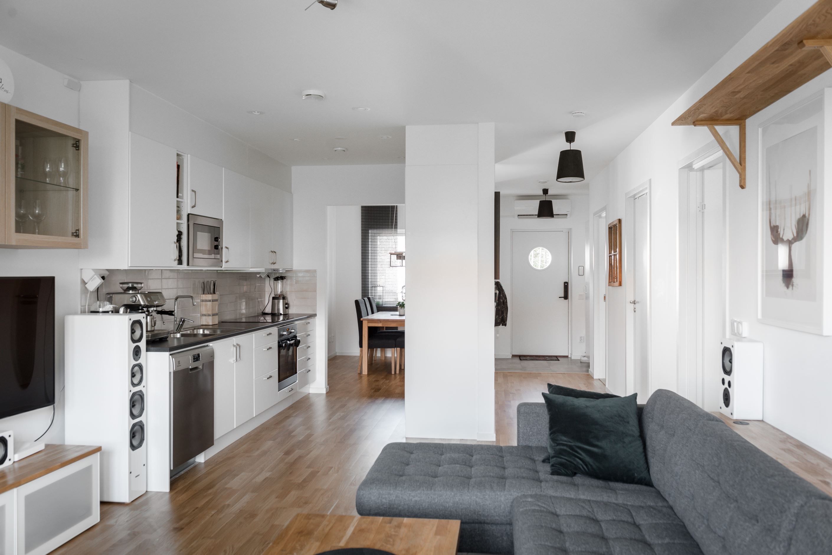 Lägenheten har genomgående parkett golv i ek, vita målade väggar och är, precis som man kan förvänta sig, i nyskick och redo för framtida ägare att bara flytta in.