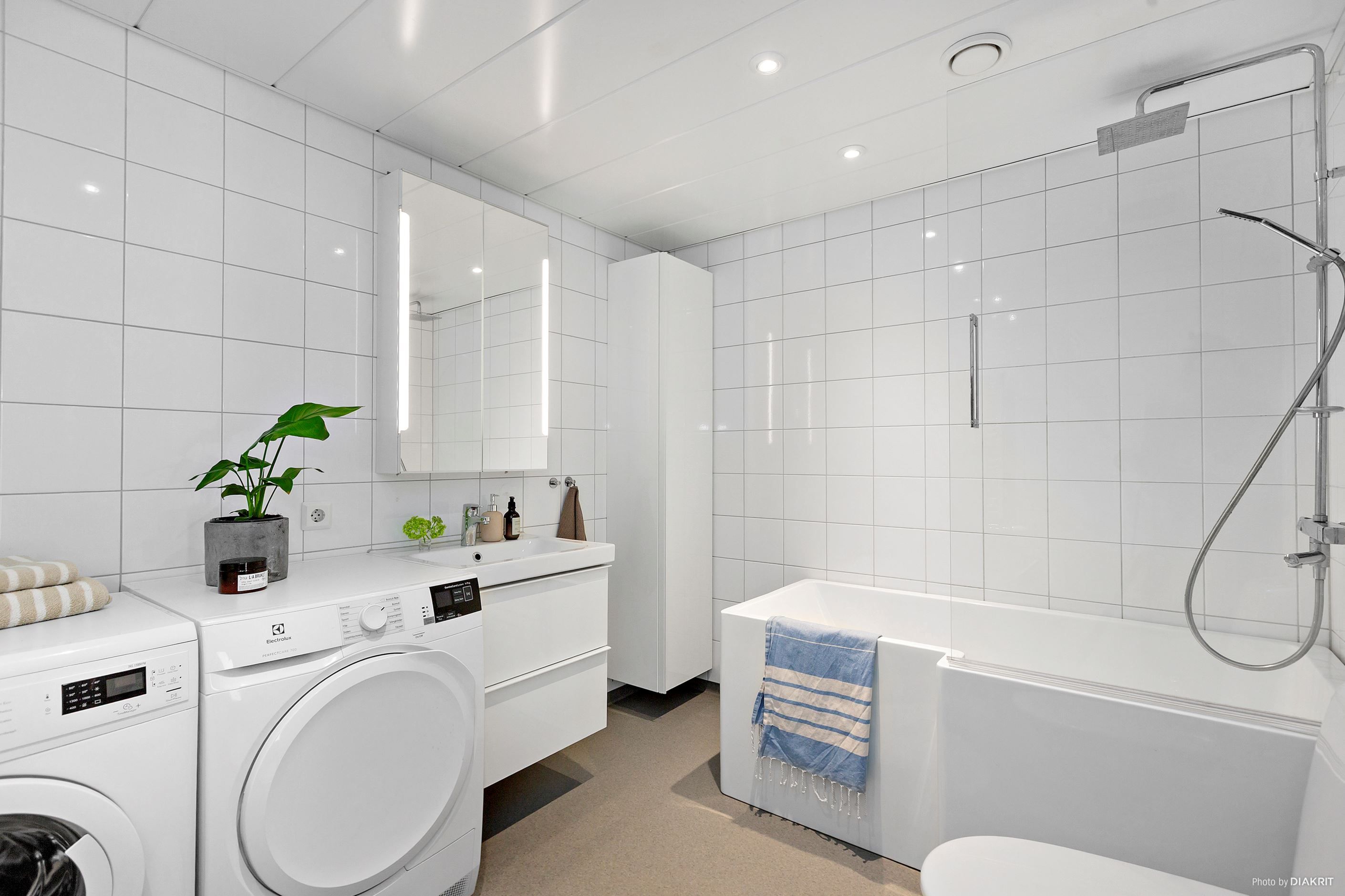 Bostaden erbjuder öppen planlösning, ett modernt vitt kök, rymligt badrum med tvättavdelning, två sovrum och vardagsrum med plats för soffgrupp och utgång till balkongen som ligger i soligt syd/sydvästläge.