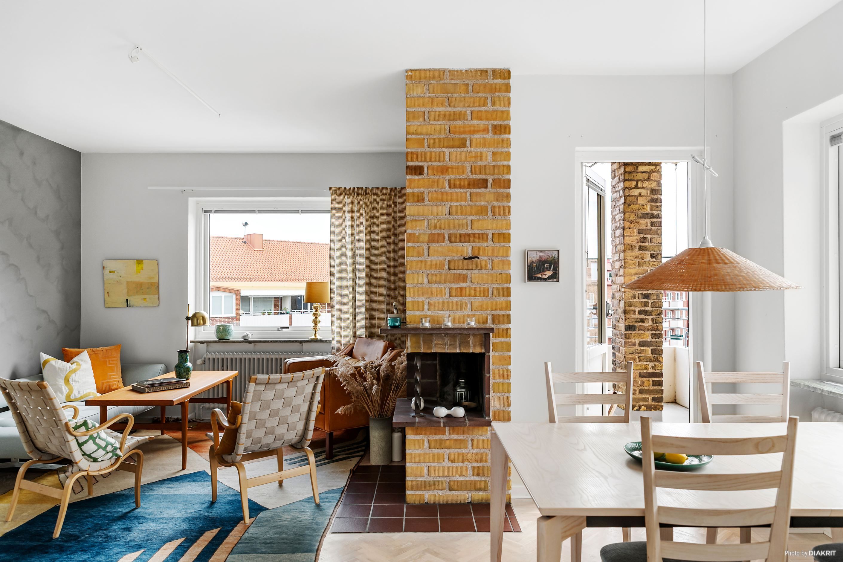 I vardagsrummet finns en charmig öppen spis som bidrar till hemmets karaktär. Även om den inte är eldningsbar just nu, pågår arbete för att åter få den i bruk – något som kommer att höja mysfaktorn ytterligare.