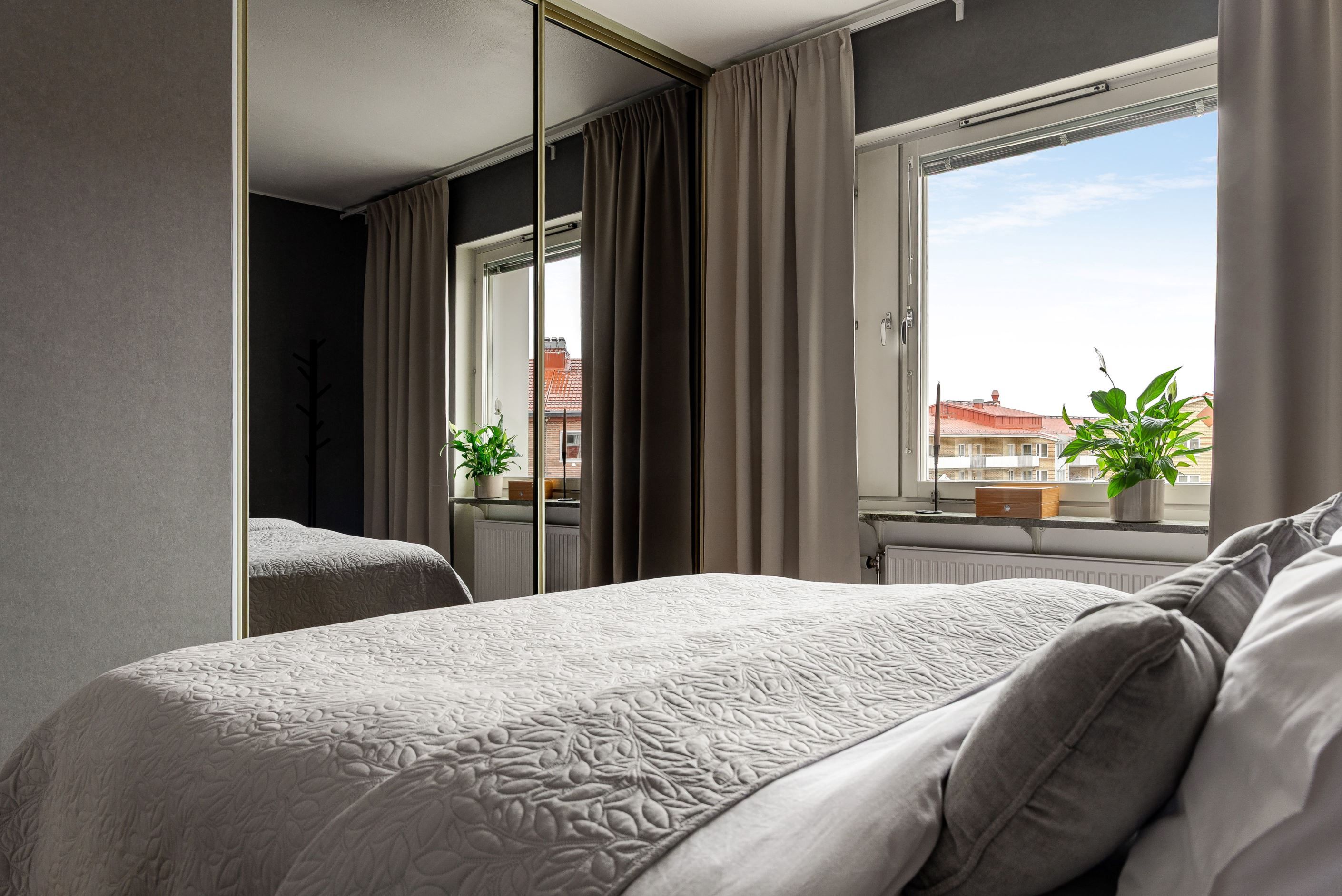Badrummet har moderna ytskikt och inredning från 2012, vilket ger en fräsch och uppdaterad känsla. Sovrummet är generöst tilltaget med garderob som har smarta förvaringslösningar och skjutdörrar.