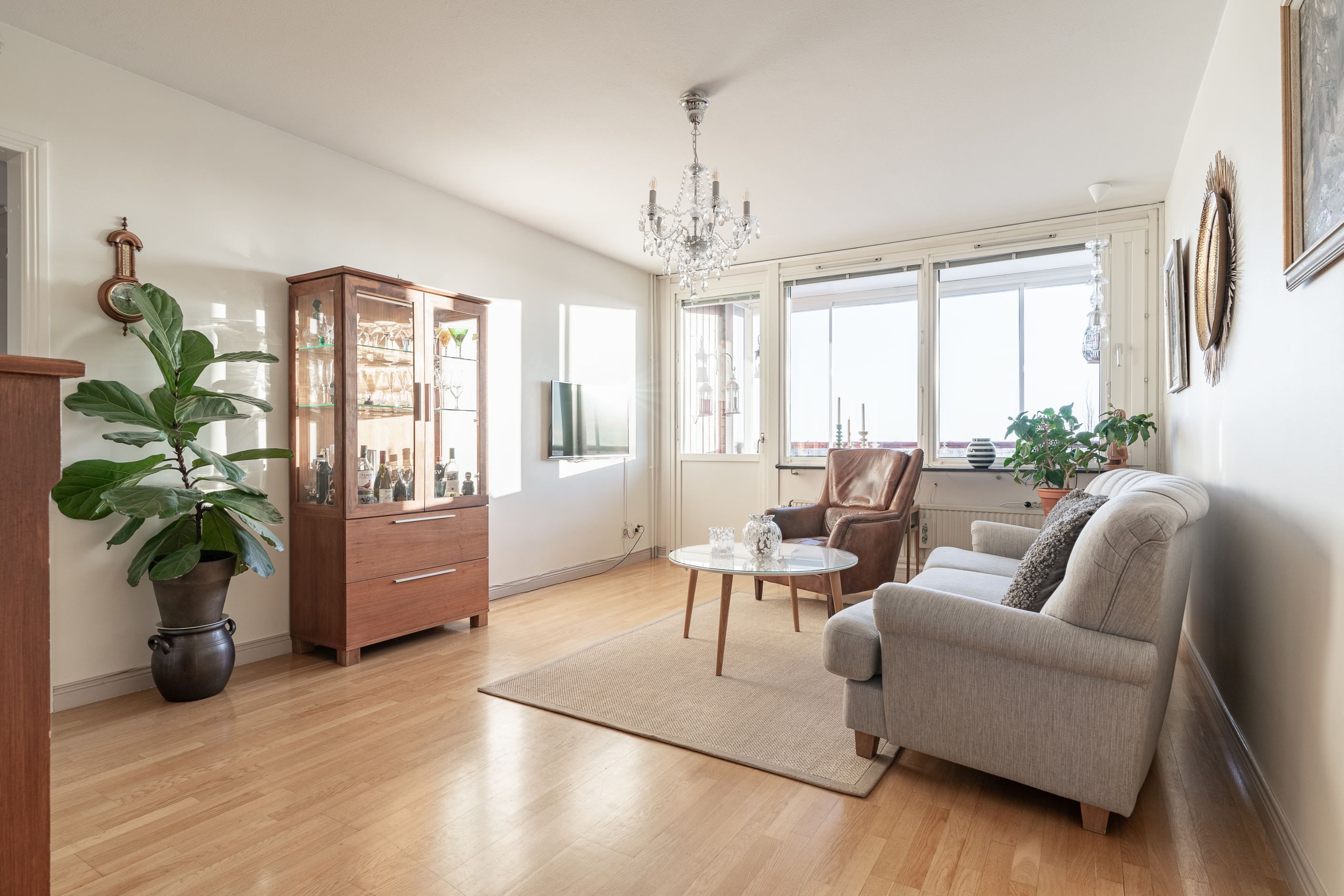 Lägenheten erbjuder tre väl tilltagna sovrum, där ett av sovrummen har direkt utgång till en av de två balkongerna . Den andra balkongen nås från det ljusa och rymliga vardagsrummet. Denna balkong är dessutom inglasad, vilket förlänger säsongen och låter dig njuta av en slående utsikt från våning 6 oavsett väder.