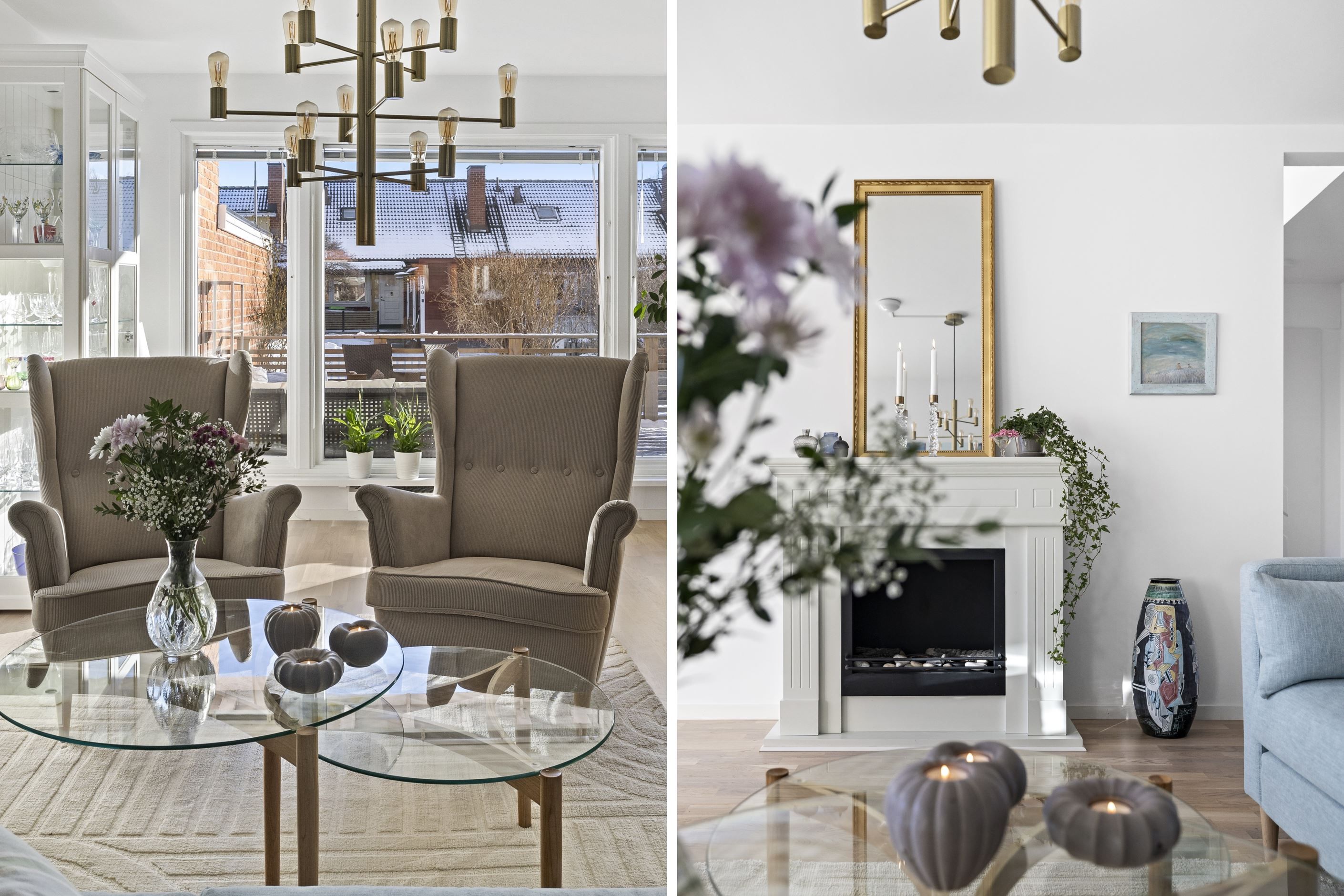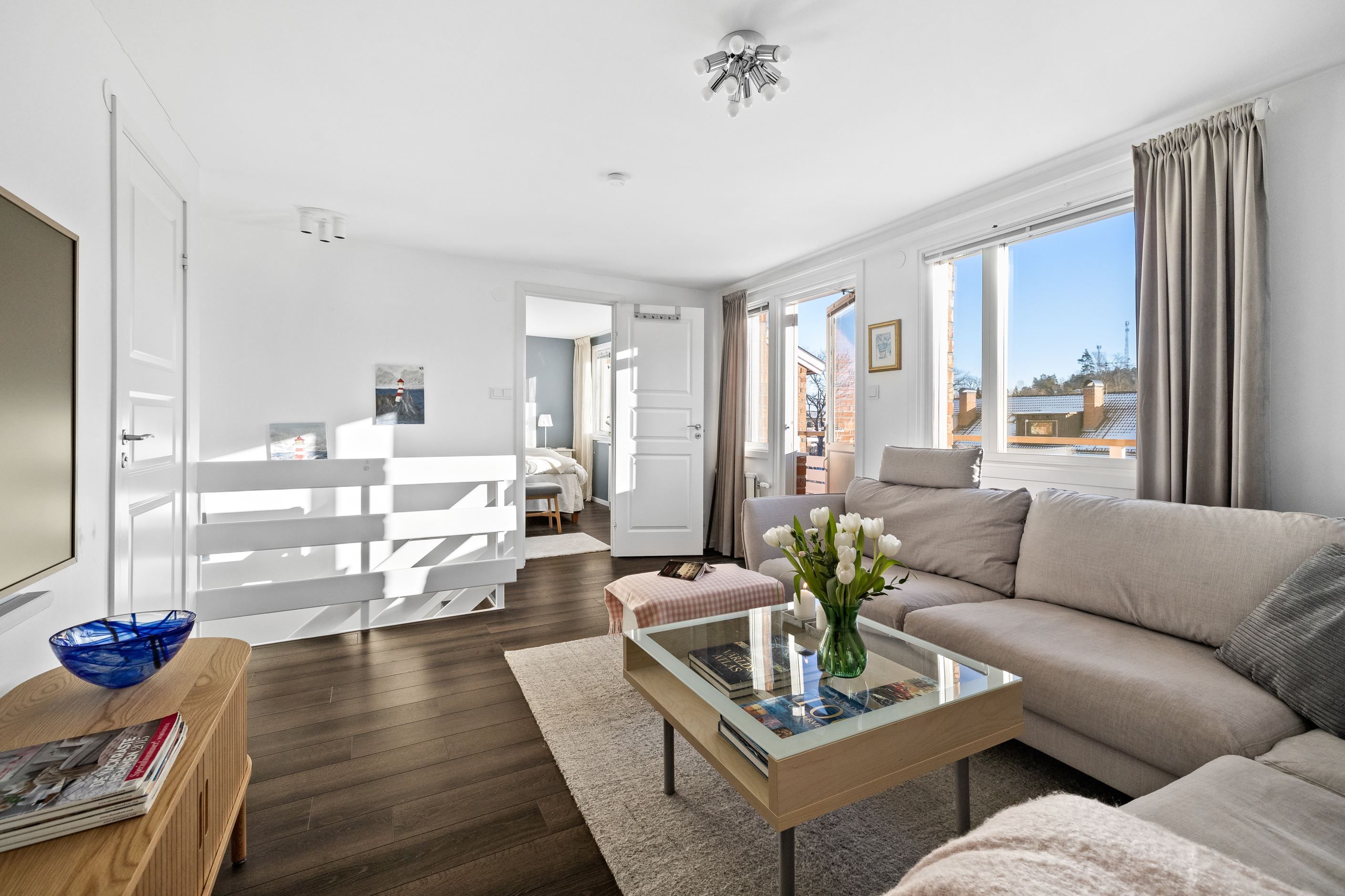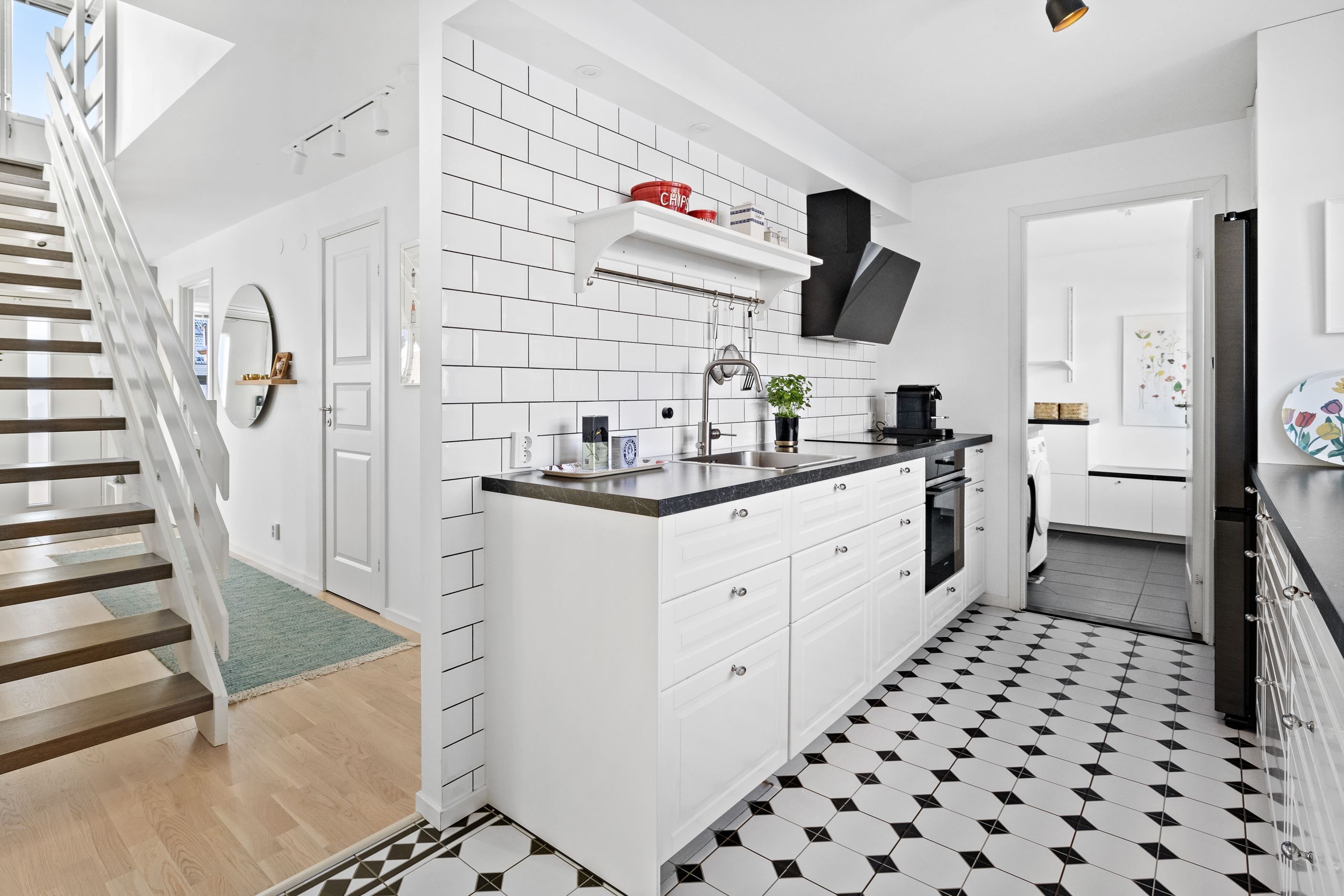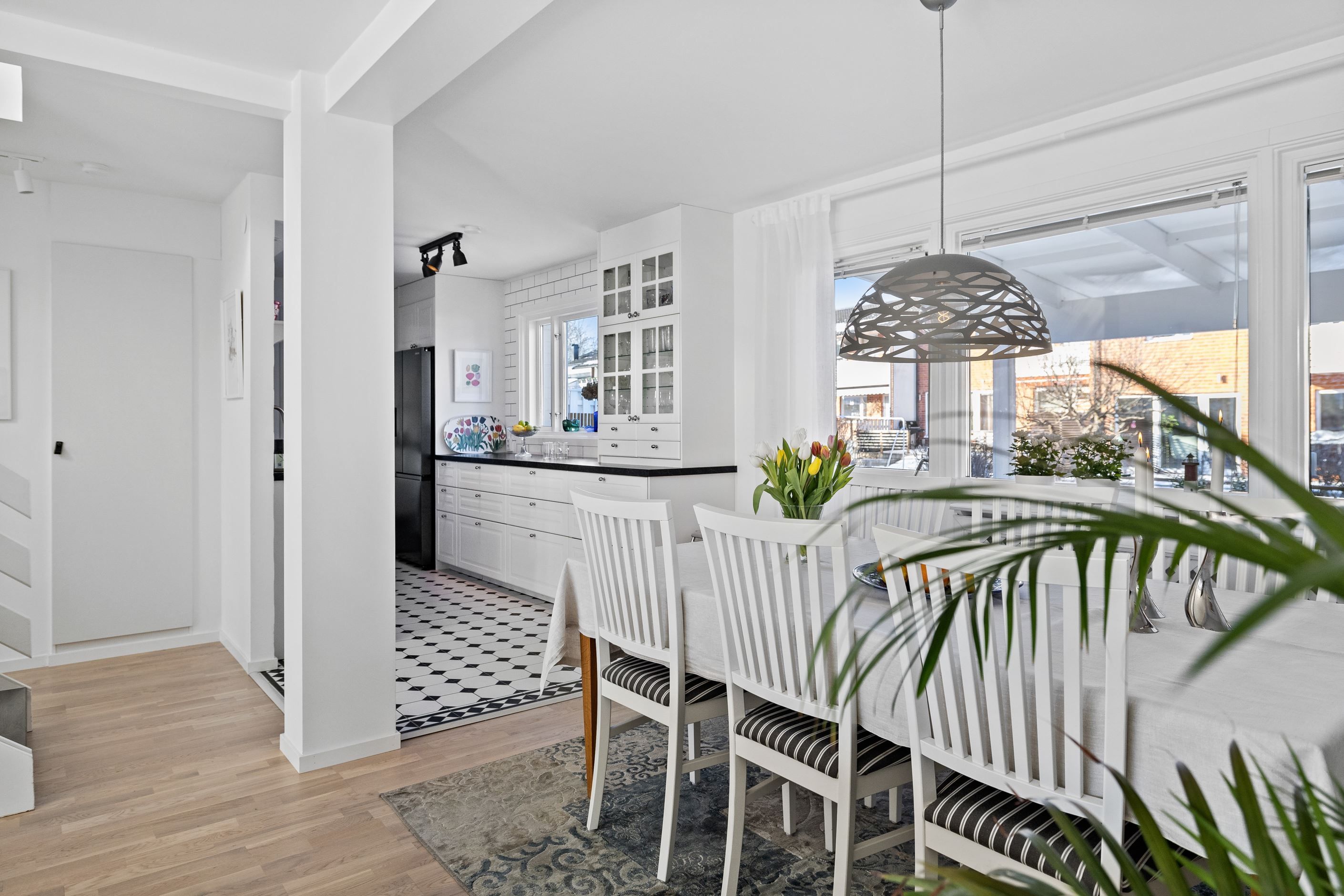 Invändigt möts du av en öppen och social planlösning mellan kök och vardagsrum, vilket skapar ljus och rymd. Det renoverade köket erbjuder gott om arbetsytor och modern utrustning – perfekt för både vardagsliv och fest. Två totalrenoverade badrum med dusch bidrar till den lyxiga känslan.