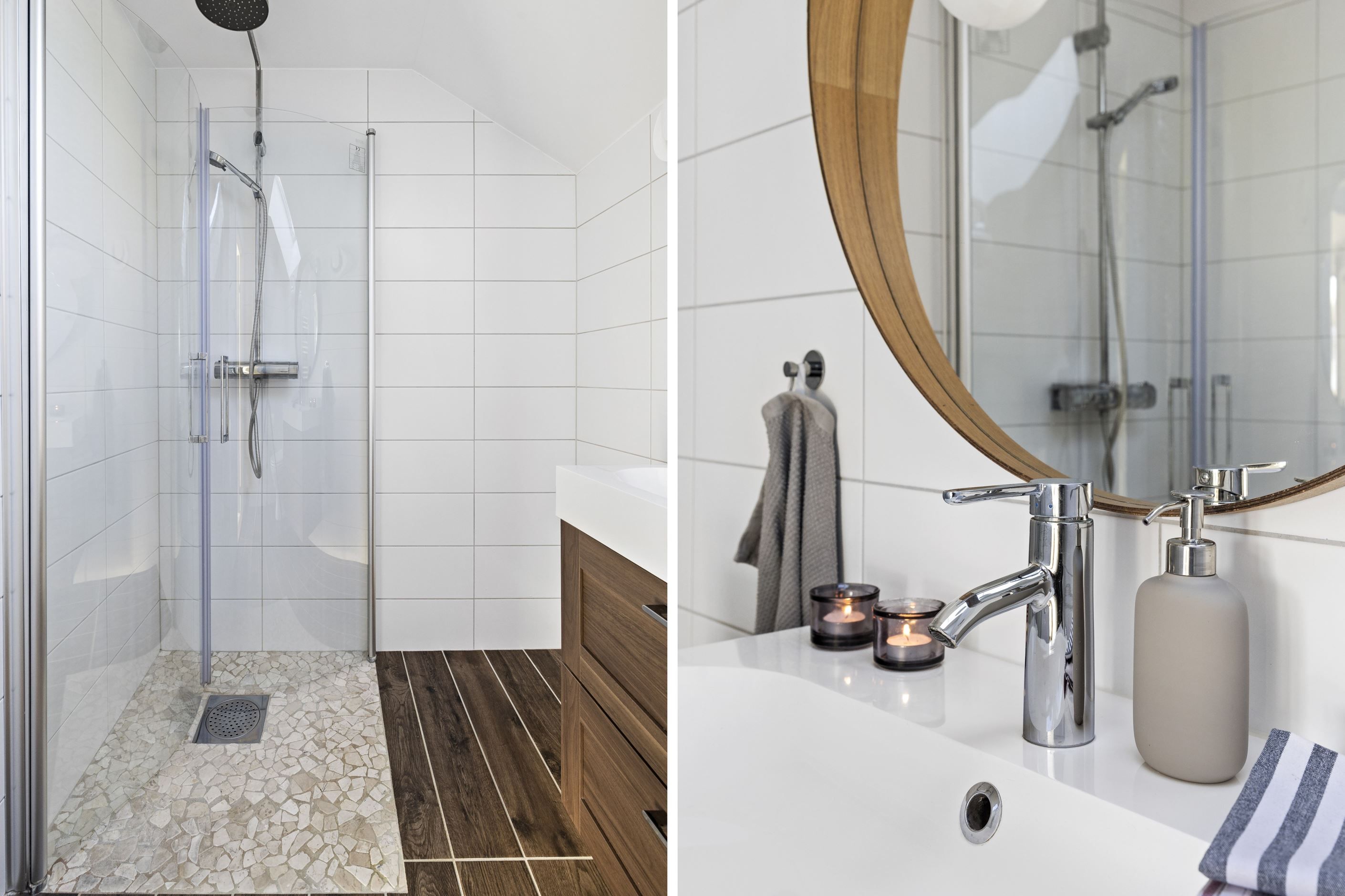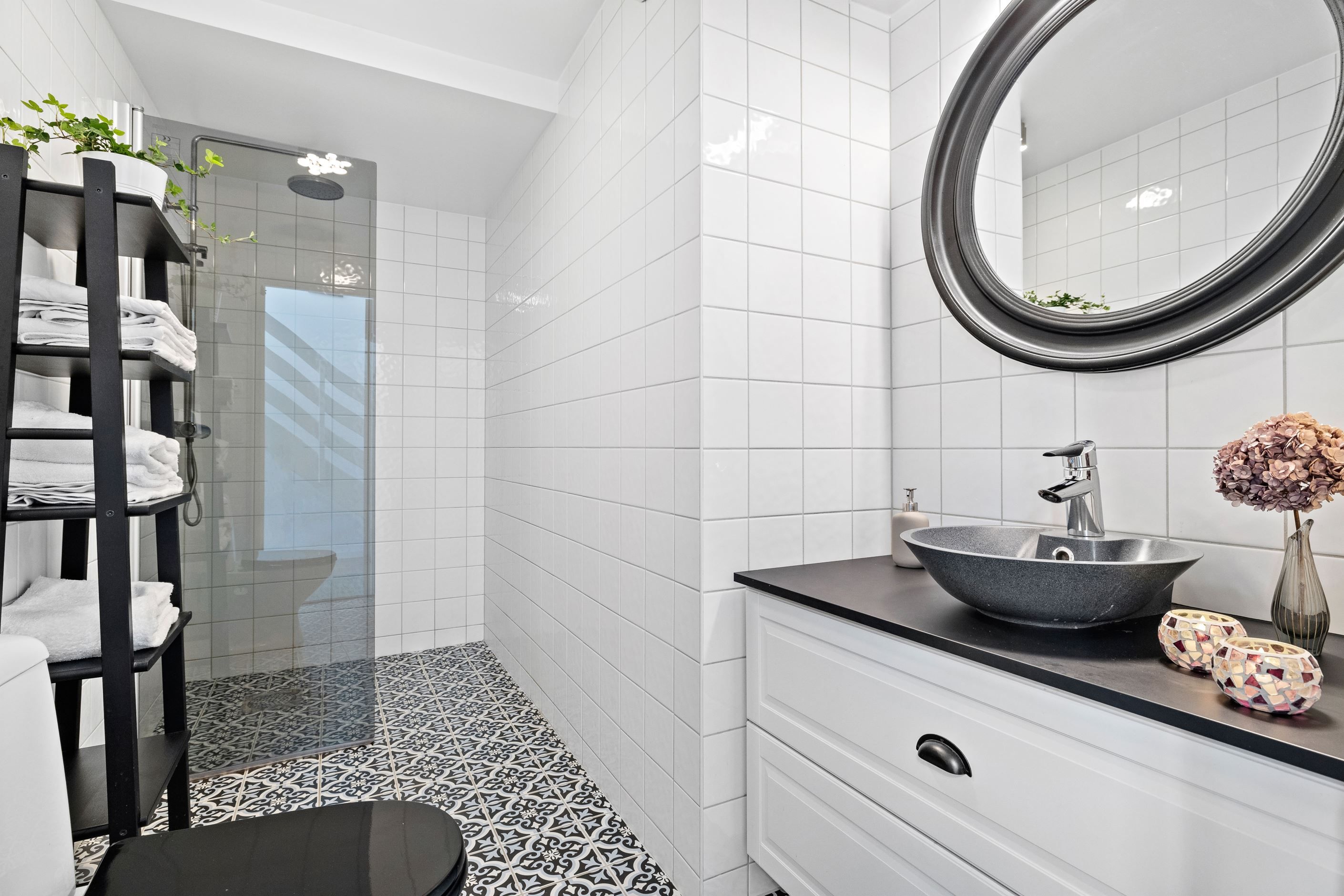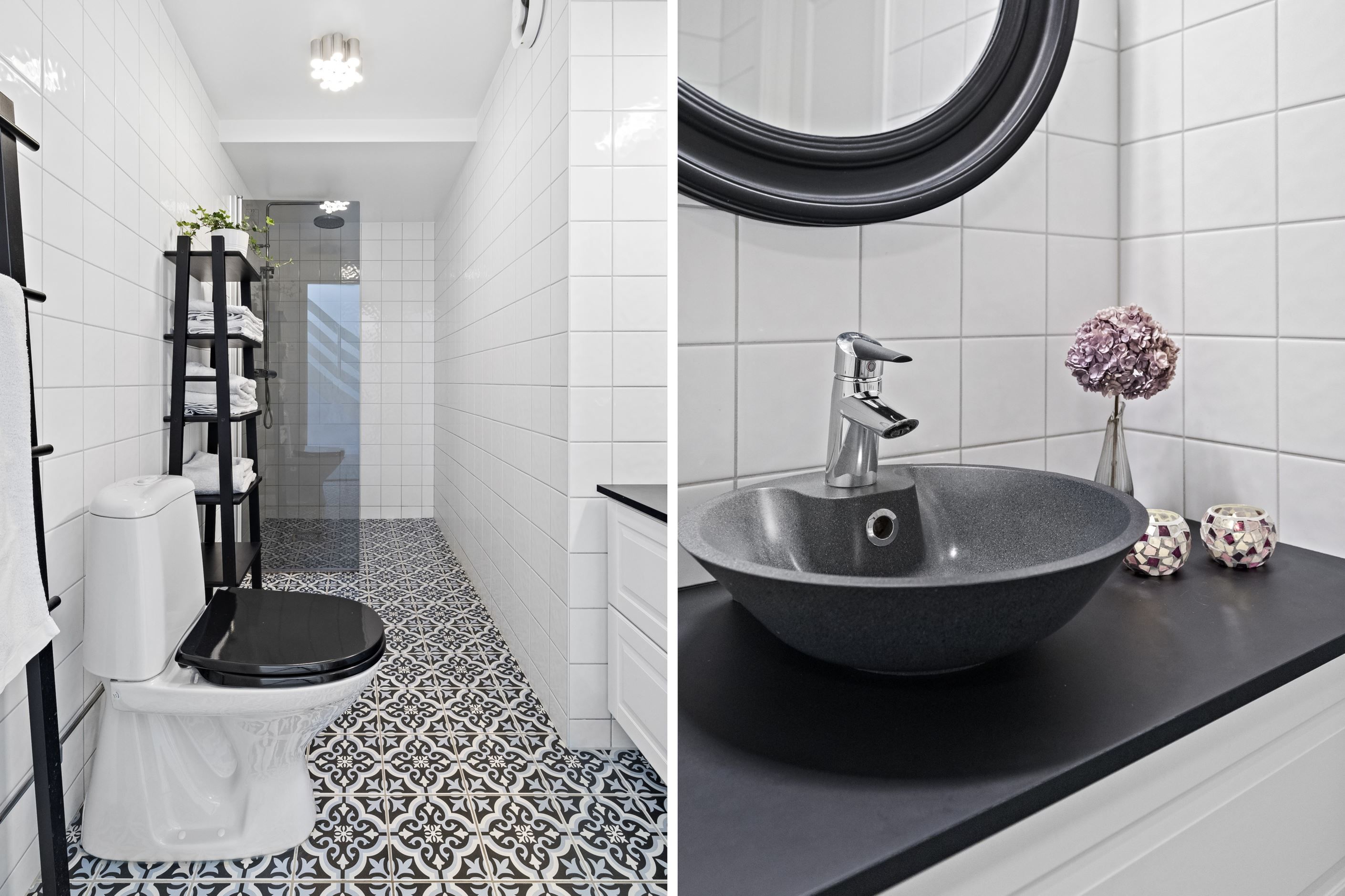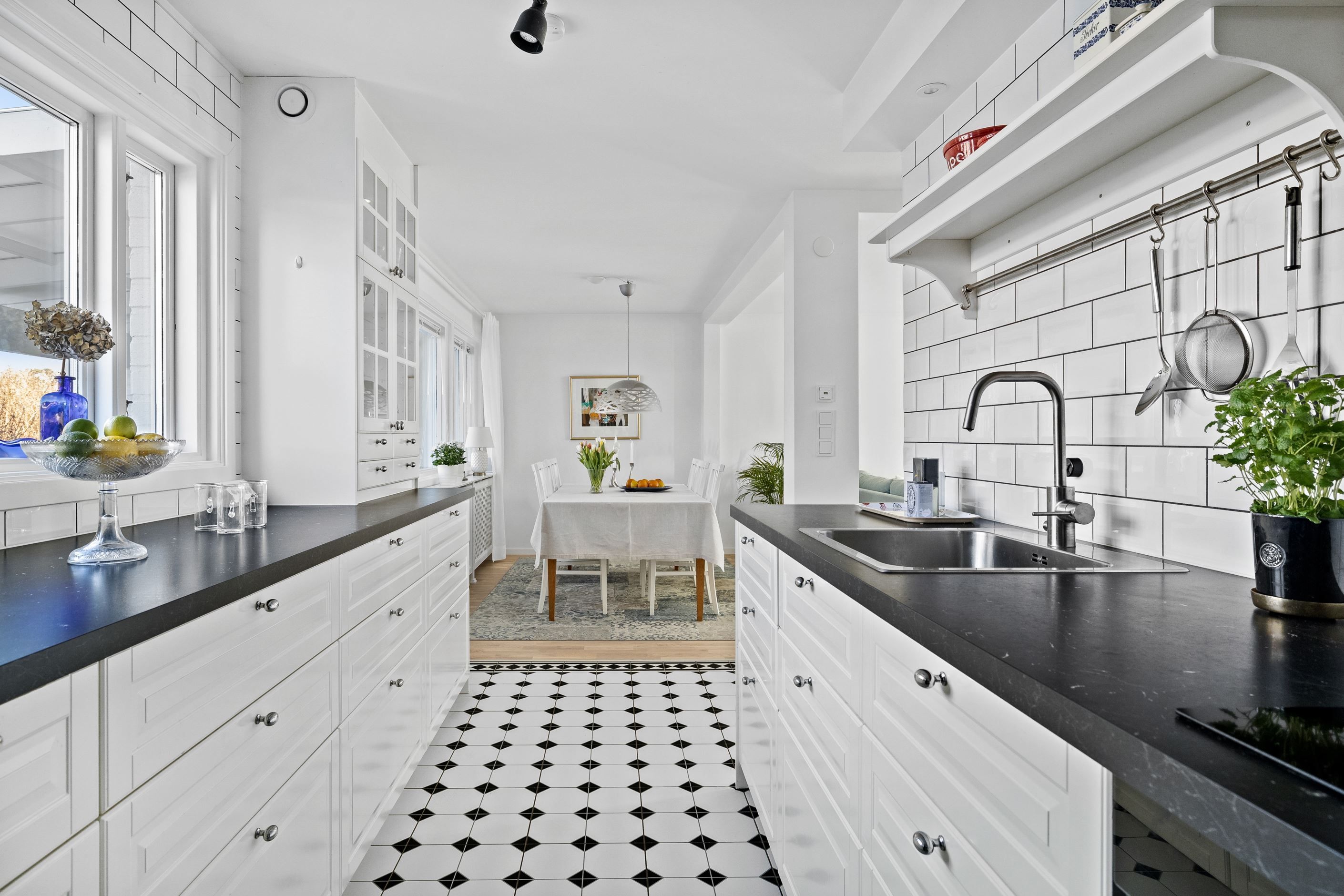Invändigt möts du av en öppen och social planlösning mellan kök och vardagsrum, vilket skapar ljus och rymd. Det renoverade köket erbjuder gott om arbetsytor och modern utrustning – perfekt för både vardagsliv och fest. Två totalrenoverade badrum med dusch bidrar till den lyxiga känslan.