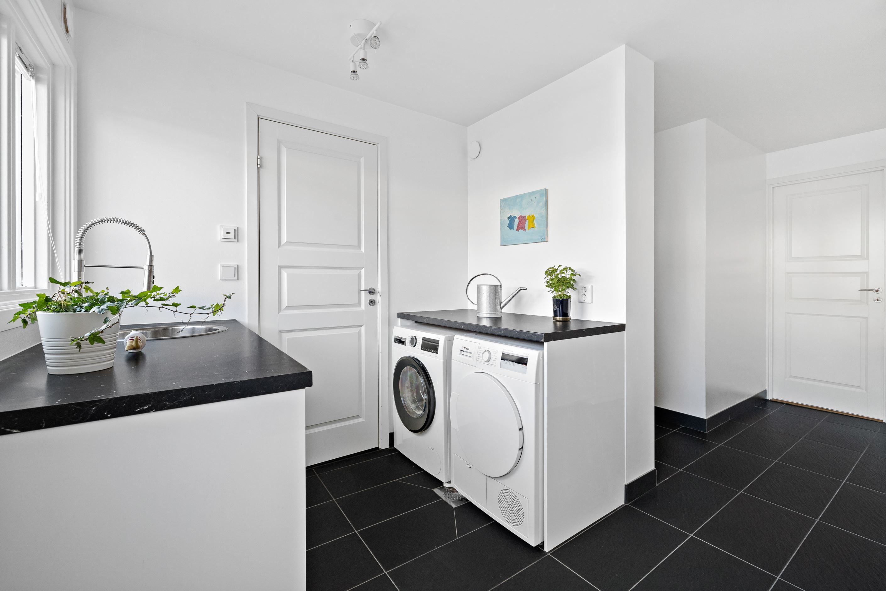 Huset har tre sovrum i dagsläget, med möjlighet att enkelt skapa ytterligare två för den som önskar fler rum. Dessutom finns ett rymligt allrum och en stor tvättstuga med massor av praktisk förvaring.