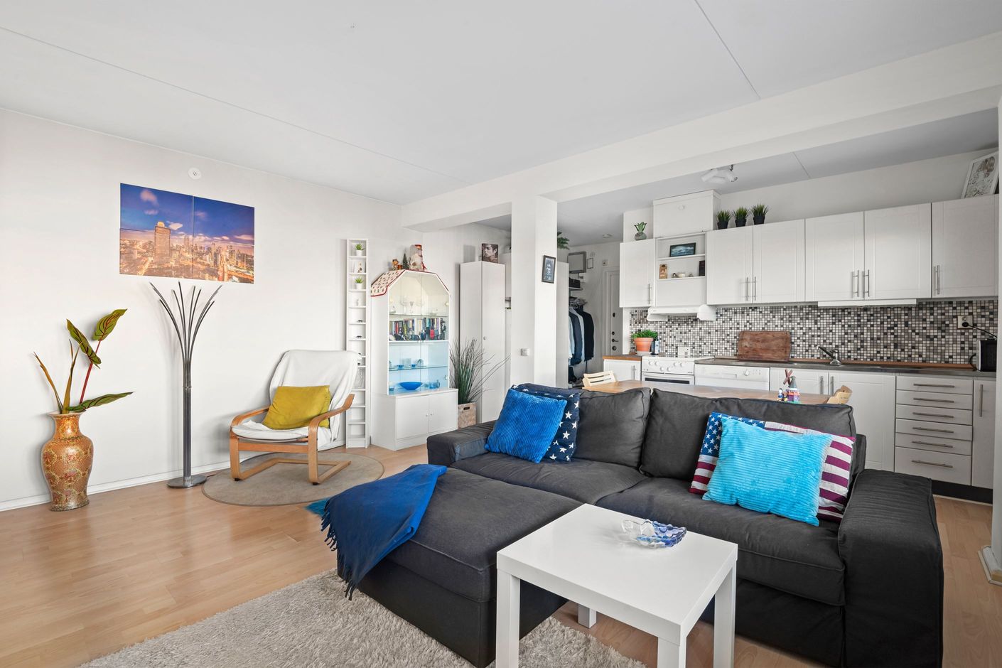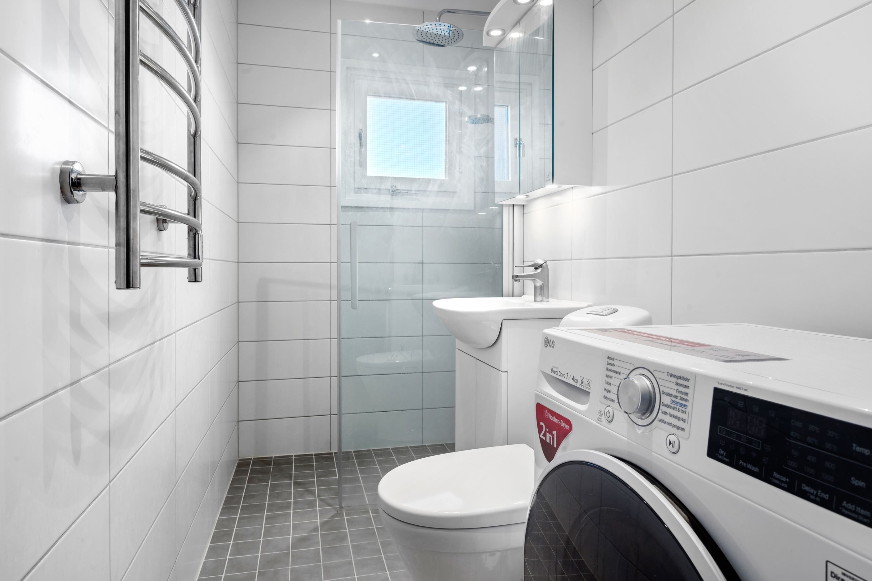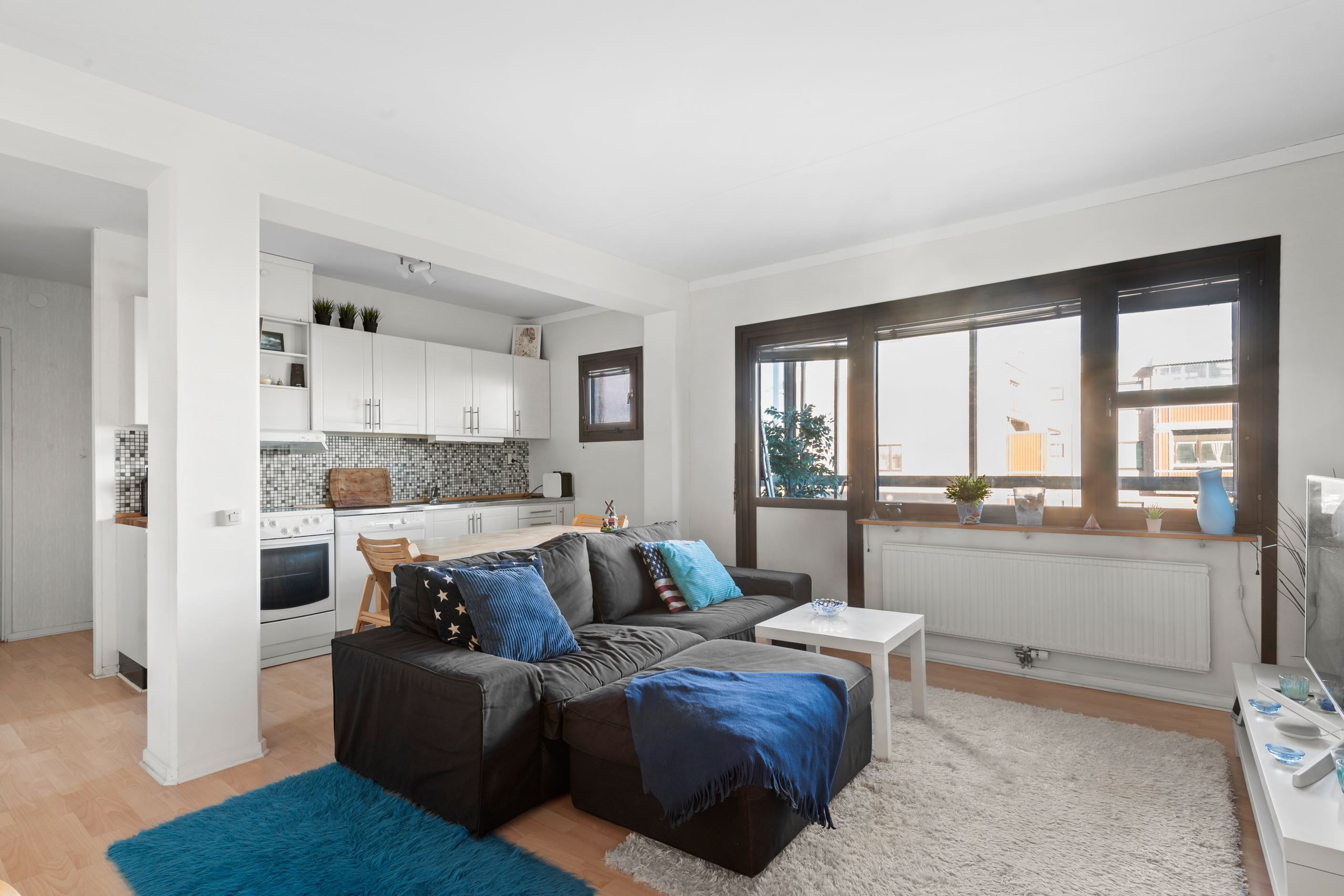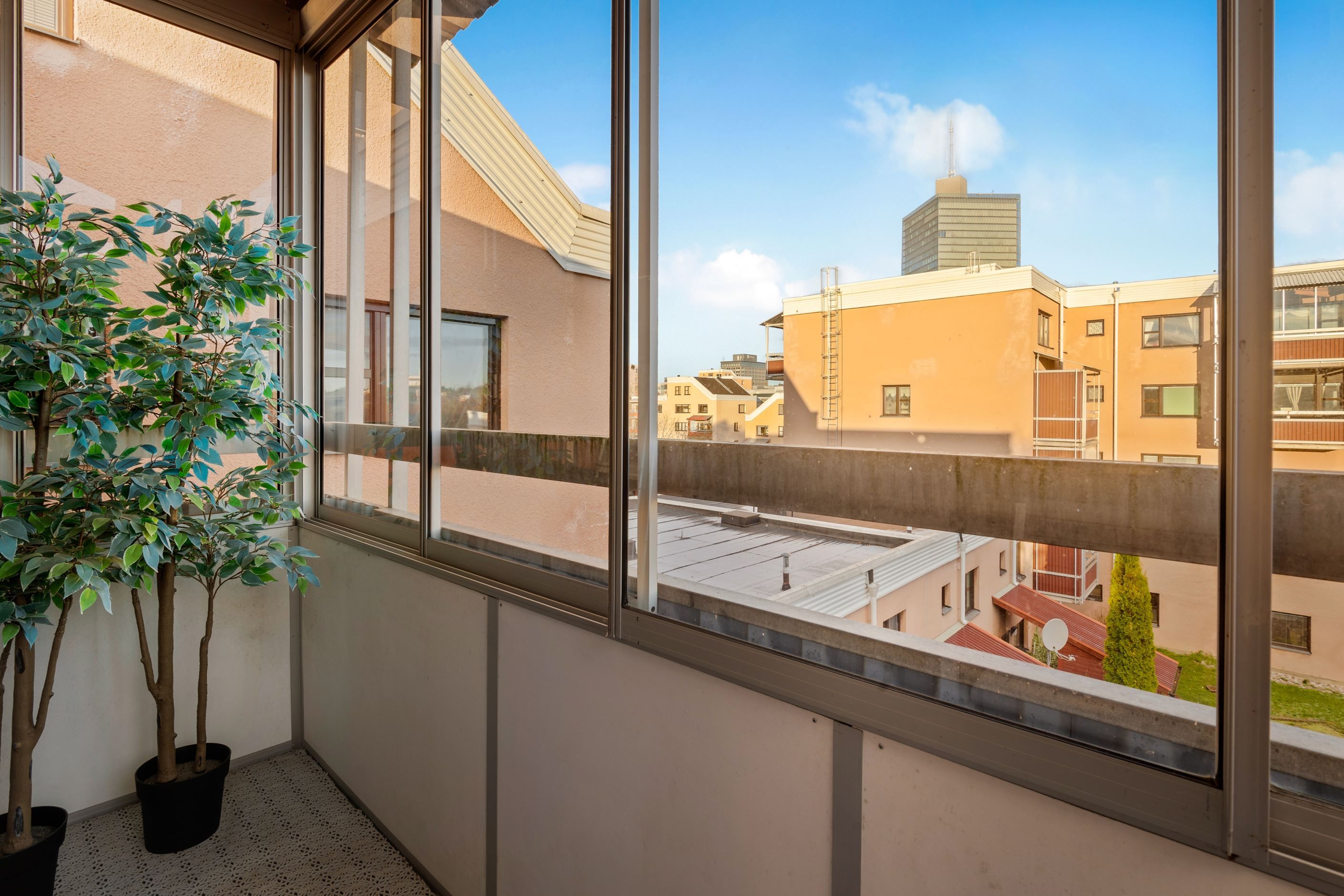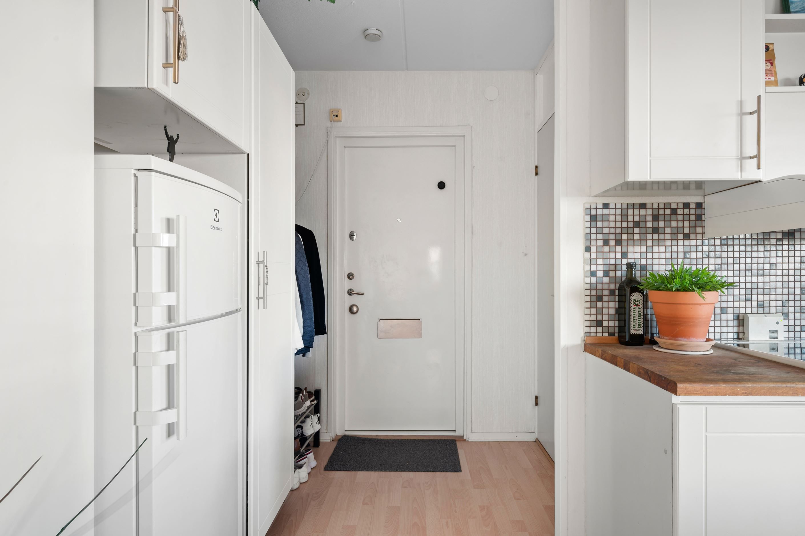 Bostaden erbjuder en välkomnande hall med gott om plats för avhängning. Köket är fullt utrustat med kyl/frys, spis, ugn, och diskmaskin, samt har gott om arbetsyta på bänkskivan och förvaring bakom vita skåpsluckor. Köket har en öppen planlösning mot vardagsrummet med utgång till den inglasade balkongen i bra läge, som har stora fönsterpartier och erbjuder ett ljust och luftigt rum där du kan möblera efter egna önskemål. Sovrummet är rymligt och ger plats för både säng och förvaring. Badrummet är helkaklat med tvättmaskin, spotlights och utrustat med dusch, duschvägg, handfat, spegel och ett praktiskt vädringsfönster.