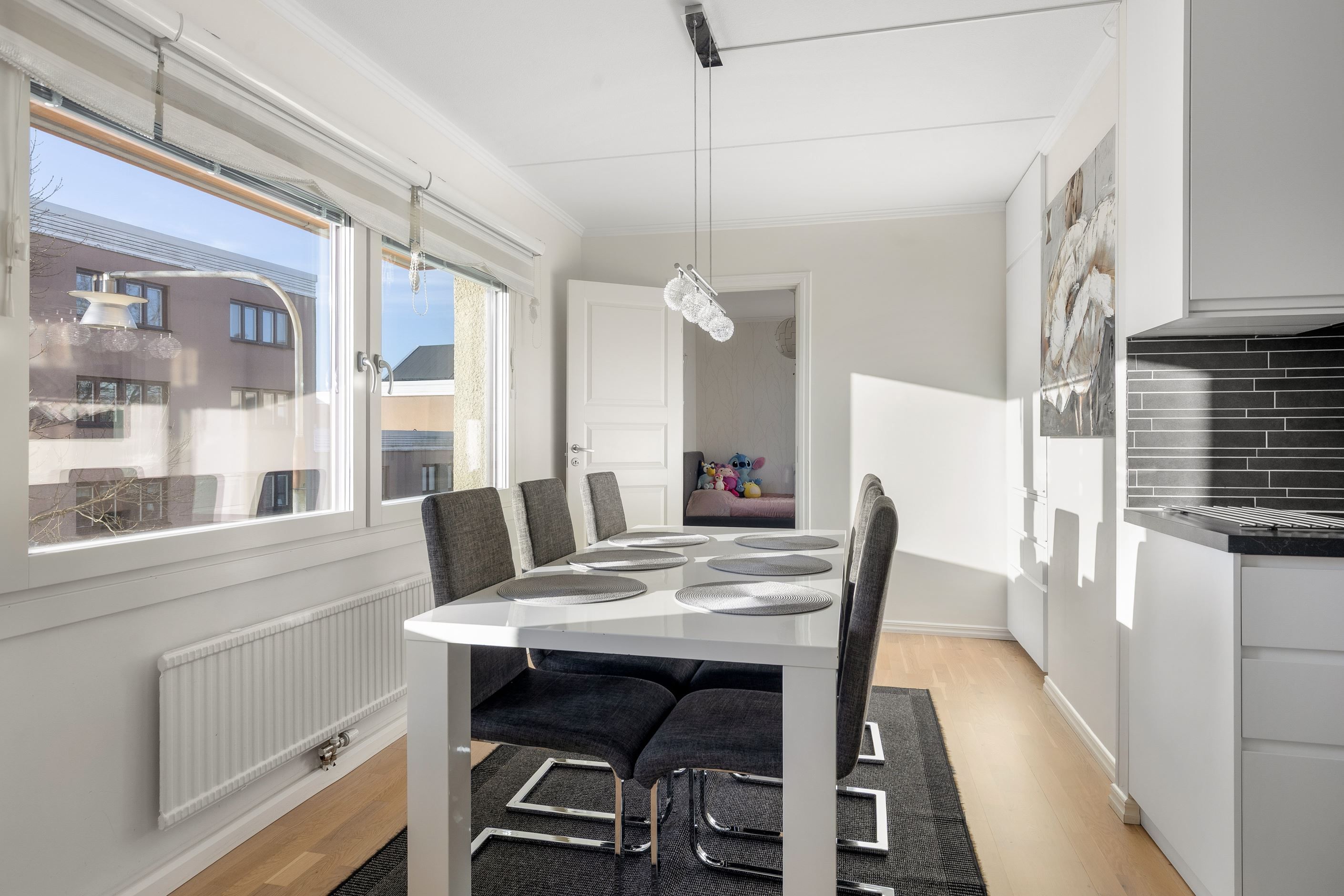- Unik 5:a med 2 badrum och inglasad terrass! Varmt välkomna till den perfekta familjelägenheten med 4 stora sovrum samt 2 moderna badrum med golvvärme. Här får du även ett ordentligt arbetskök och en stor matsal samt ett vardagsrum av största modell. Bostaden totalrenoverades under 2016 med bra materialval och genomtänkta lösningar. Det stora badrummet är utbyggt och rymmer en tvättstuge-del med maskiner från 2025. Vitt kök med inbyggd diskmaskin, microvågsugn, varmluftsugn samt induktionshäll. 4 ordentliga sovrum med plats för garderober, sängar, skrivbord samt lekyta för de mindre barnen. Inglasad terrass i fritt sydost-läge som kan användas året om. Bostaden har ett förråd/klädkammare i bostaden samt ett externt förråd vid entrén på Ringstedsgatan 4.
