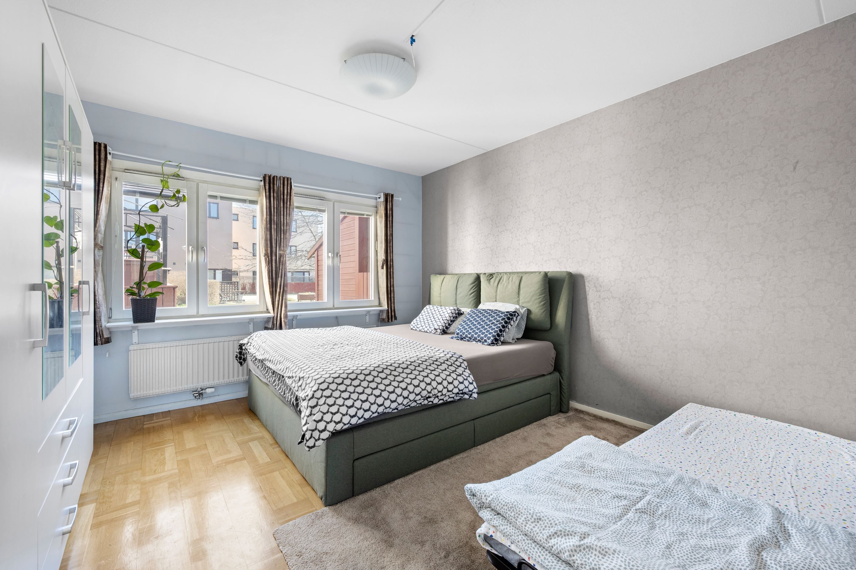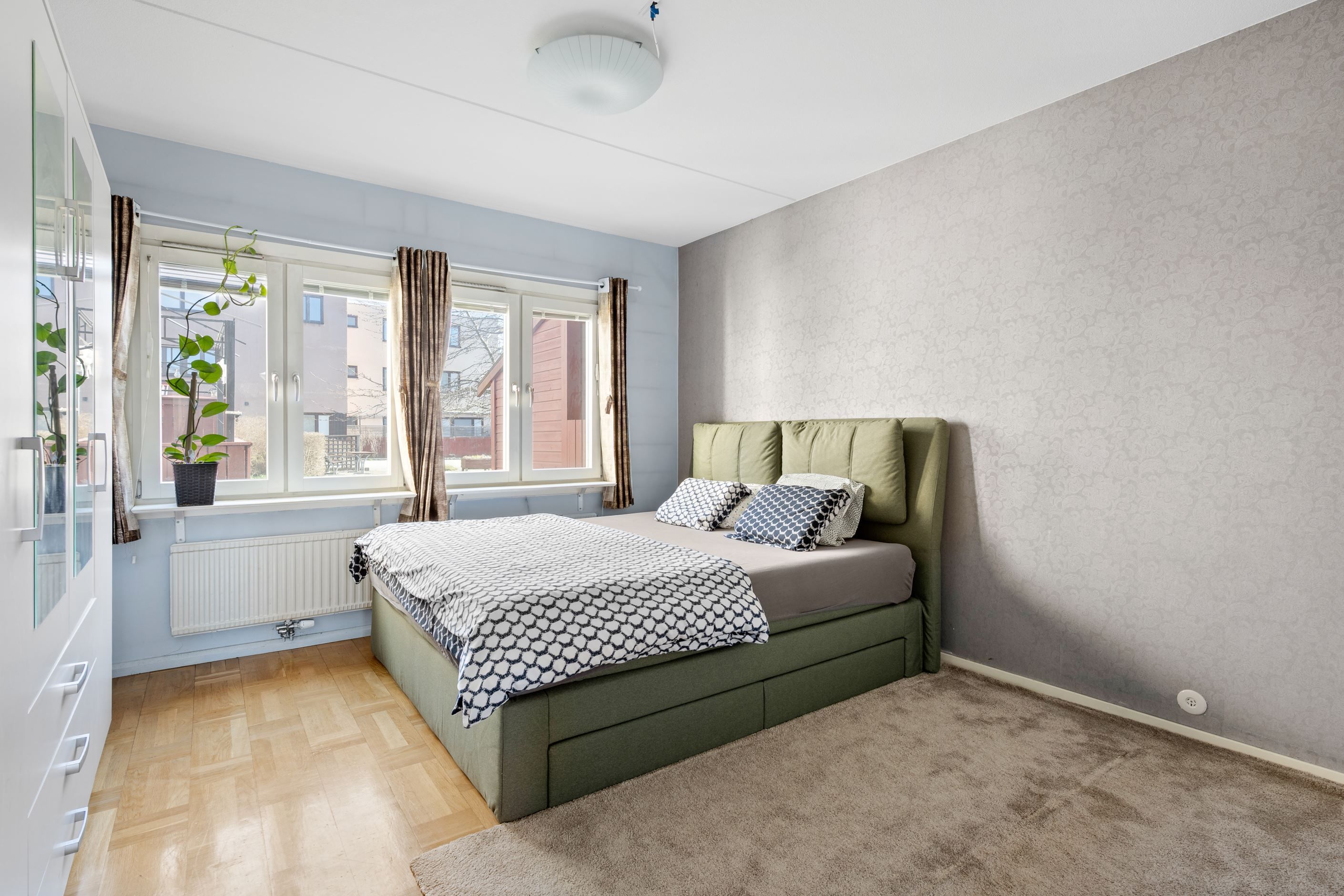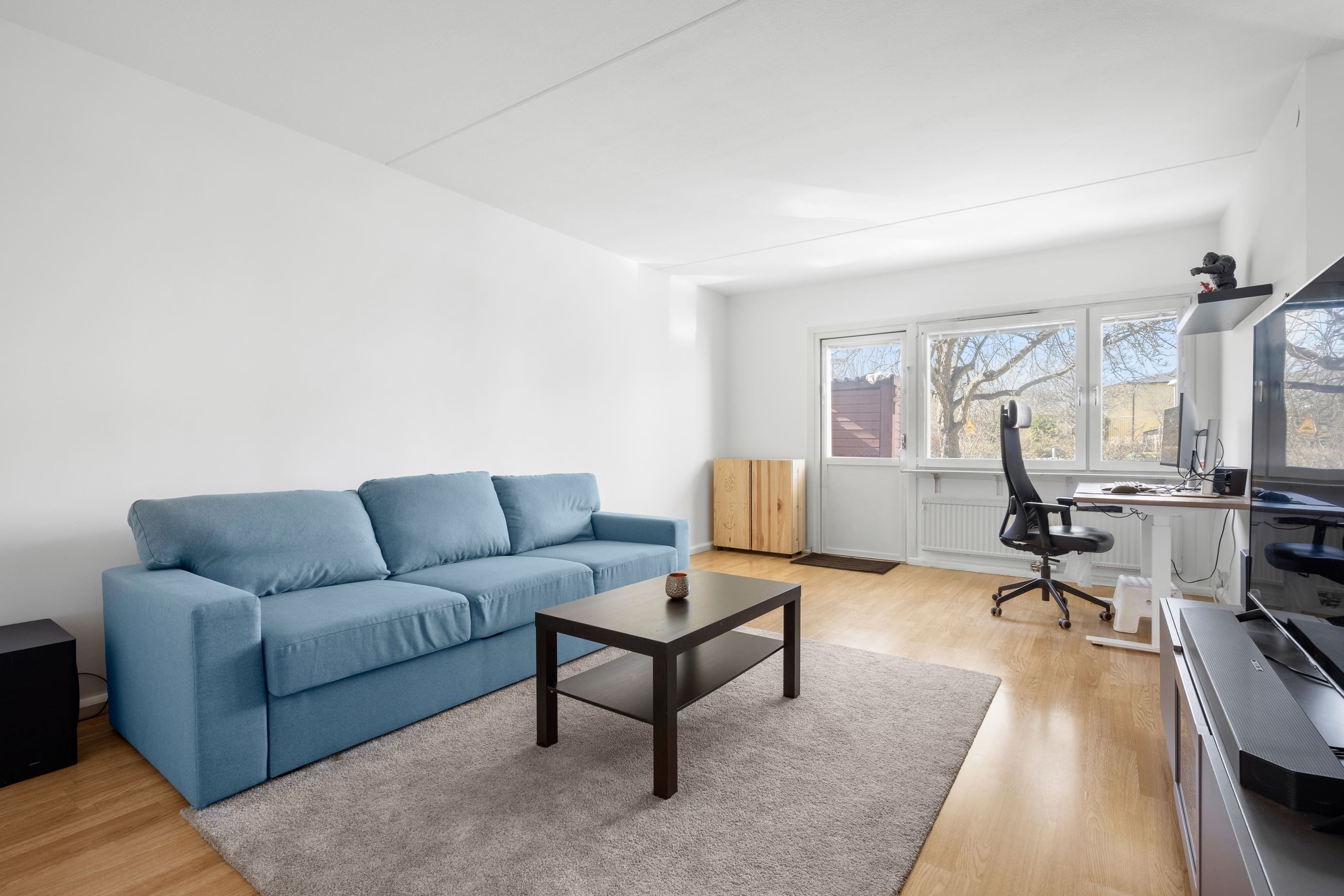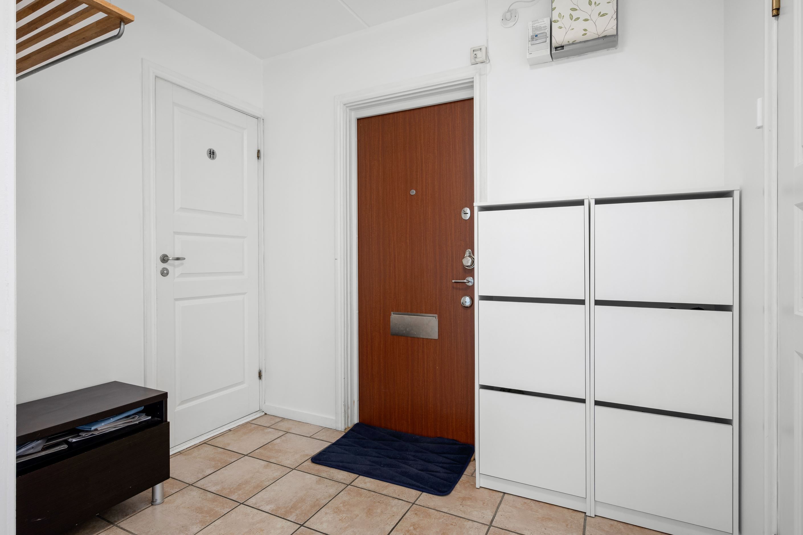 Bostaden erbjuder en välkomnande hall, ett stort och socialt vardagsrum med utgång till en stor och härlig uteplats, kök med gott om arbetsyta och mycket förvaring bakom skåpsluckor. Köket är fullutrustat med all maskinell utrustning som man kan önska. Helkaklat badrum i smakfull stil. Vidare finns två rymliga sovrum och ett förråd i lägenheten.