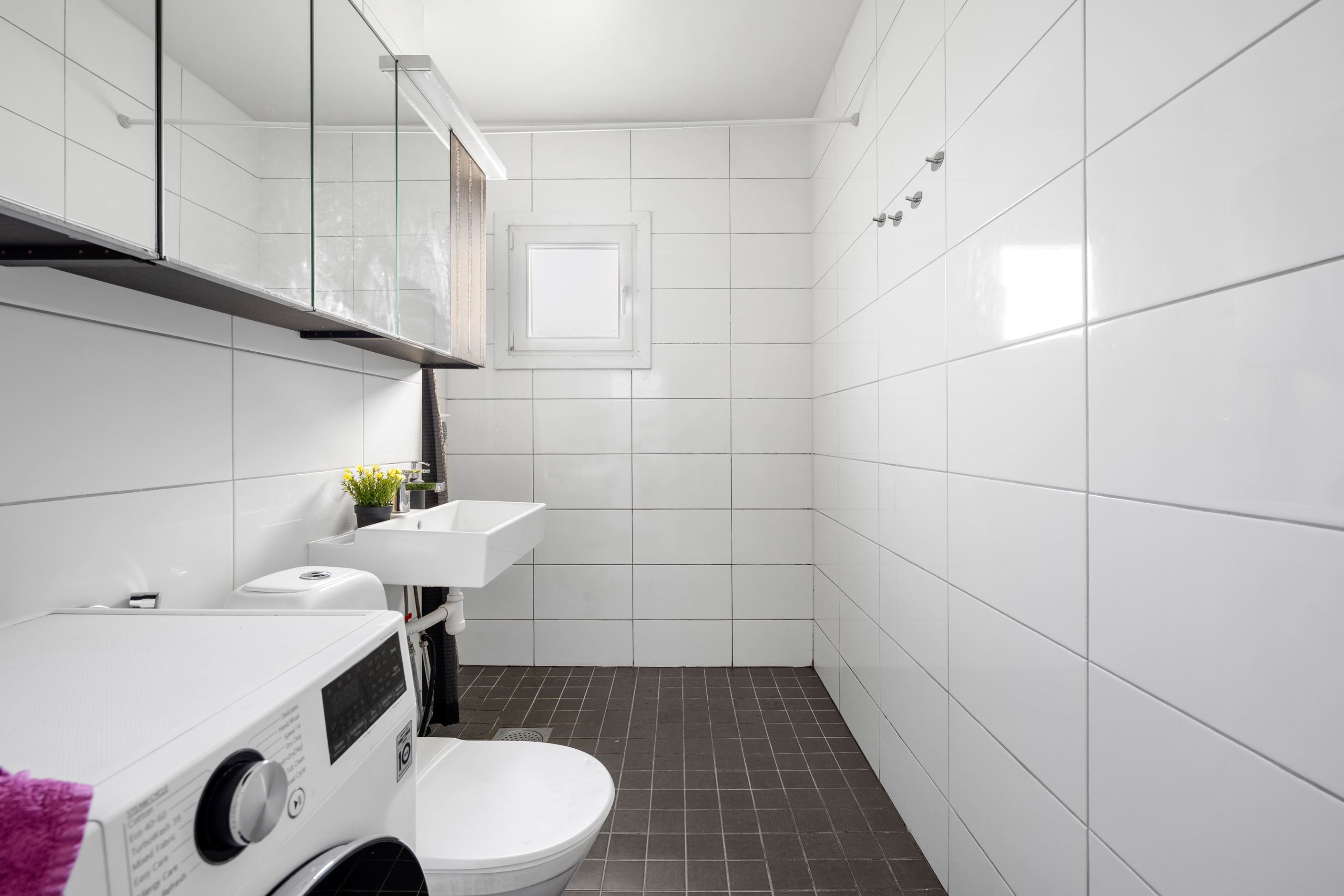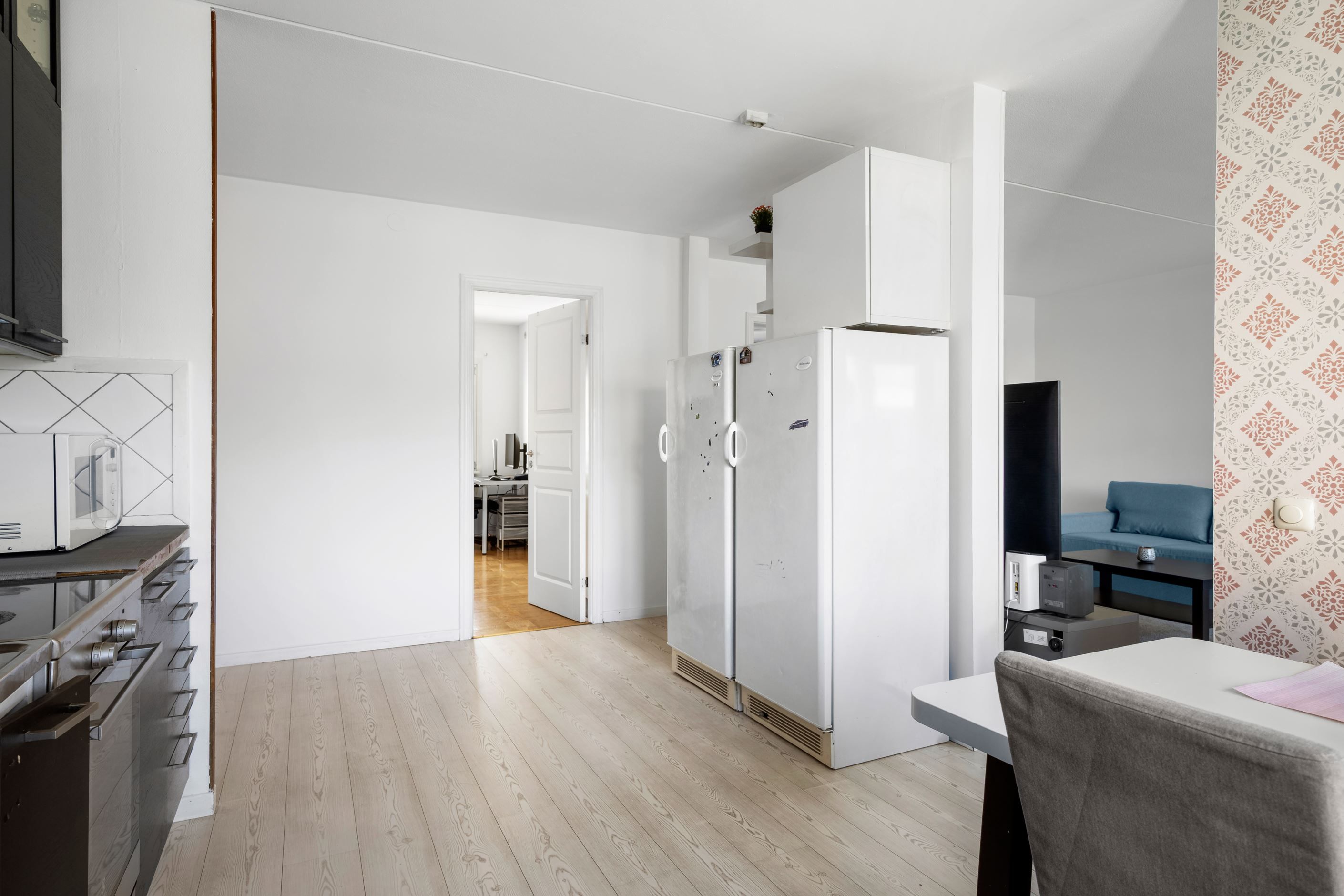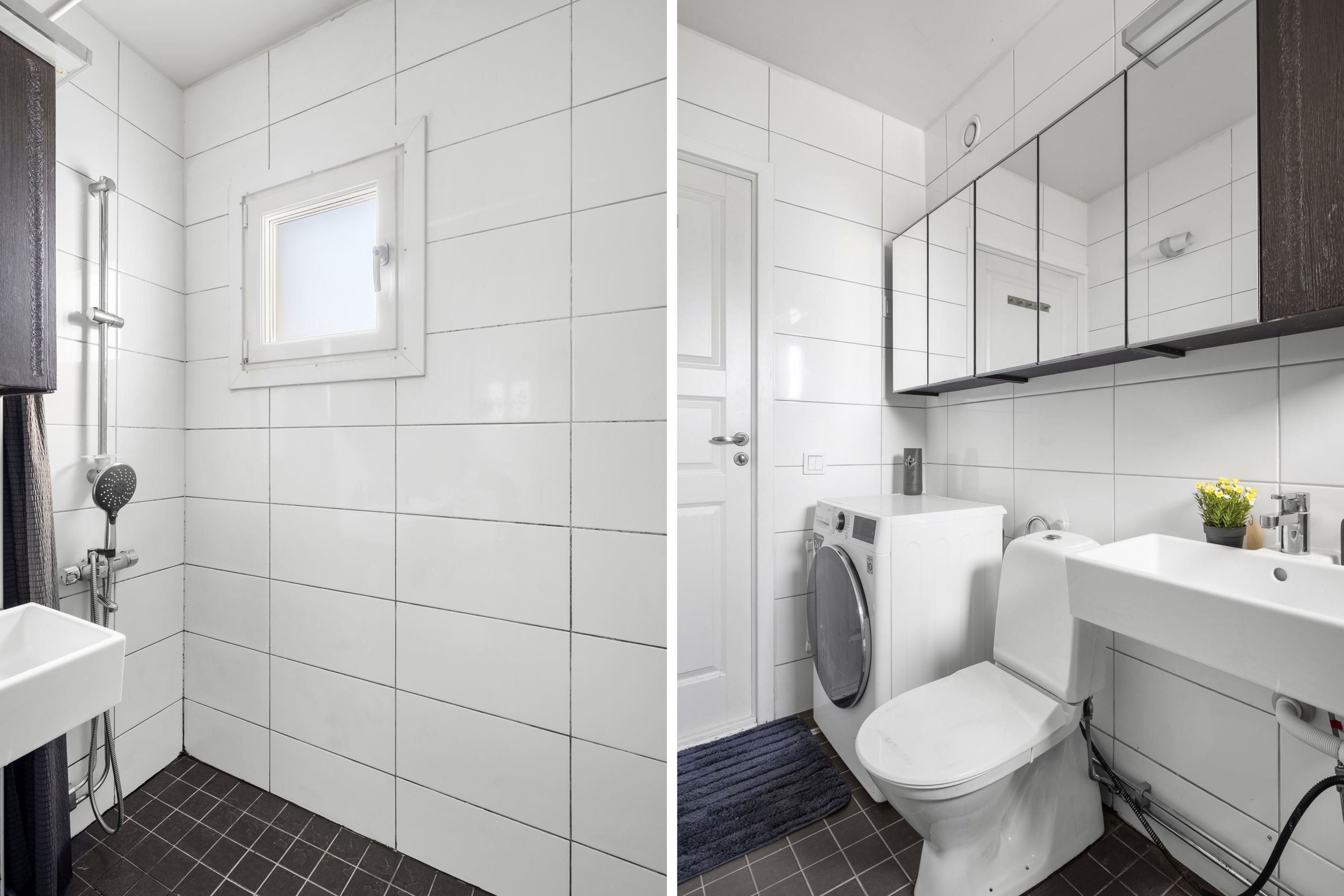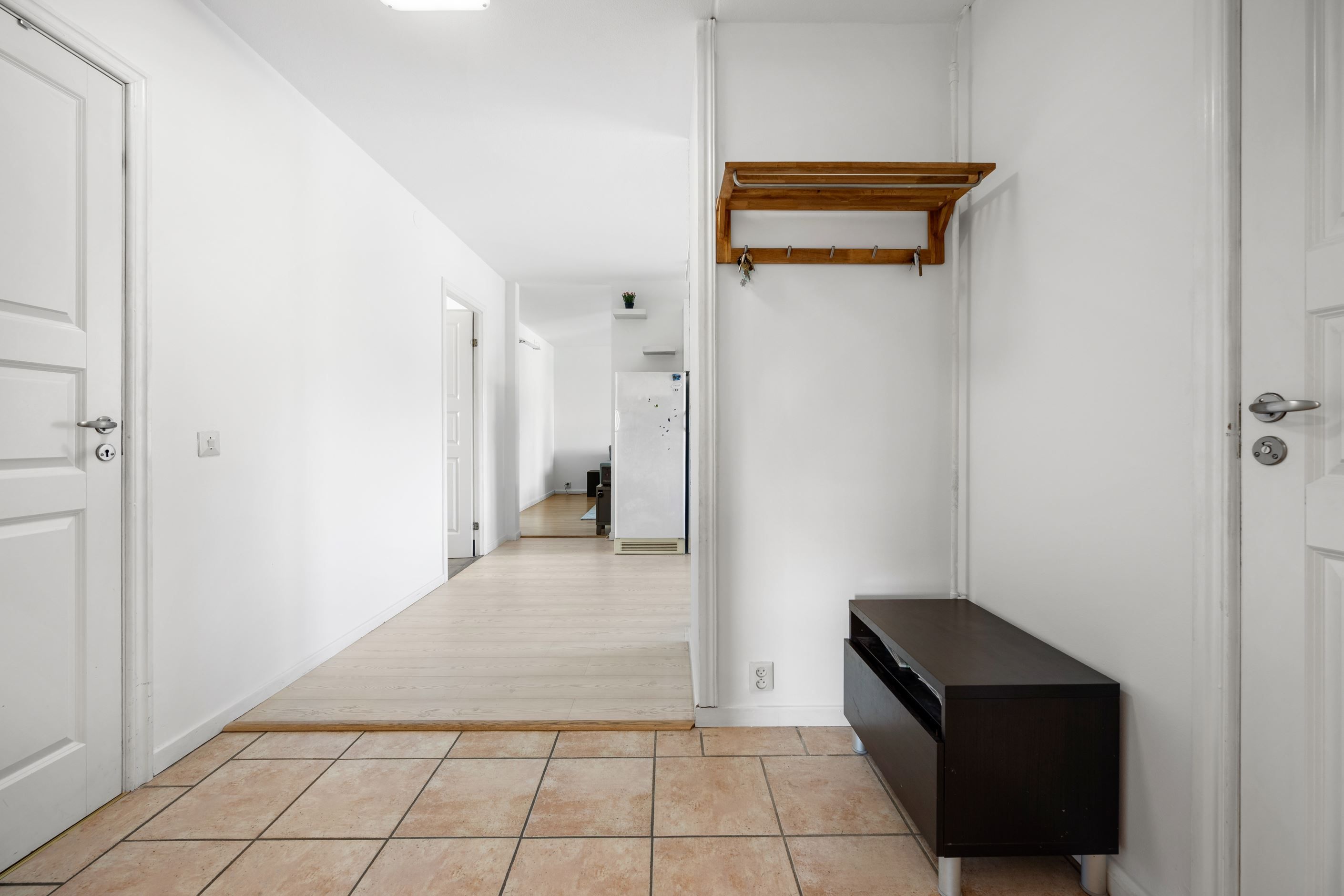 Bostaden erbjuder en välkomnande hall, ett stort och socialt vardagsrum med utgång till en stor och härlig uteplats, kök med gott om arbetsyta och mycket förvaring bakom skåpsluckor. Köket är fullutrustat med all maskinell utrustning som man kan önska. Helkaklat badrum i smakfull stil. Vidare finns två rymliga sovrum och ett förråd i lägenheten.