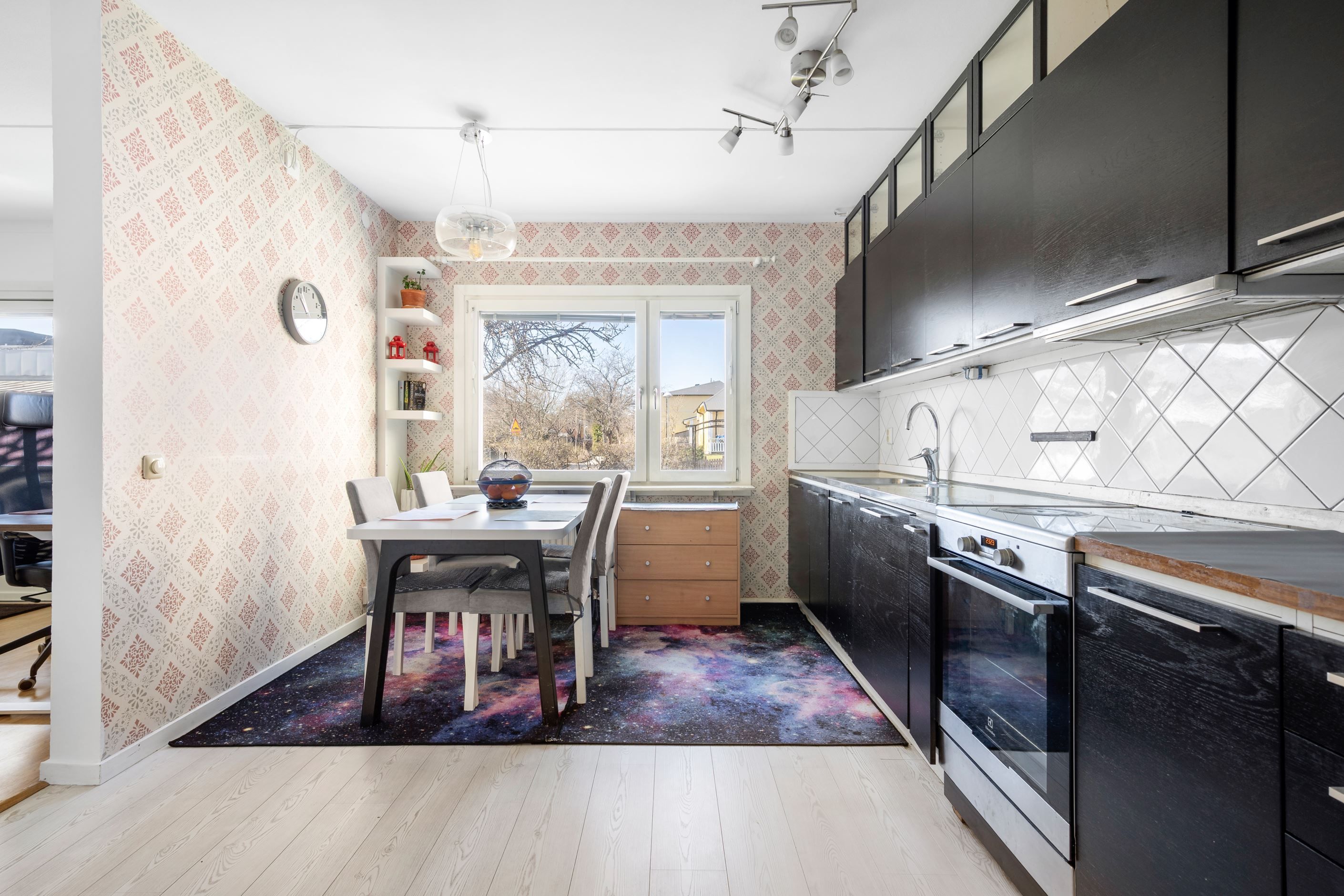 Bostaden är beläget i ett optimalt läge där du bor med närhet till allt vad du behöver och lite till. Du bor granne med Kista Galleria där du hittar lite mer av allt. 180 butiker och restauranger, Filmstaden Kista, och O´Learys Bowling & Gokart. Utöver detta finns ett gediget serviceutbud. Här hittar du även Kistas bussterminal, en knutpunkt för bussar som går till många olika områden i nordvästra Storstockholm. Vill du känna citylivets puls tar det dig ca 17 minuter med tunnelbanans blåa linje.