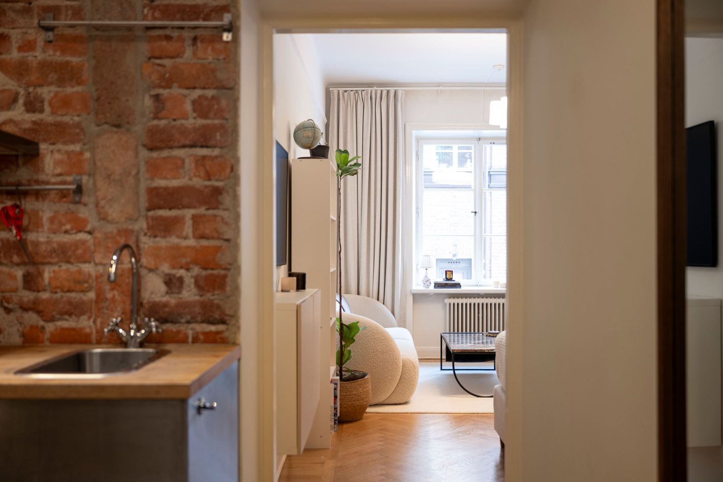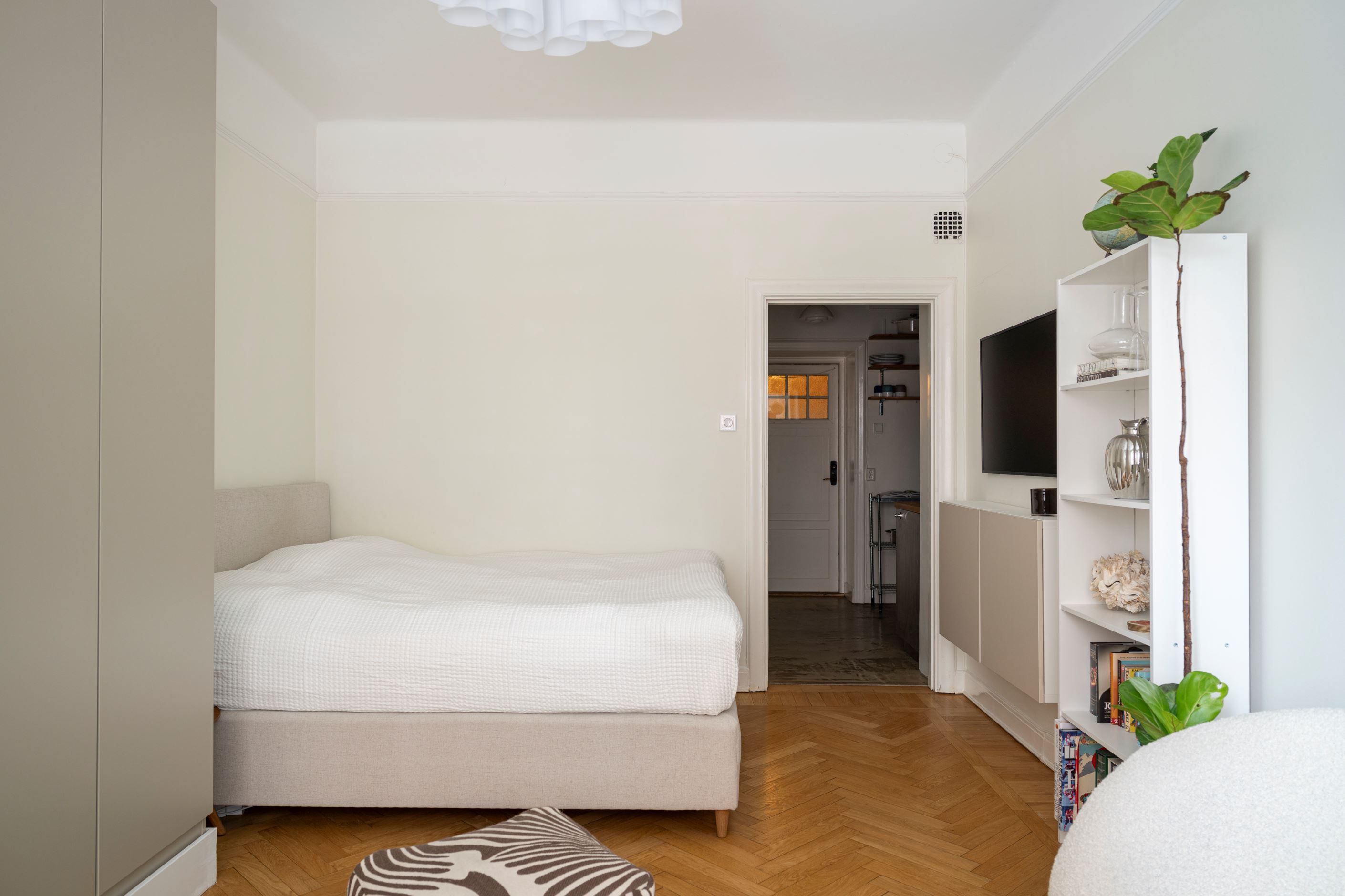 I ett vackert 20-talshus på Ringvägen 139 finner du denna välplanerade lägenhet om 28 kvm – perfekt för dig som söker ett stilfullt och yteffektivt boende. Lägenheten bjuder på ett rymligt och lättmöblerat allrum med fina originaldetaljer såsom bevarat trägolv, generös takhöjd och ett stort spröjsat fönster som ger ett härligt ljusinsläpp.