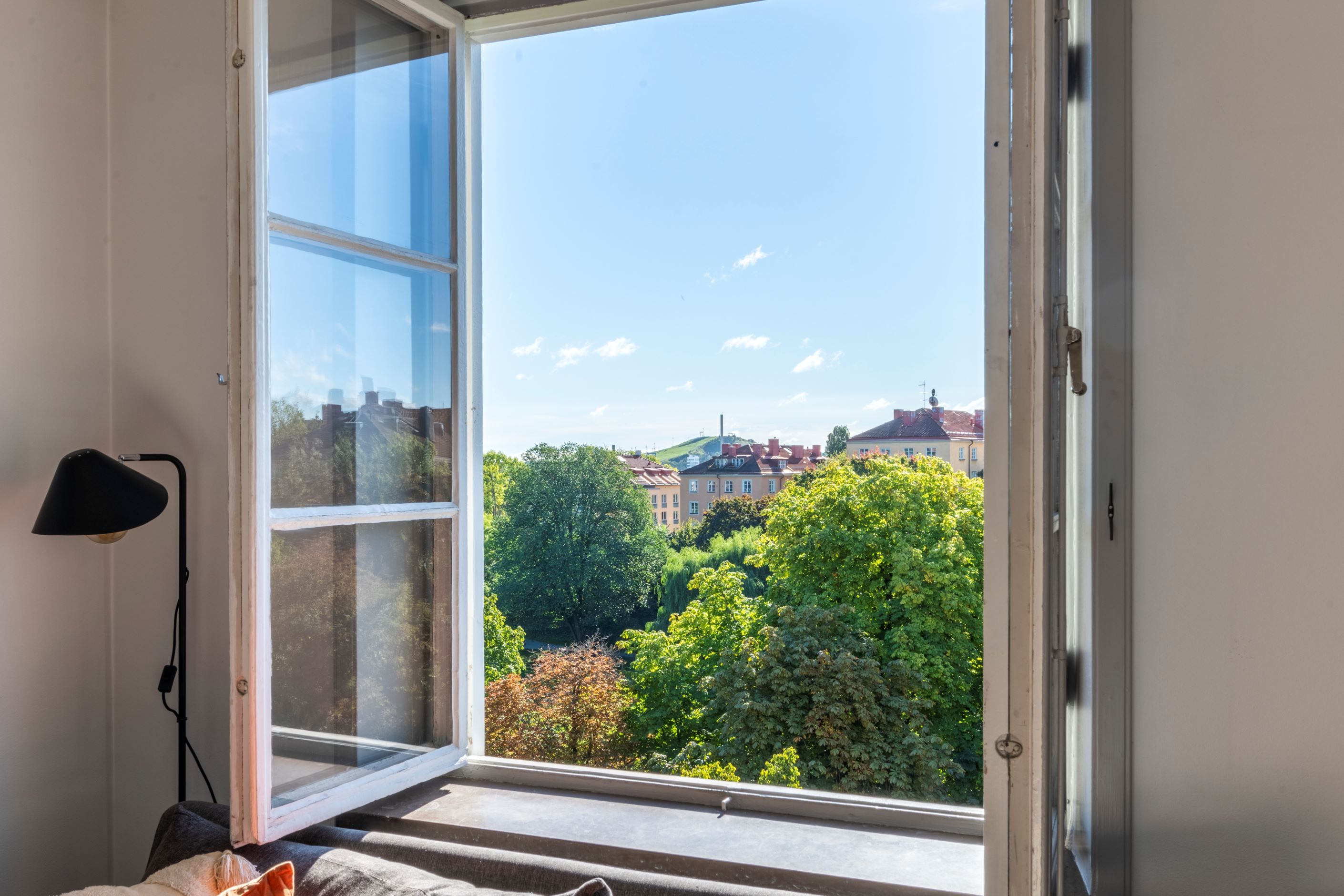 ACCEPTERAT PRIS. Fantastisk genomgående lägenhet med högt läge och fri utsikt över Lilla Blecktornsparken, takåsar och hela vägen till Hammarbybacken! Välkommen till denna 3:a med fräscha materialval, bra med förvaring, sociala ytor, genomgående fiskbensparkett och plats för ett hemmakontor. Här bor du högt upp i huset med ett fritt och insynsskyddat läge som skapar ett fantastiskt ljusflöde genom hela lägenheten. Lägenheten har ett perfekt läge med närhet till grönska vid Vitabergsparken, lummiga promenadstråk vid vattnet, flertalet lekparker samt pulsen kring Nytorget med dess stora utbud av restauranger. Bra med kommunikationer med närhet till både bussar och tunnelbana.