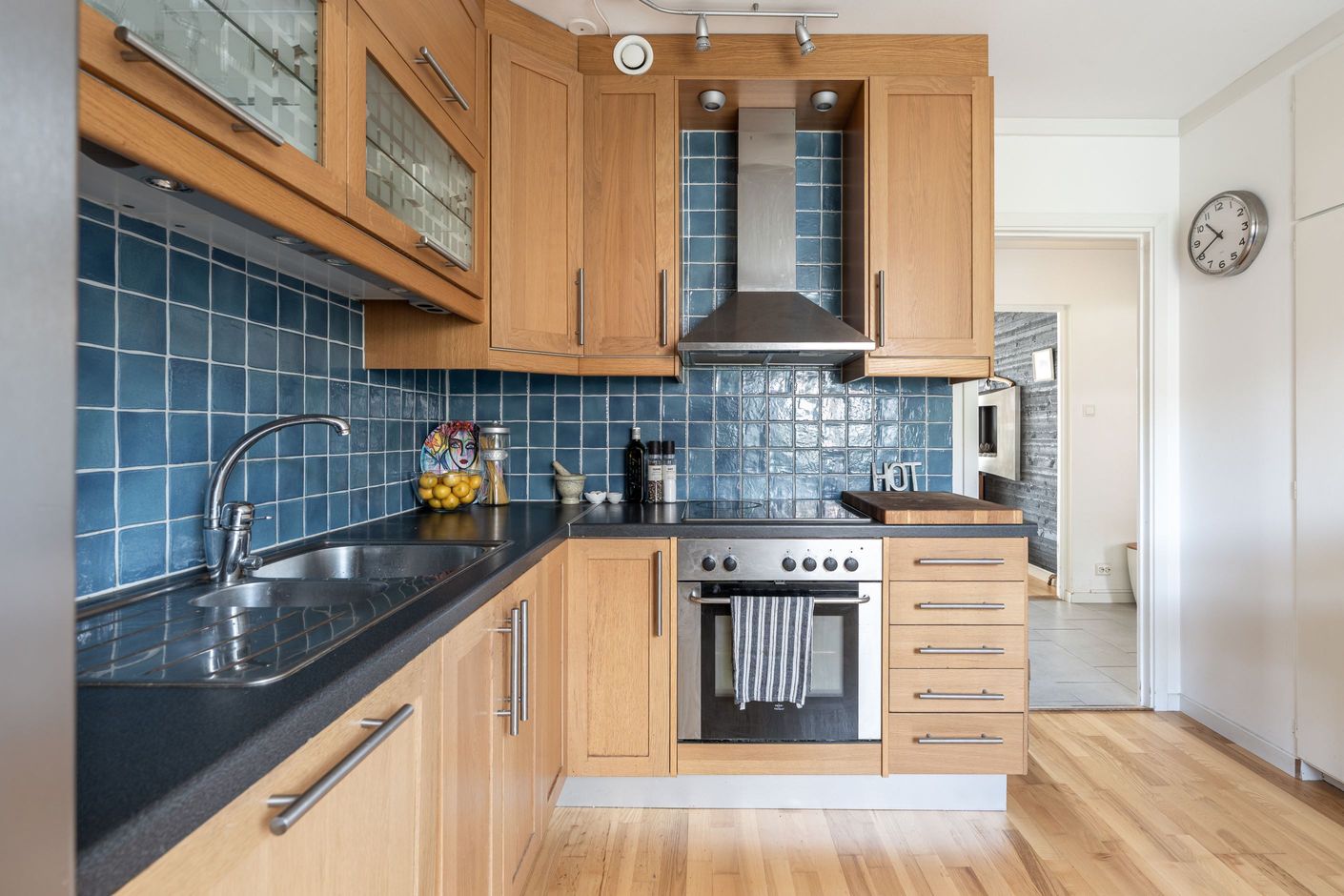 Bostaden bjuder på en ljus hall med gott om förvaringsmöjligheter i garderober. Härifrån nås alla rum, vilket ger en smidig och trivsam planlösning. Köket är praktiskt utformat med fina luckor och ett stilfullt blått kakel. Vidare finner du ett rymligt vardagsrum med härligt burspråk och gott om plats för både matgrupp och stor soffa, härifrån nås balkongen med grönt läge mot innergården, en perfekt plats för avkoppling. Sovrummet erbjuder generös förvaring i garderober och badrummet är ljust och fräscht.