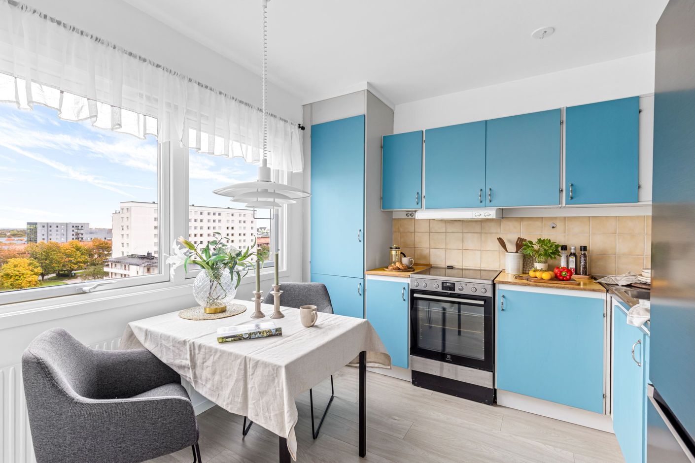 Välkommen till denna charmiga och välplanerade lägenhet om 42 kvm, belägen på sjätte våningen. Här möts du av ett fantastiskt ljusinsläpp, smart disponerade ytor och en trivsam atmosfär som genomsyrar hela hemmet, ett perfekt boende för dig som söker ett hem med både stil, funktion och personlighet.