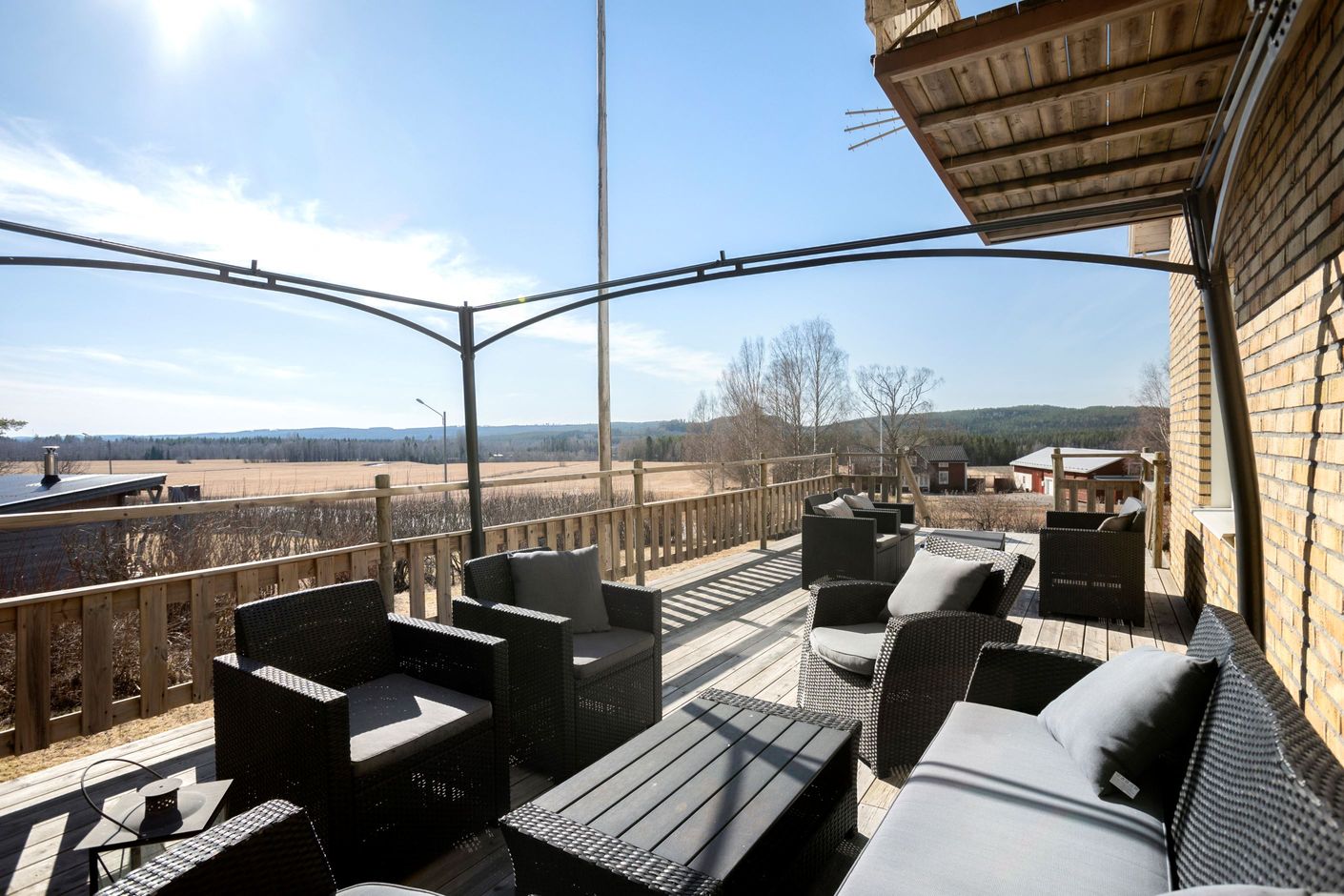 Här finnes en trevlig trädgård med bl.a. en fin jordkällare, stor härlig altan med fin utsikt och ett praktiskt förråd.