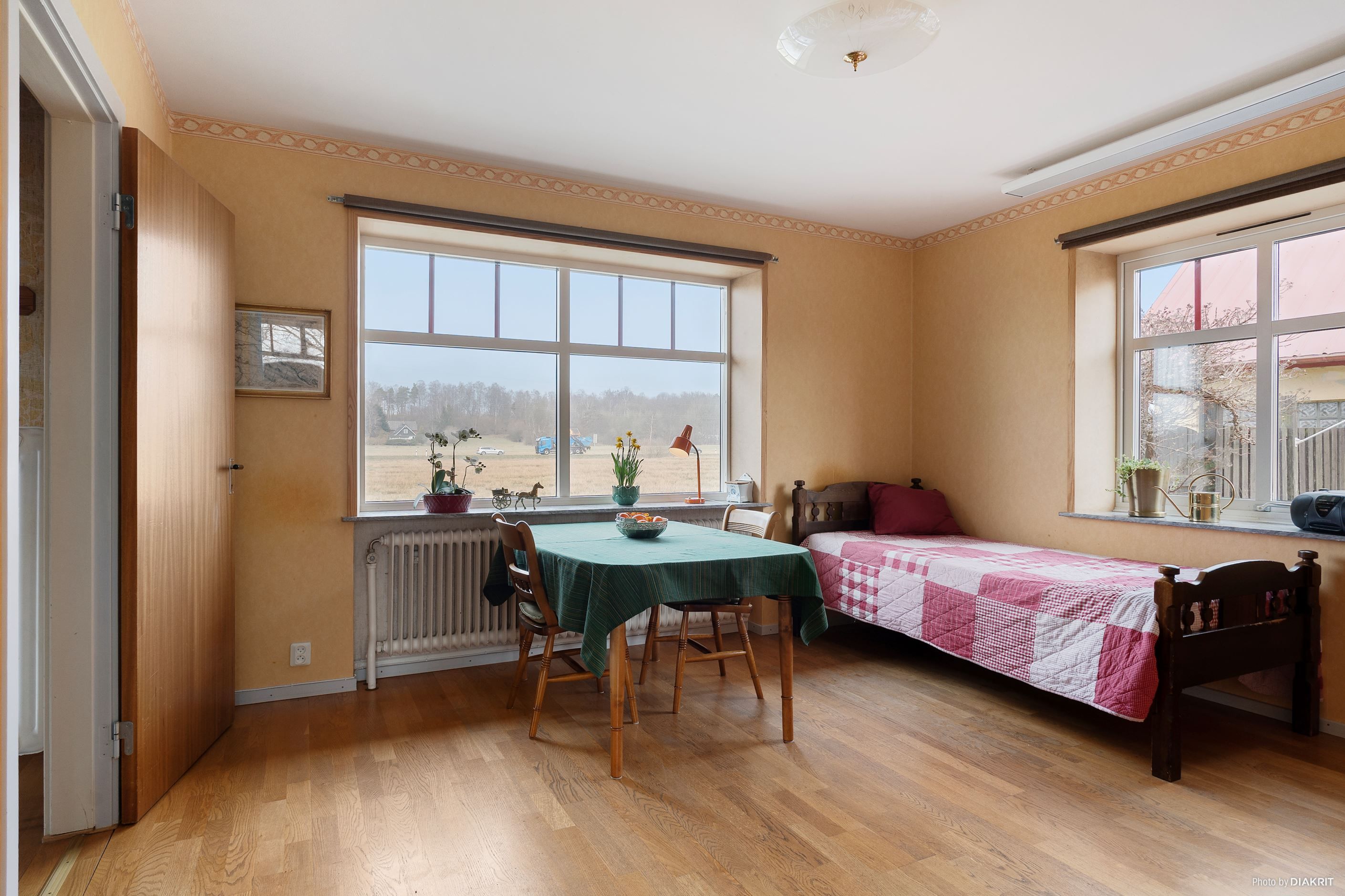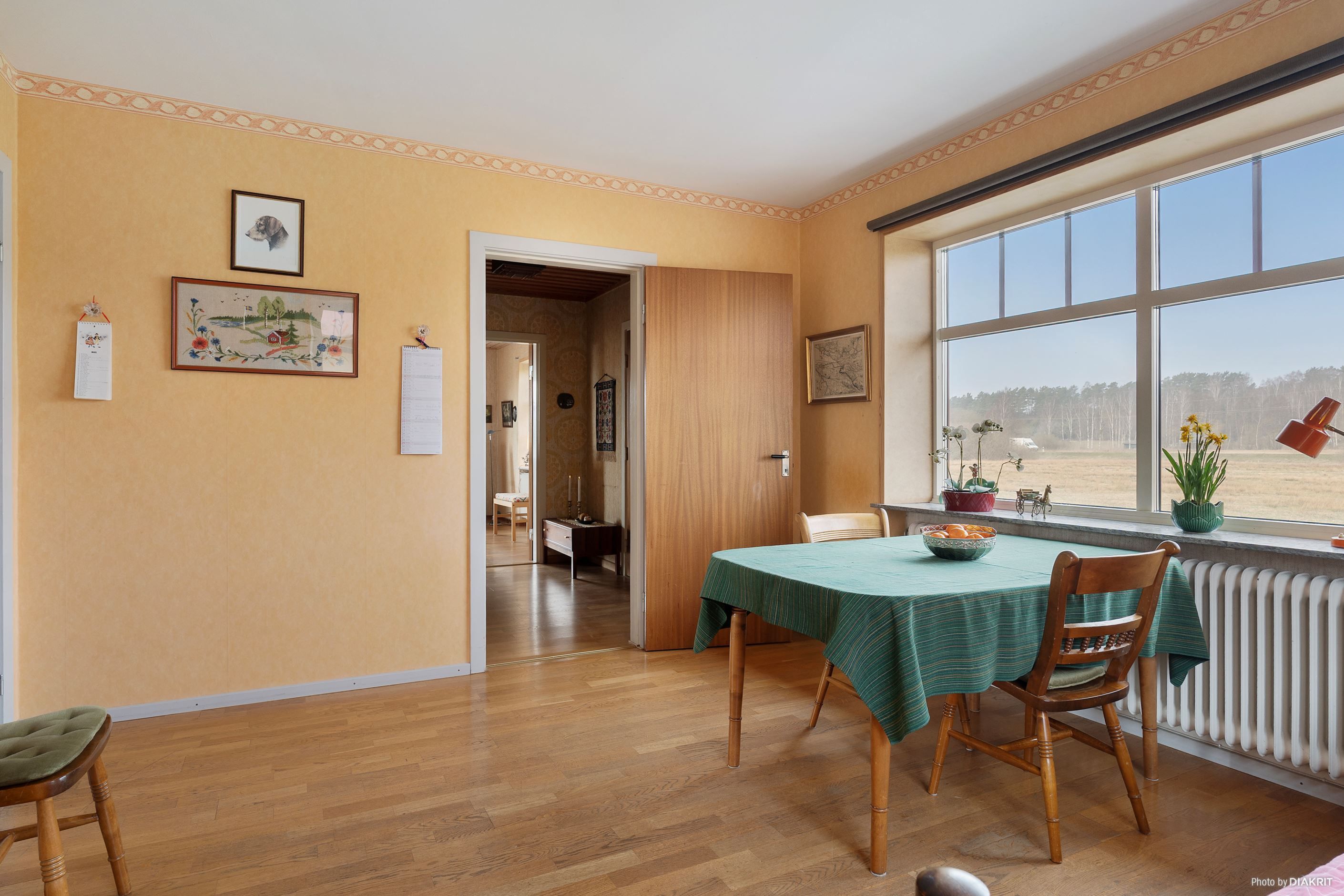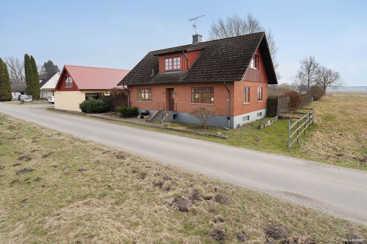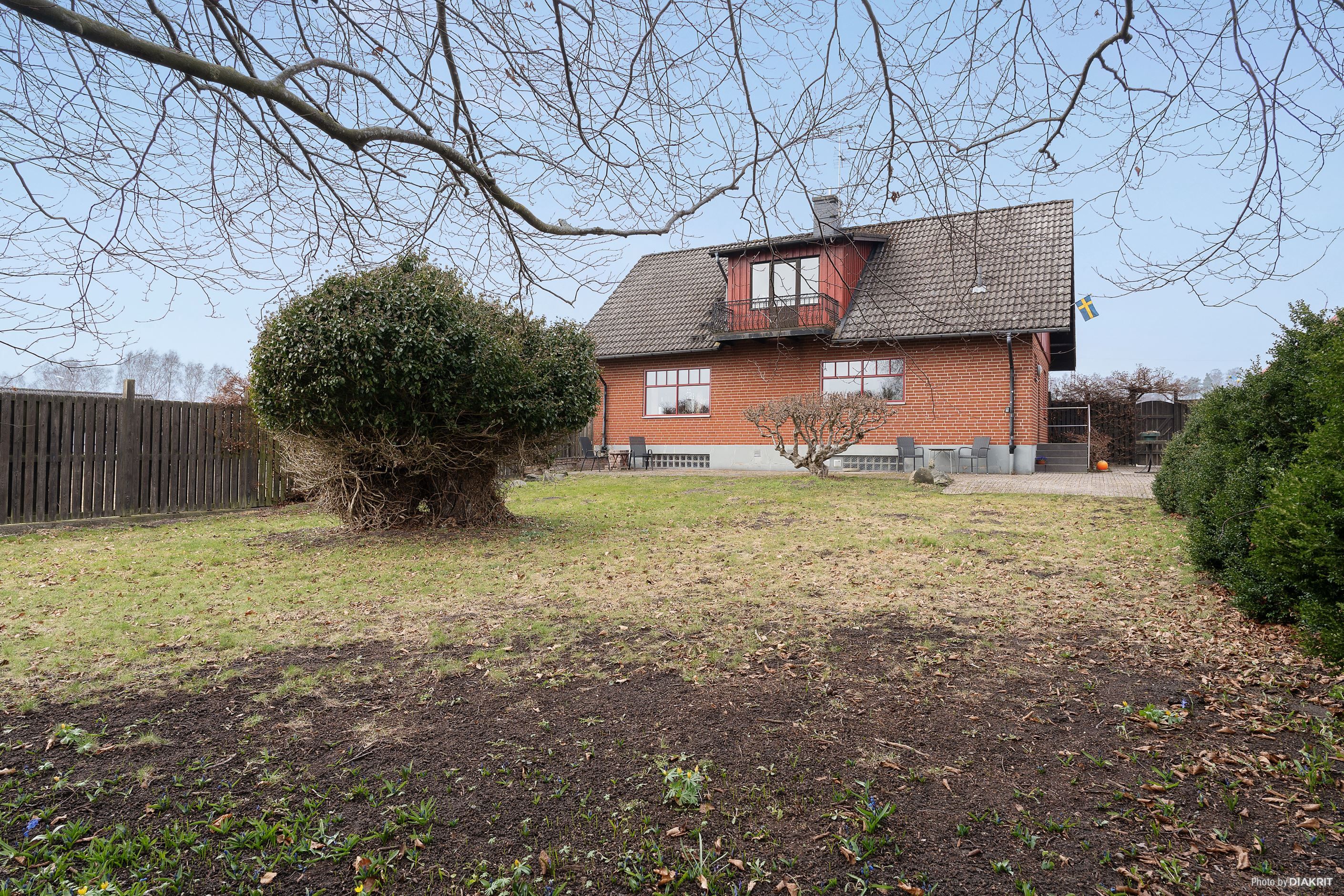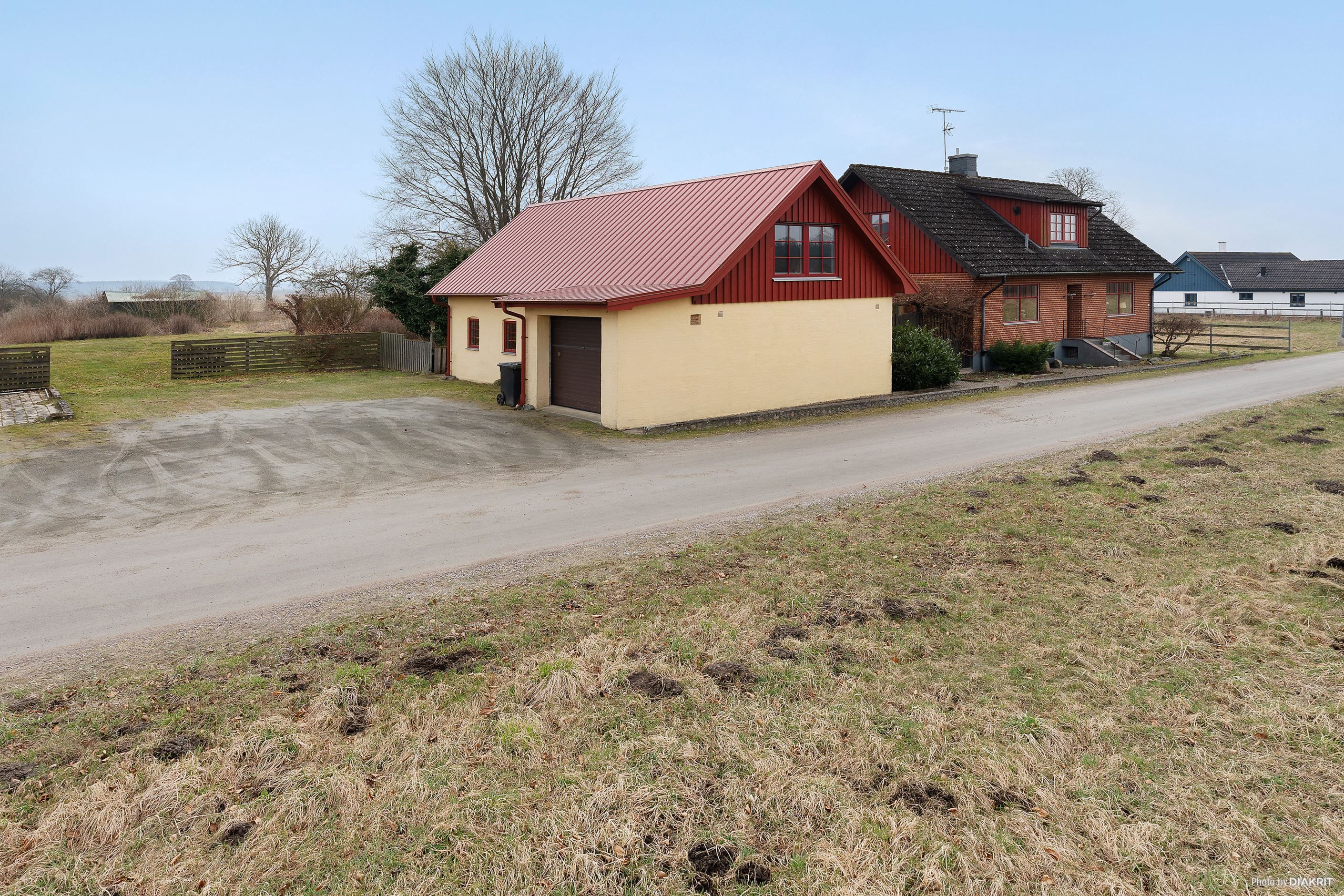 På fritt läge söder om Sjöbo i Ryggorna finner du denna genuina villa med friliggande verkstad och en lantbruksfastighet med betesmark om 3 Ha. Välskött bostad med stora härliga rum och underbar utsikt ut över vackra fält. Här njuter man av lugnet och betande hjortar och rådjur på fälten. Entréplan inbjuder till gemenskap med stort kök, rejält tilltaget vardagsrum med fönster i 3 väderstreck och ett rum som passar som matrum eller kontor. På övre plan finns det 3 sovrum alla utrustade med bra förvaringsmöjligheter. Källaren har en stor tvättstuga och ytterligare 3 rum. Sidobyggnaden inrymmer både verkstad och isolerad gillestuga. I den väl tilltagna trädgården i söderläge finns det plats för att odla, bra gräsytor som inbjuder till lek eller bara koppla av på den stensatta innergården. Betesmarken angränsar till porlande bäck och i uthuset finns det framdraget vatten och ström. Här har du en unik möjlighet att förverkliga familjens drömmar i ett tryggt och trivsamt hem med gångavstånd till Sjöbo centrum och skogen som sträcker sig förbi Fyledalen.