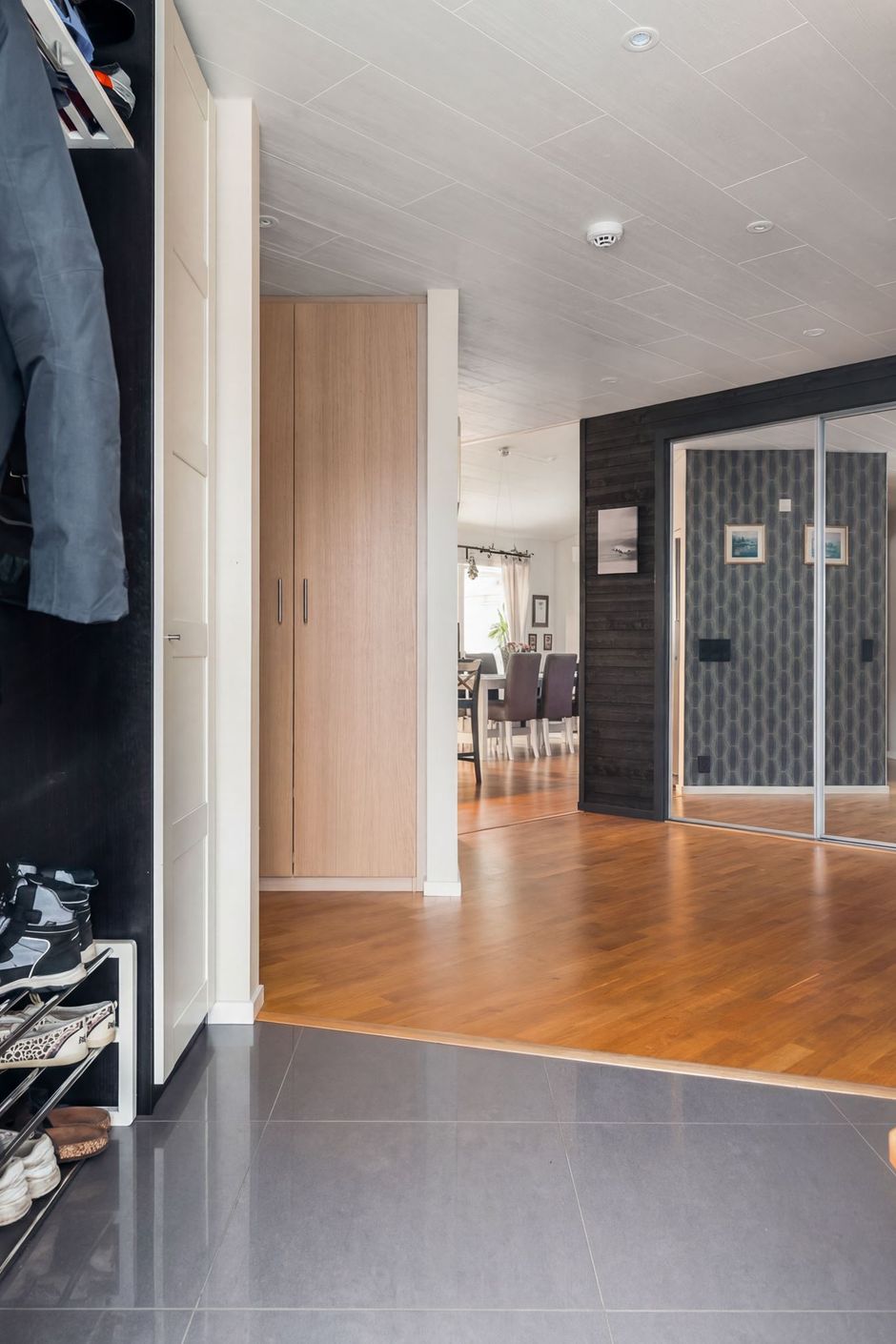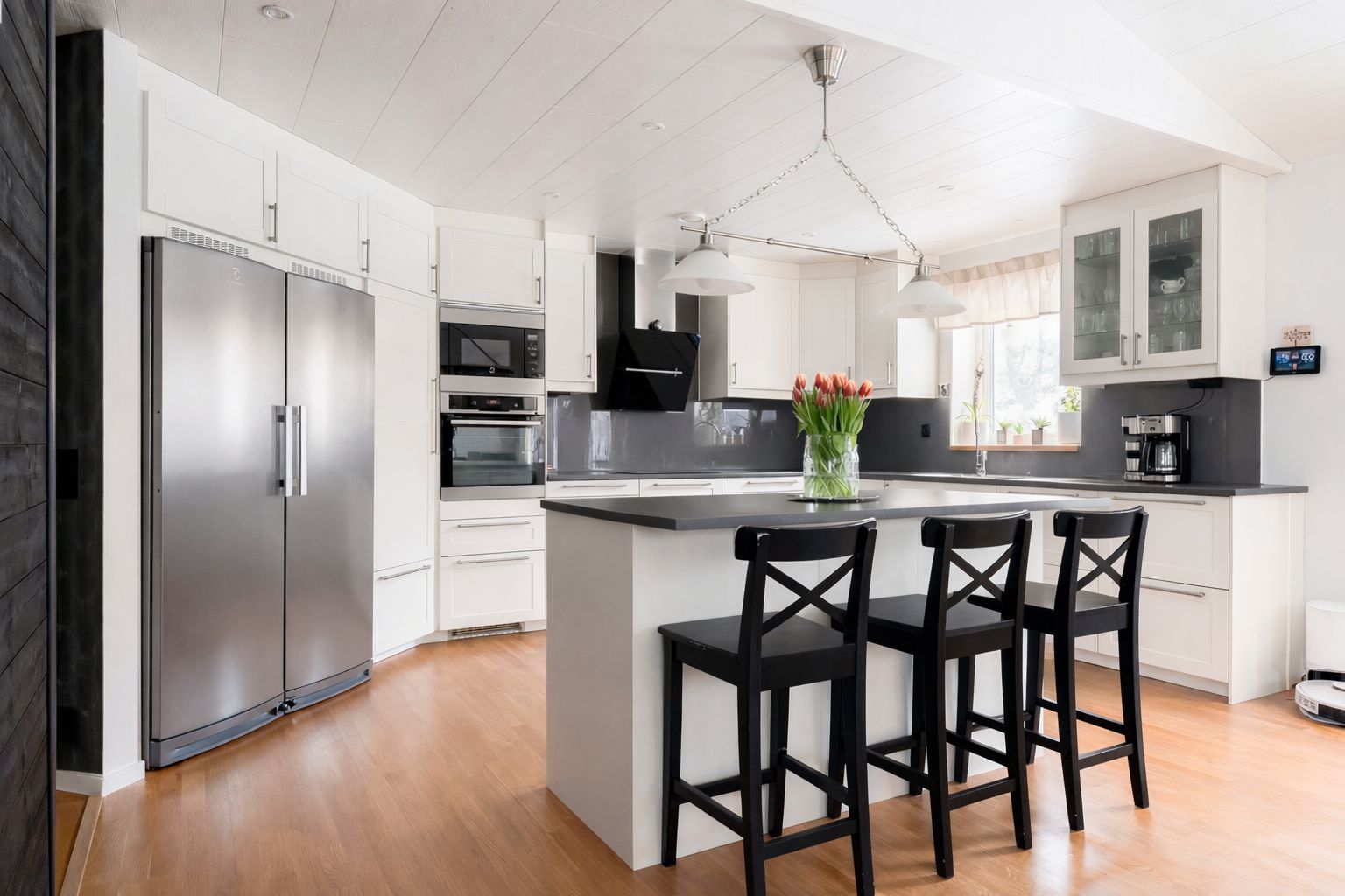 Bostaden präglas av ljus, rymd och en genomtänkt planlösning där kök och vardagsrum möts i en öppen och social miljö – perfekt för både vardag och umgänge. De fem sovrummen erbjuder generösa möjligheter för familjen, gäster eller för dig som önskar ett eller flera hemmakontor. Stora fönsterpartier och moderna materialval skapar en harmonisk och trivsam atmosfär genom hela huset.