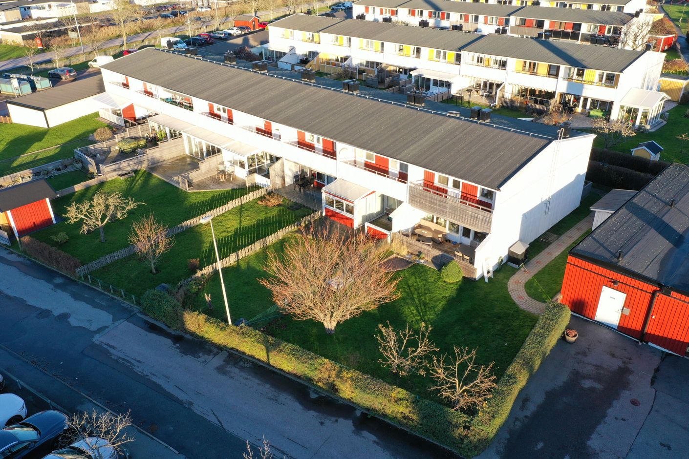 Från vardagsrummet nås den härliga uteplatsen i västerläge – en perfekt plats för eftermiddags- och kvällssol, grillkvällar och avkoppling efter arbetsdagen.