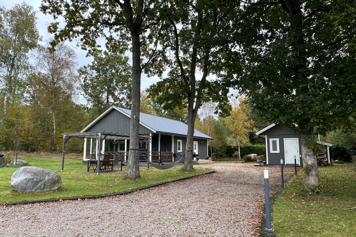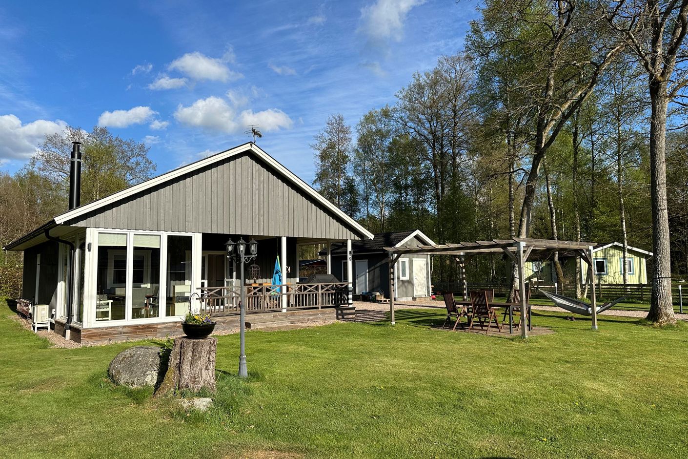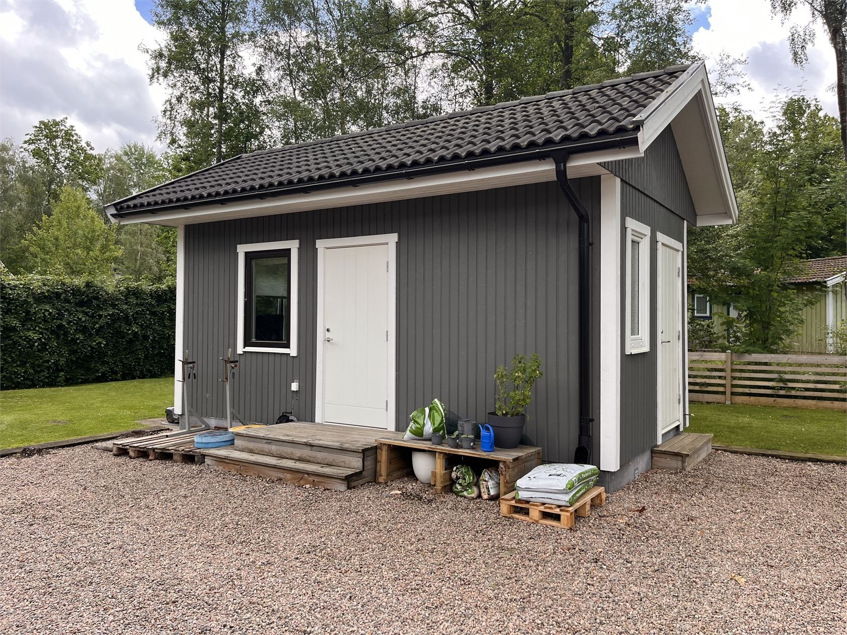 Utöver huvudbyggnaden finns även ett gästhus byggt 2016 om ca 20 kvm med pentry och egen toalett – perfekt för gäster, tonårsbarn eller som arbetsutrymme.