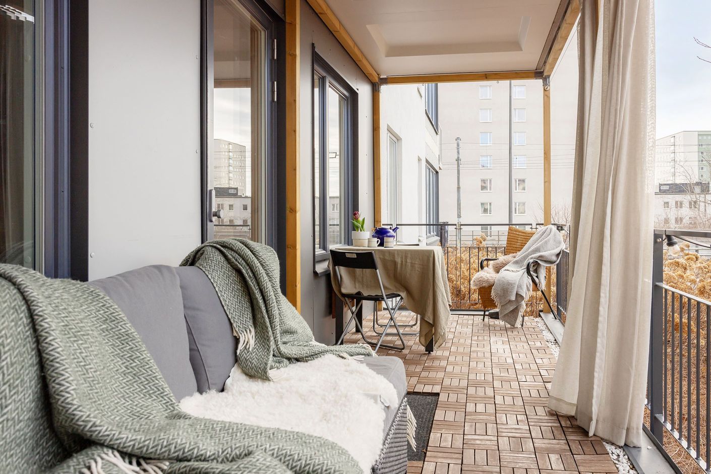 Den öppna planlösningen mellan kök och vardagsrum skapar en social och inbjudande miljö, perfekt för såväl vardagen som middagar med vänner och familj. Vardagsrummets generösa yta bjuder in till möblering med både soffa och matbord med bibehållen luftig känsla. Stora fönster i gavel ger rummet rikligt med naturligt ljus.