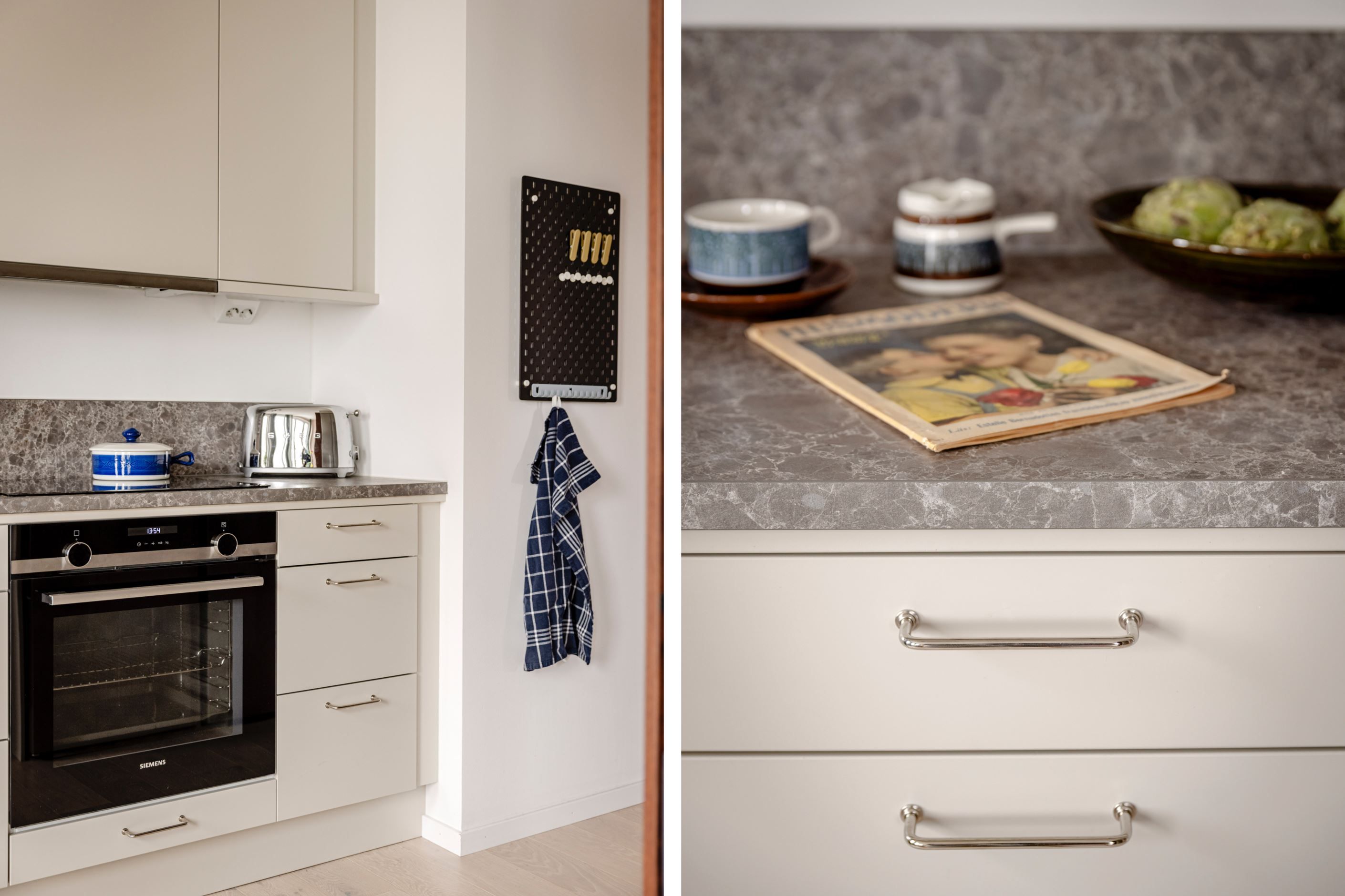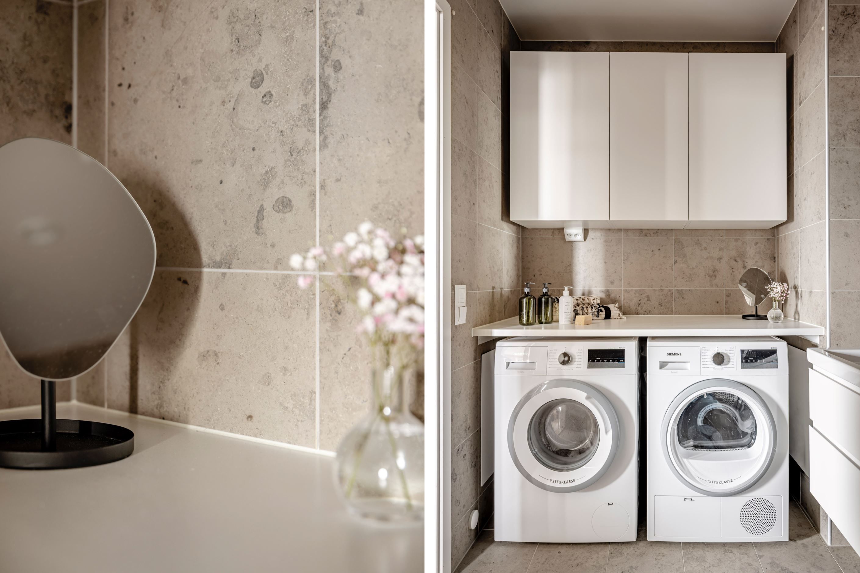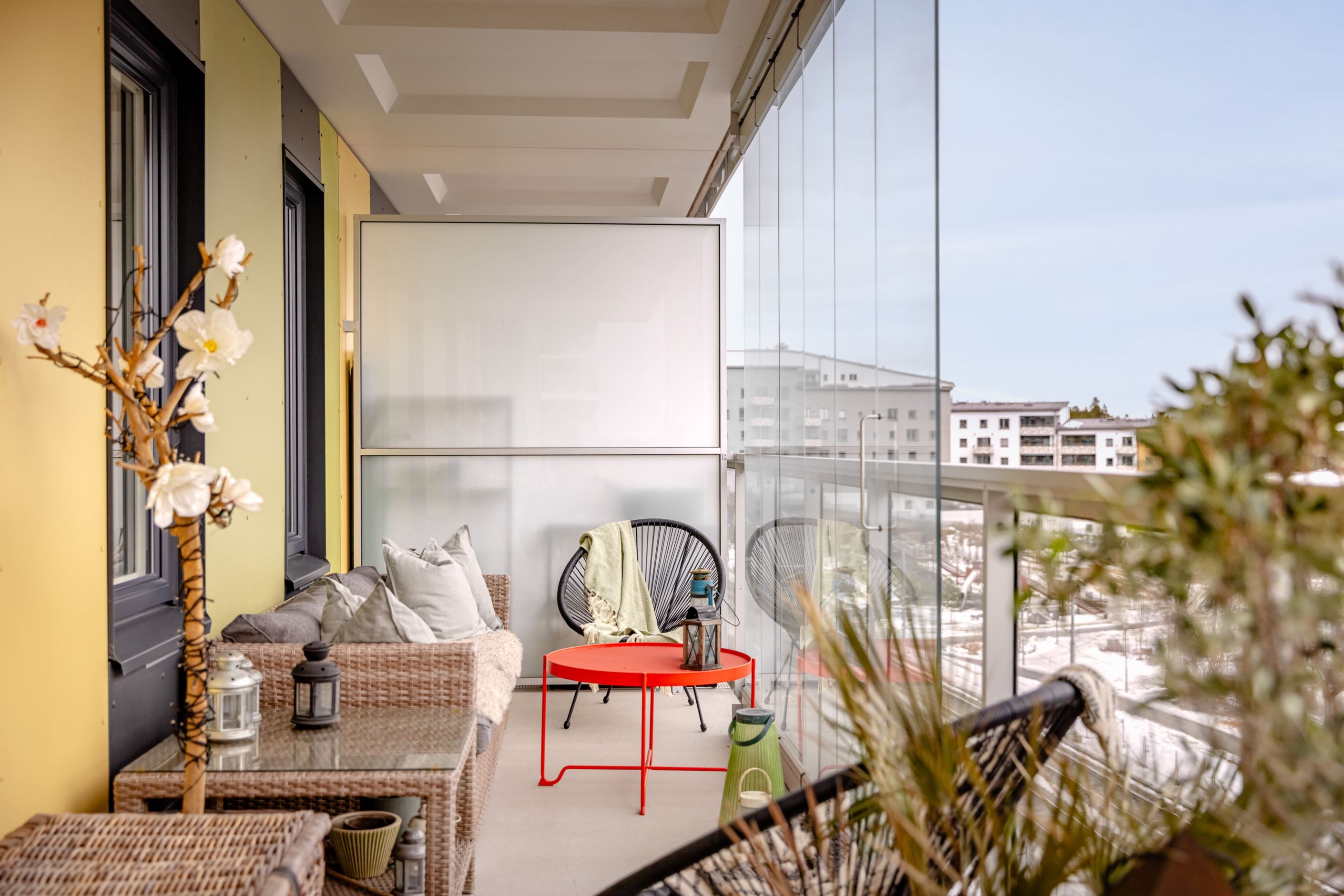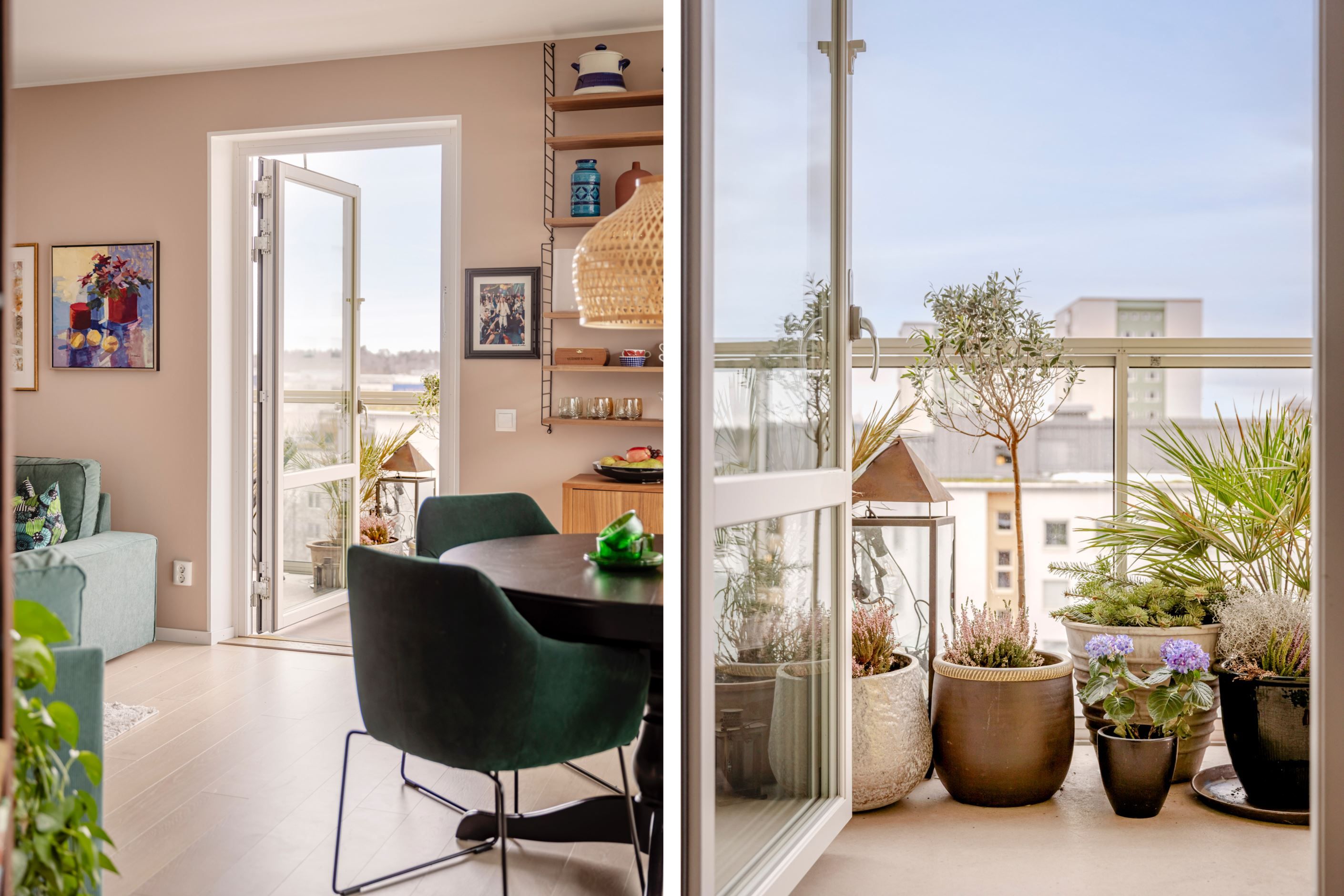 Köket är stilrent och modernt med gott om förvaring såväl som arbetsyta. Här finns självklart full maskinell utrustning med ugn, spis, fläkt, micro samt dubbel kyl och frys. Den öppna planlösningen mellan kök och vardagsrum ger en social och inbjudande miljö, perfekt för både vardagen och middagar med vänner och familj. Vardagsrummet erbjuder generösa ytor som rymmer både en större soffgrupp och matplats utan att tumma på den luftiga känslan. Tack vare fönster i två väderstreck flödar rikligt med naturligt ljus fritt genom rummet vilket skapar en ljus och härlig atmosfär. Härifrån nås även den stora balkongen som utan problem rymmer både loungemöbel och matgrupp, högt belägen i ett trevligt söderläge. För den som önskar finns även möjlighet att dela av vardagsrummet för ytterligare ett sovrum.