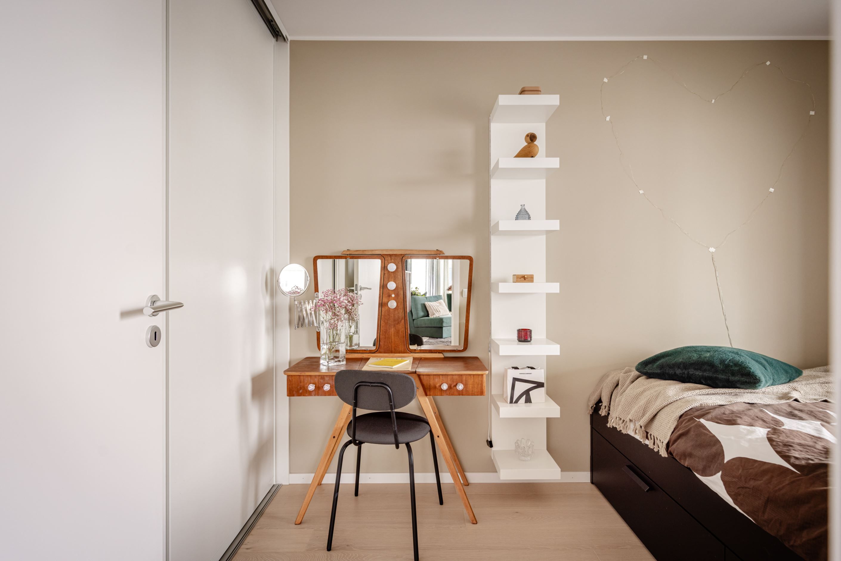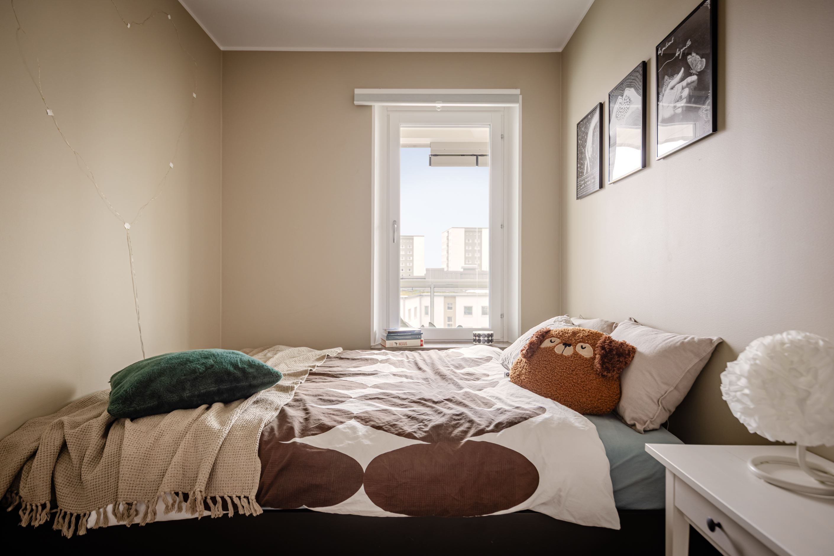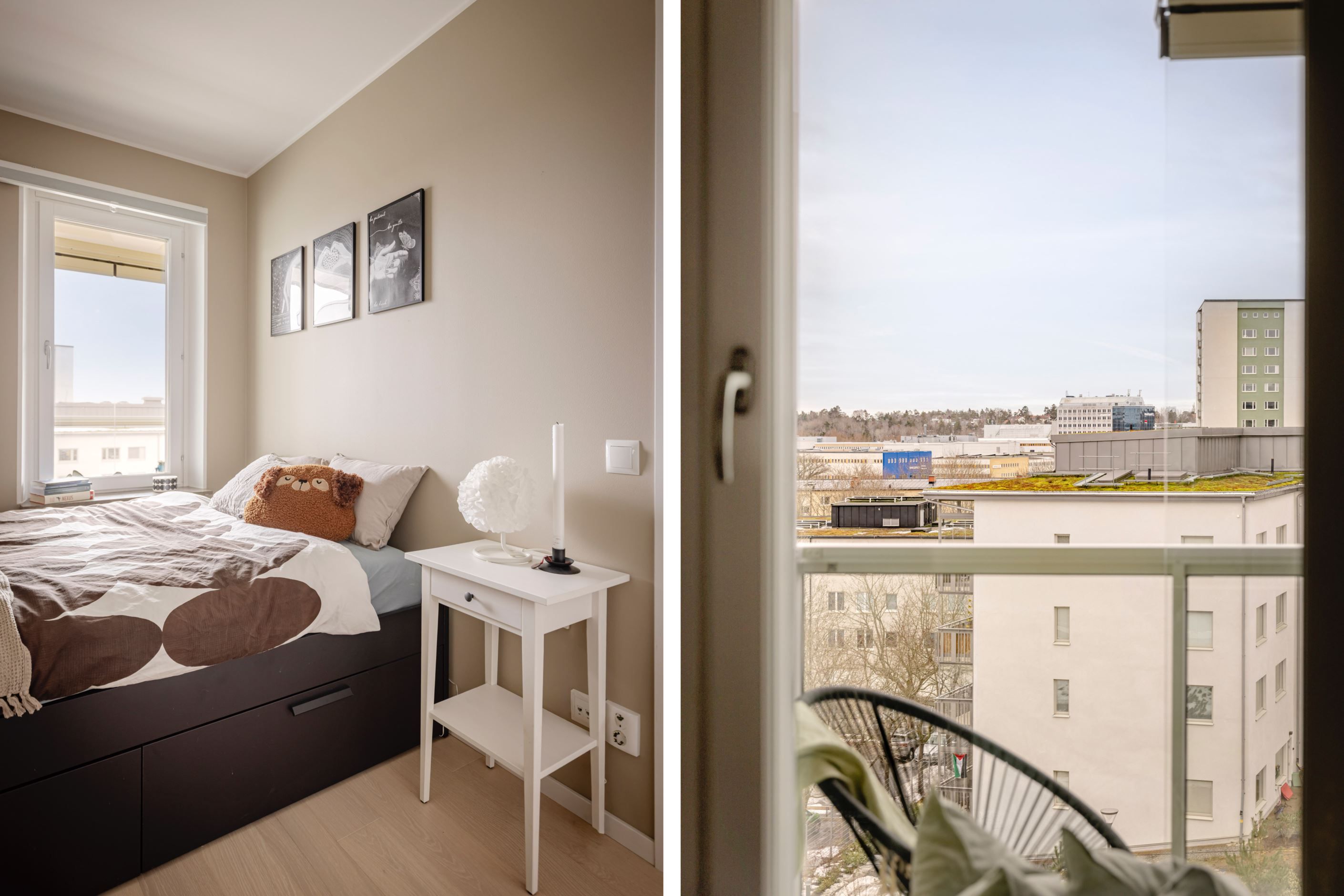Bostaden erbjuder två rymliga sovrum med gott om plats för större säng, sängbord och ytterligare förvaringsmöbel eller skrivbord om så önskas. I det ena sovrummet, som nås från vardagsrummet, finns dessutom gott om förvaring i en rymlig garderobsvägg.