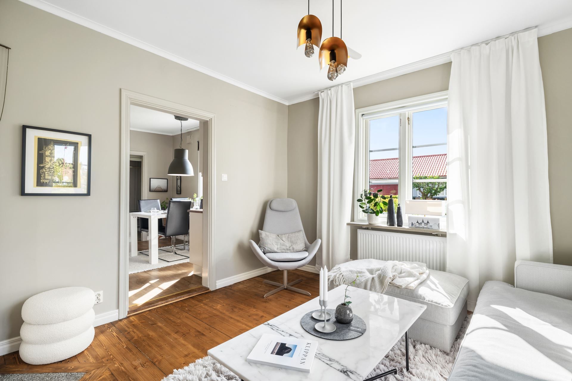 Omgivningen är vacker och samtligt bor du perfekt centralt. En pärla som passar målgruppen från ung till gammal som vill bevara trädgårdsliv och njuta av allt det vackra.