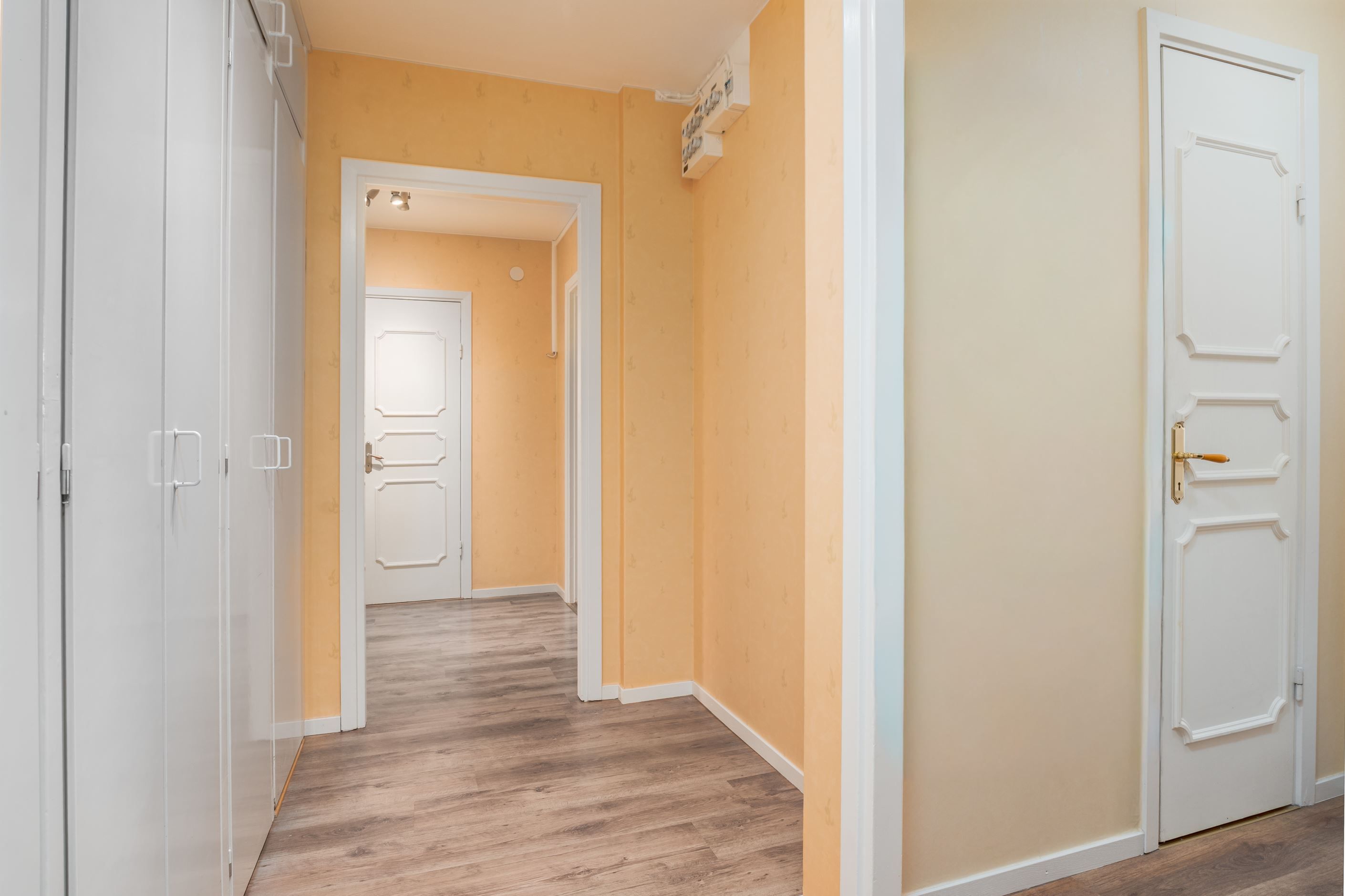 Lägenheten har en rymlig hall med flera garderober, ett stort kök med bra arbetsytor, full maskinell utrustning och en fransk balkong, två separata sovrum som står i förbindelse med varandra genom en mindre hall samt ett vardagsrum som inbjuder till sociala stunder i en ljus och trivsam miljö. I källaren finns två separata och relativt rymliga förrådsutrymmen som hör till lägenheten.