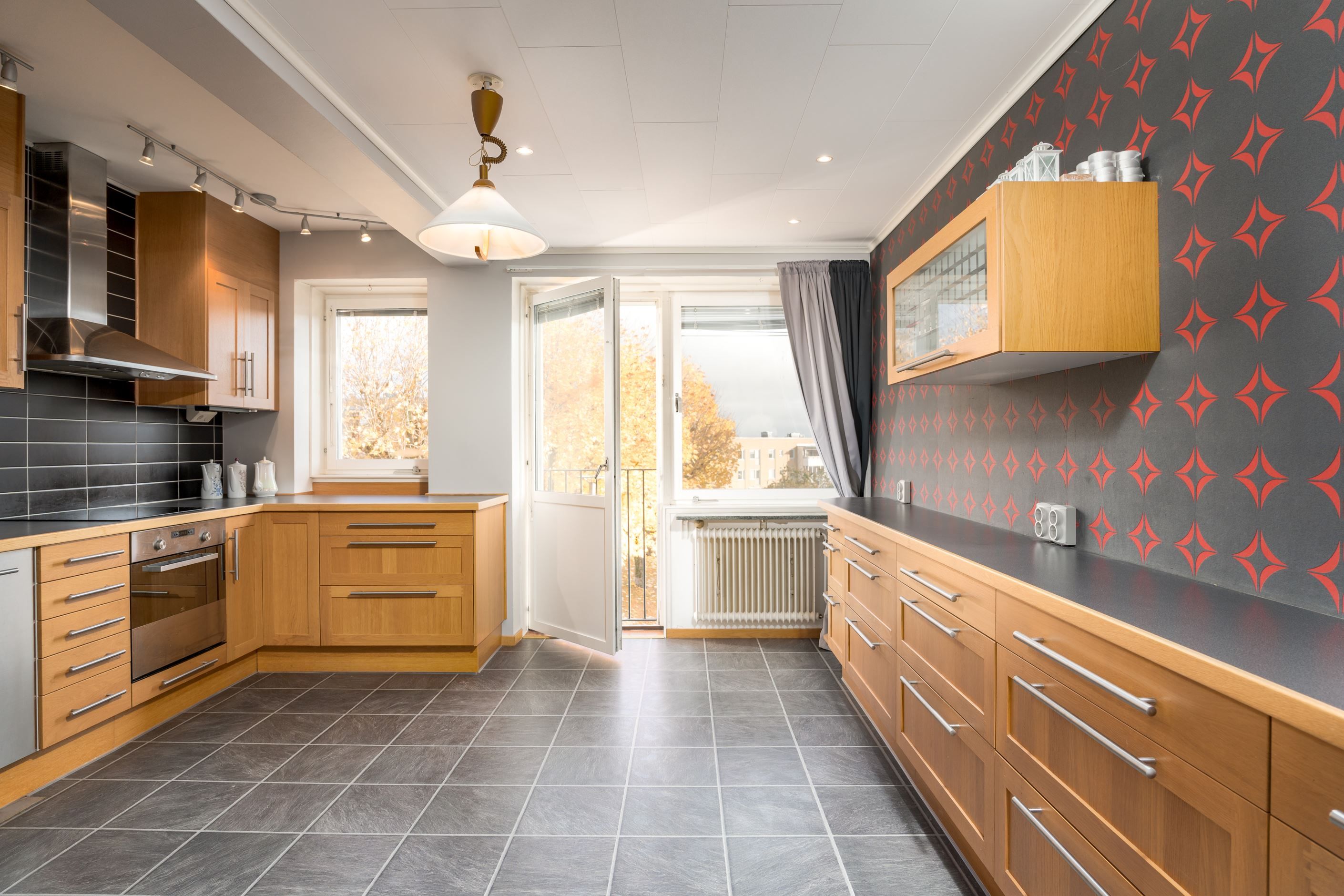 Tapeterna i vardags- och sovrum, hallar och kök är i stort sett i nyskick och saknar hål för tavlor och liknande skavanker.