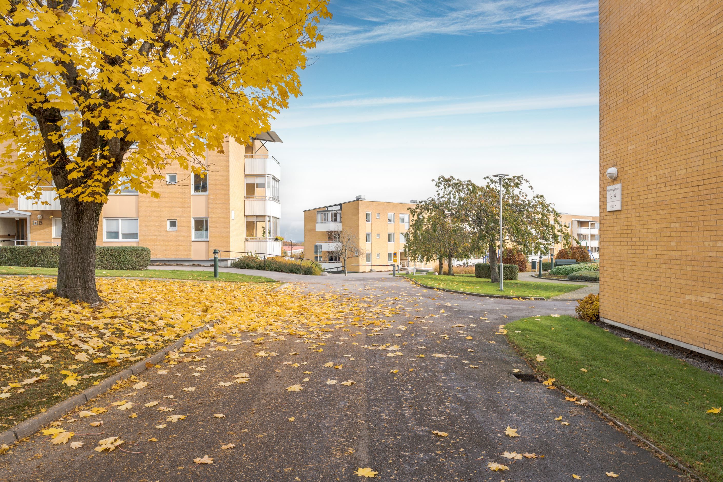 Här erbjuds ett trivsamt boende med genomtänkt planlösning och fint ljusinsläpp från flera väderstreck. Lägenheten hyser mycket goda förvaringsmöjligheter med bl a ett separat förvarings- och garderobsrum. Från det ljusa vardagsrummet nås en stor trevlig balkong med trätrall som ger plats för både avkoppling och umgänge och bjuder på fin utsikt över bl a grönområde.