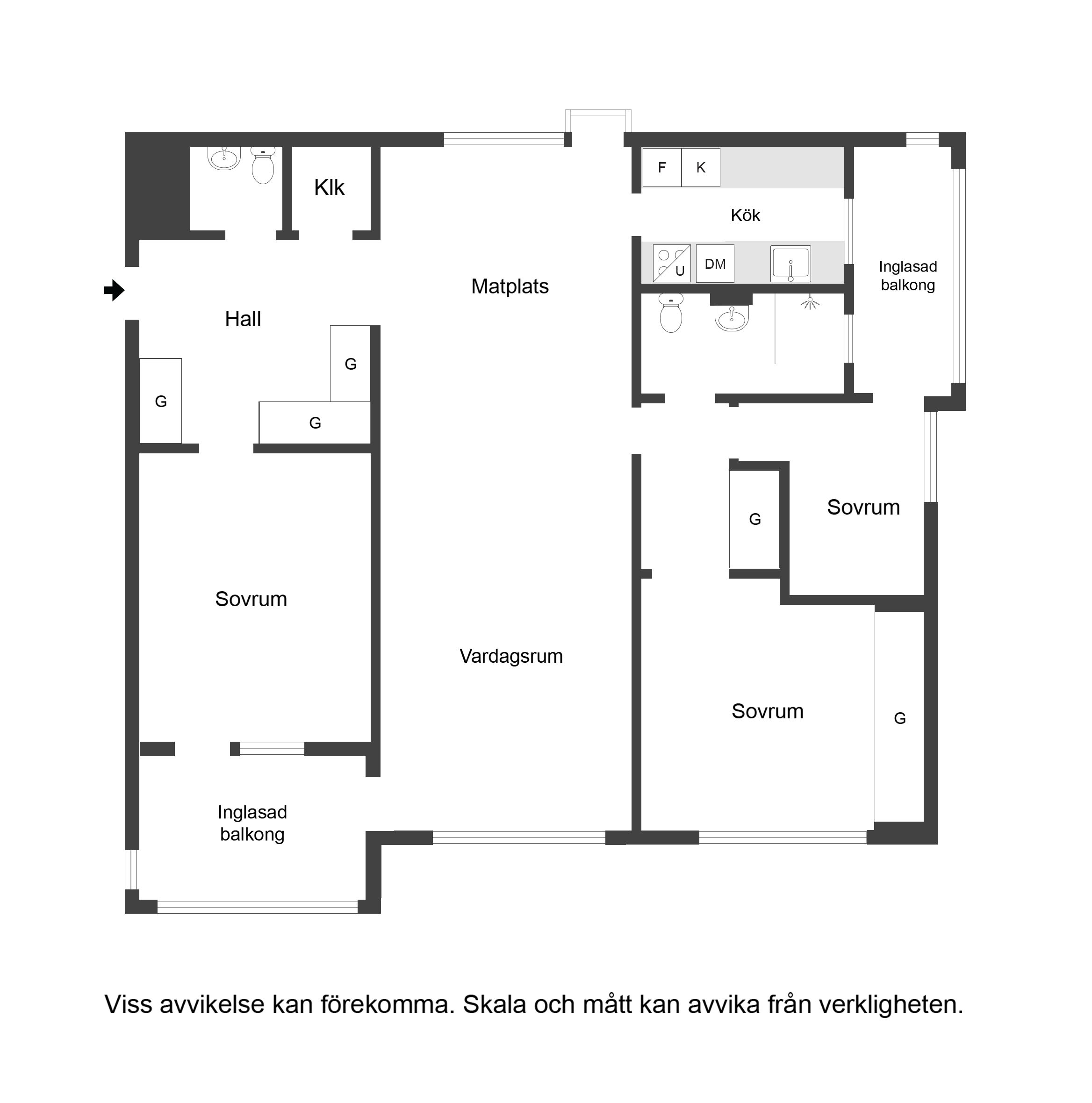 Vidare finns tre bra sovrum med goda förvaringsmöjligheter samt ett badrum och en gäst-wc. Den andra balkongen vetter åt motsatt väderstreck, vilket gör att du alltid kan njuta av både morgon- och kvällssol.