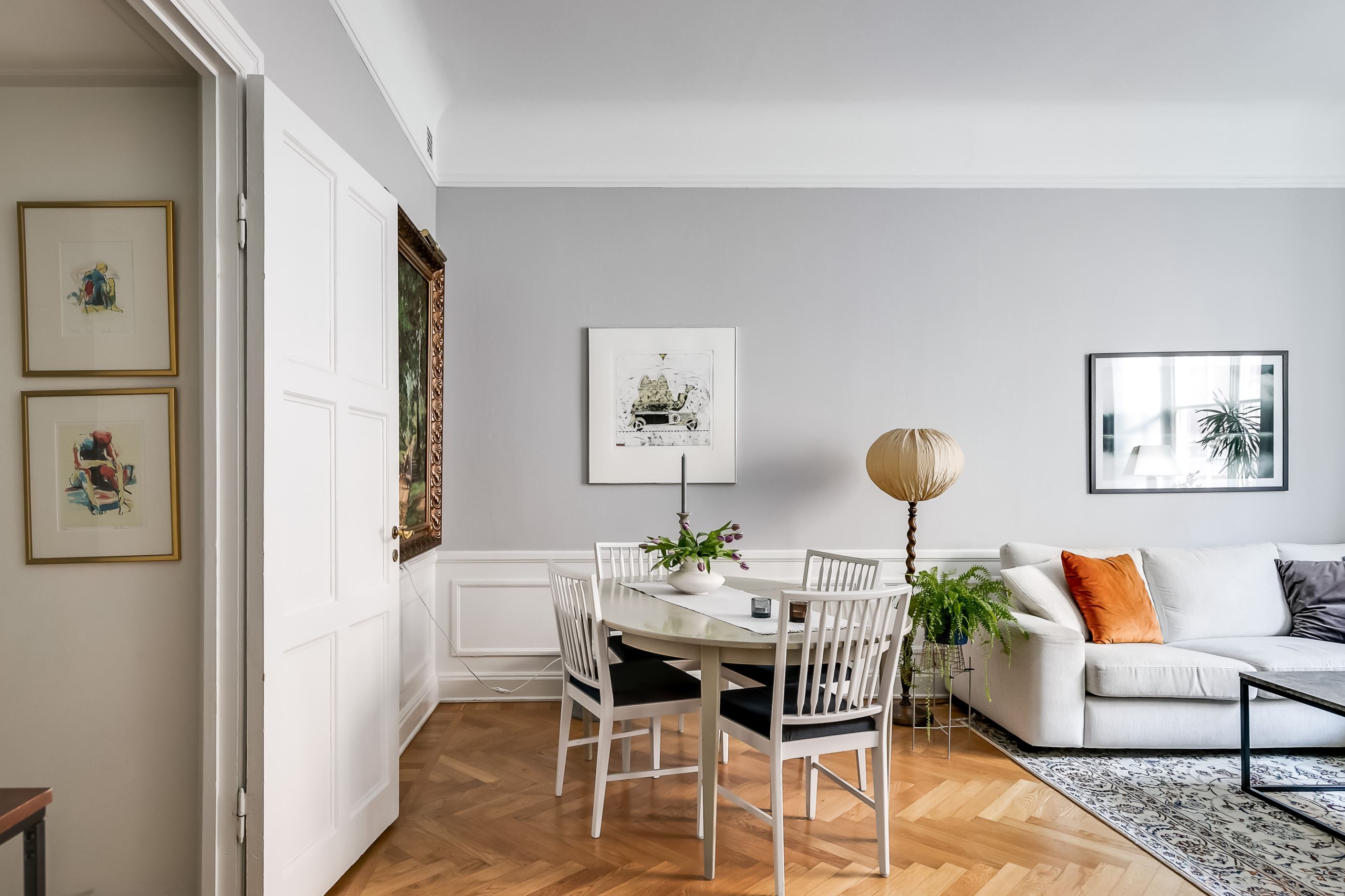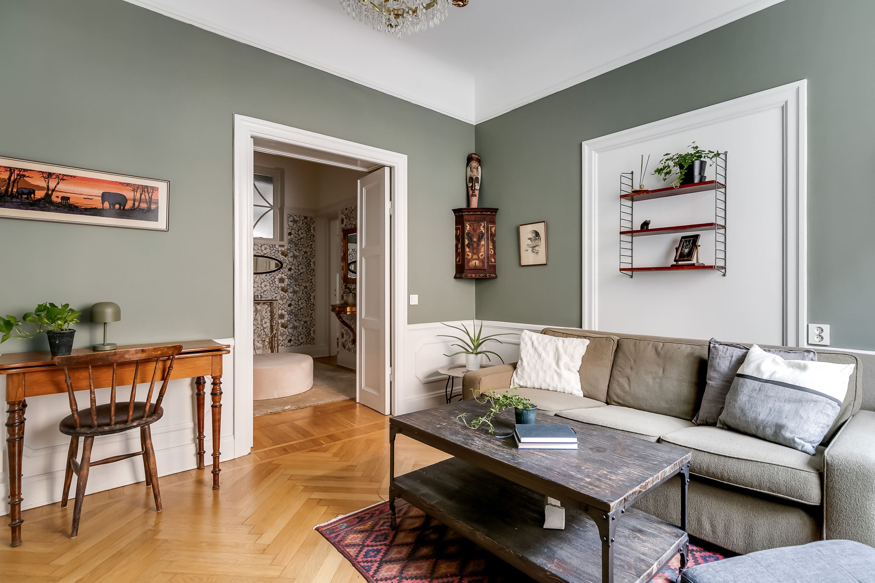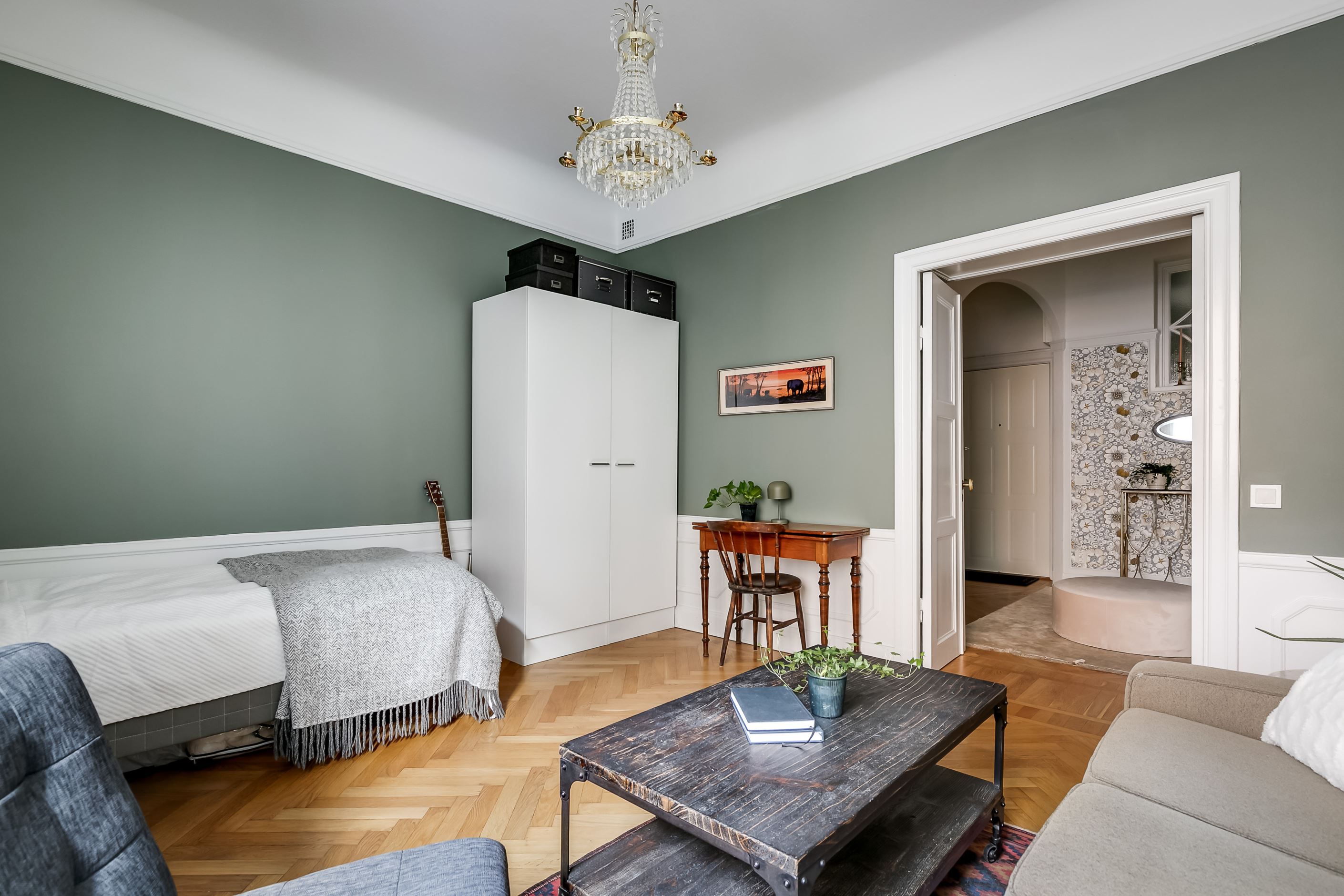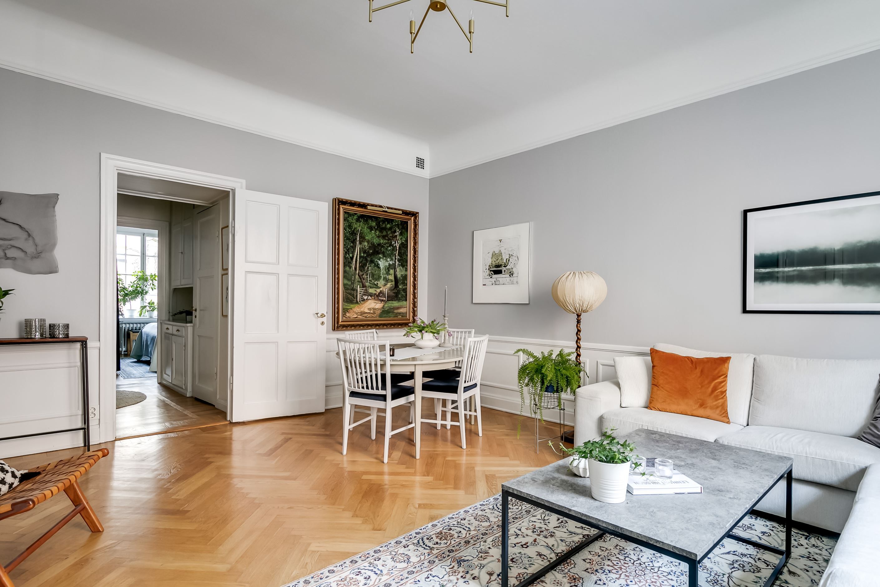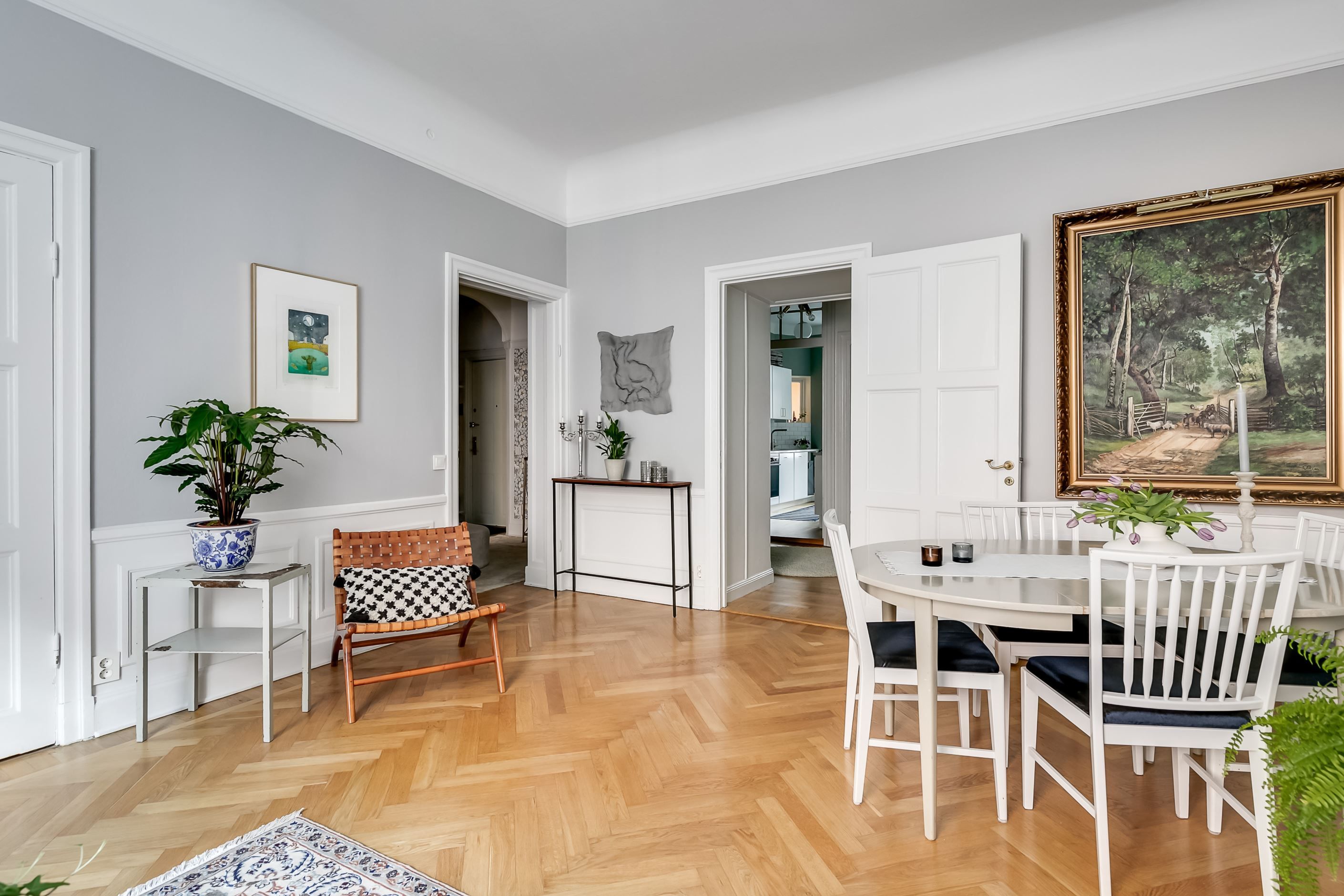 Här finns alla bekvämligheter med ett stort och fullt utrustat kök med matplats, nyrenoverat badrum, separat gästtoalett samt mycket gott om inbyggd förvaring. Två generösa rum med fin rymd, välvda fönster och pardörrar i högt läge ovan Roslagsgatan samt ett stort rofyllt sovrum i lugnt gårdsläge. El med Plejdsystem. Möjlighet till öppen planlösning för den som önskar, se alternativ planlösning.