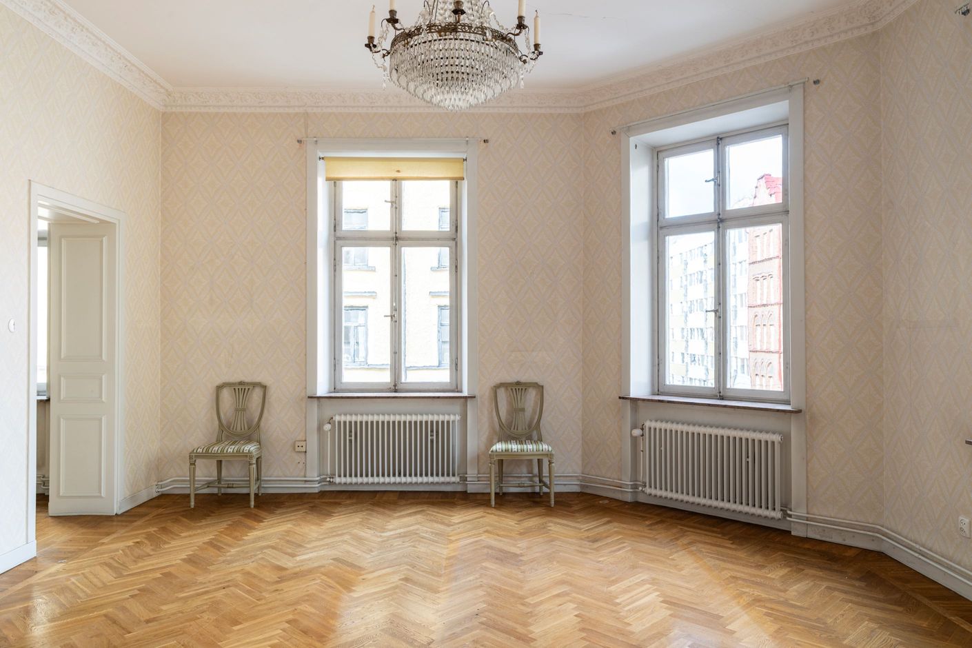 Lägenheten har alla de klassiska sekelskiftesattributen ni kan önska – generös takhöjd, vackra stuckaturer, djupa fönsternischer och stora spröjsade fönster som släpper in ett vackert ljus. Här finns en solid grund att utgå ifrån – men bostaden är i behov av renovering, vilket ger dig friheten att forma ditt nästa drömhem helt efter egen smak och stil.