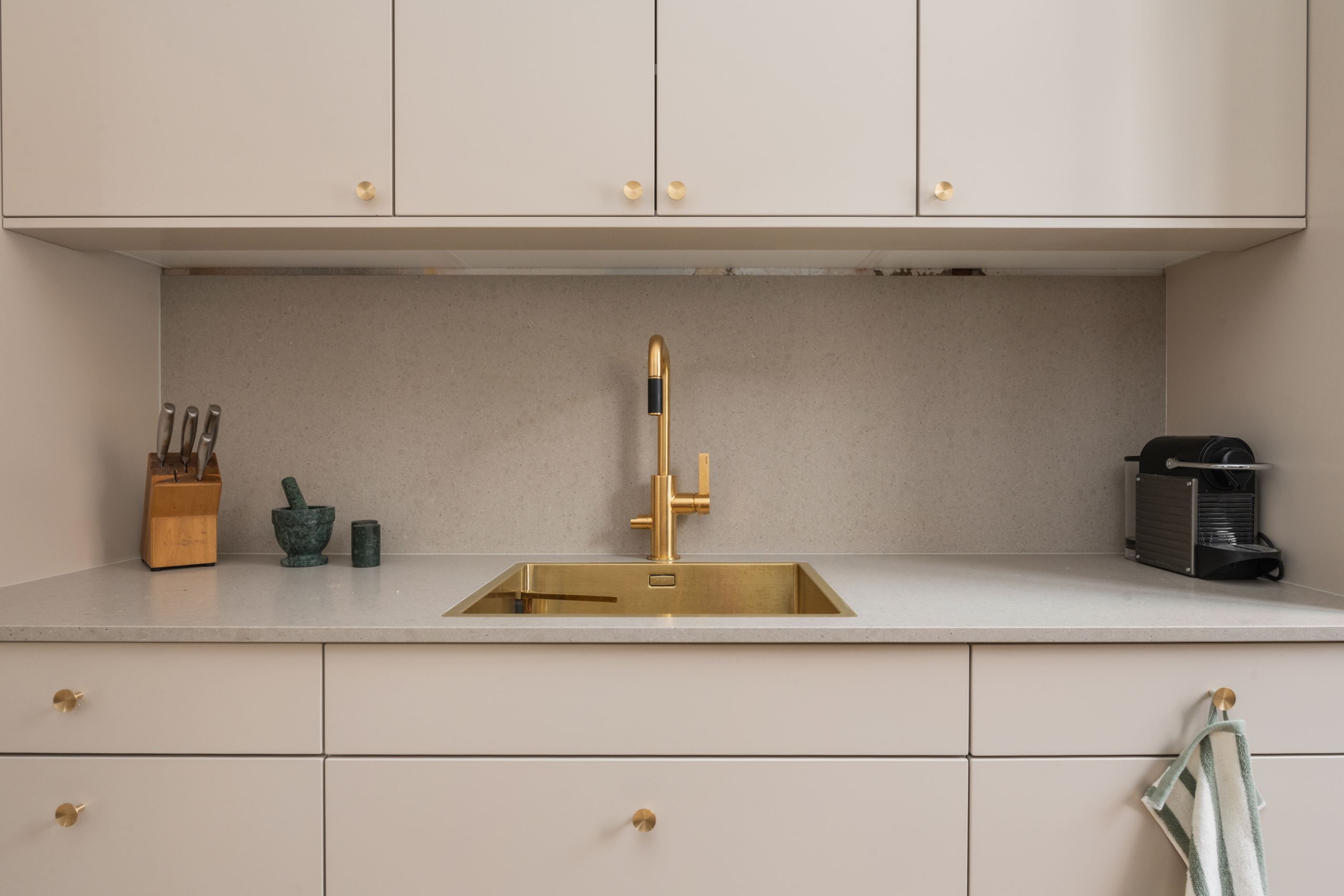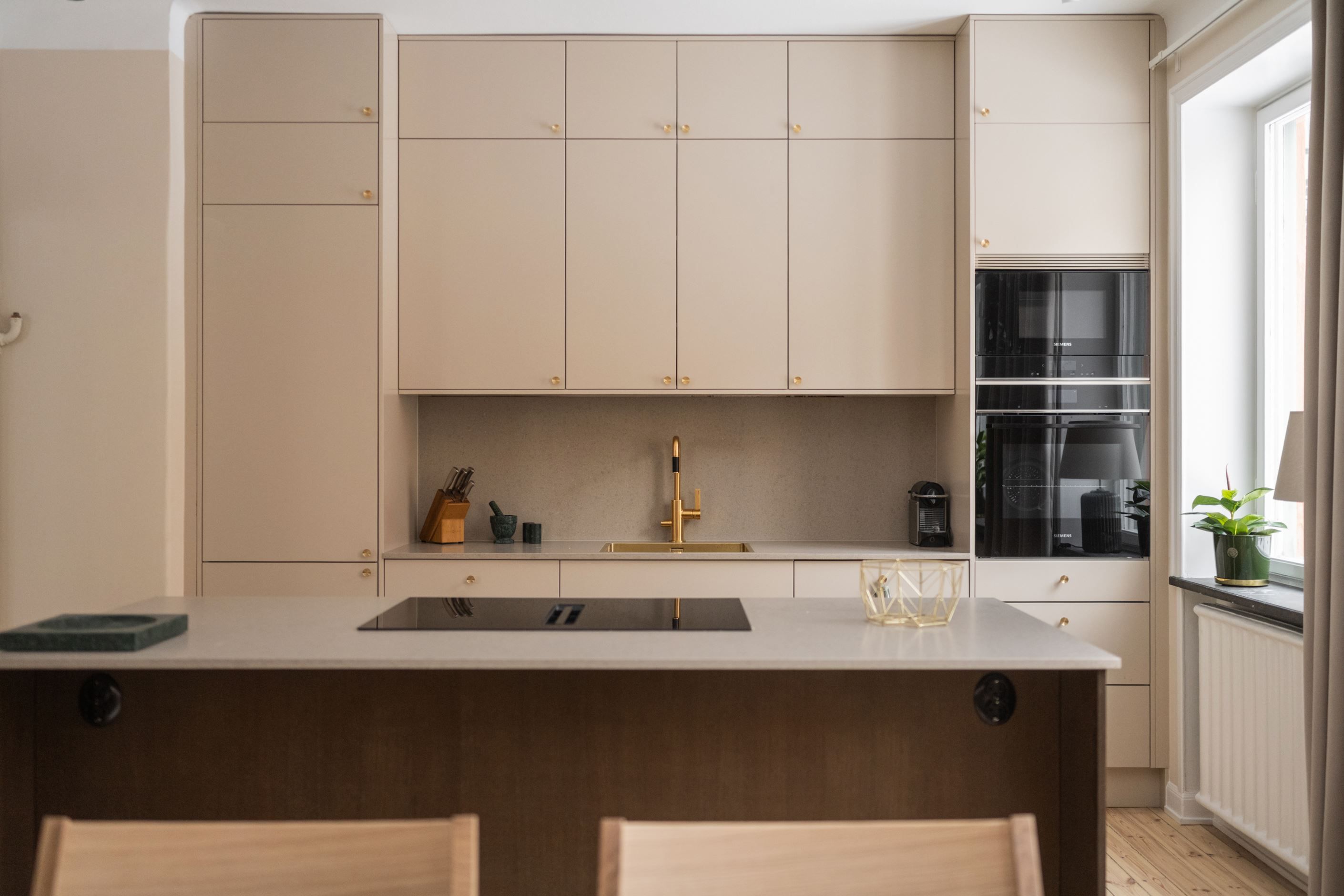 Den öppna och sociala planlösningen mellan kök och vardagsrum bjuder in till umgänge och middagar. Köket är stilrent utformat med en praktisk köksö som fungerar både som arbetsyta och samlingspunkt, samt en rymlig matplats med plats för större sällskap. Vardagsrumsdelen erbjuder generösa ytor för både soffgrupp och förvaring.