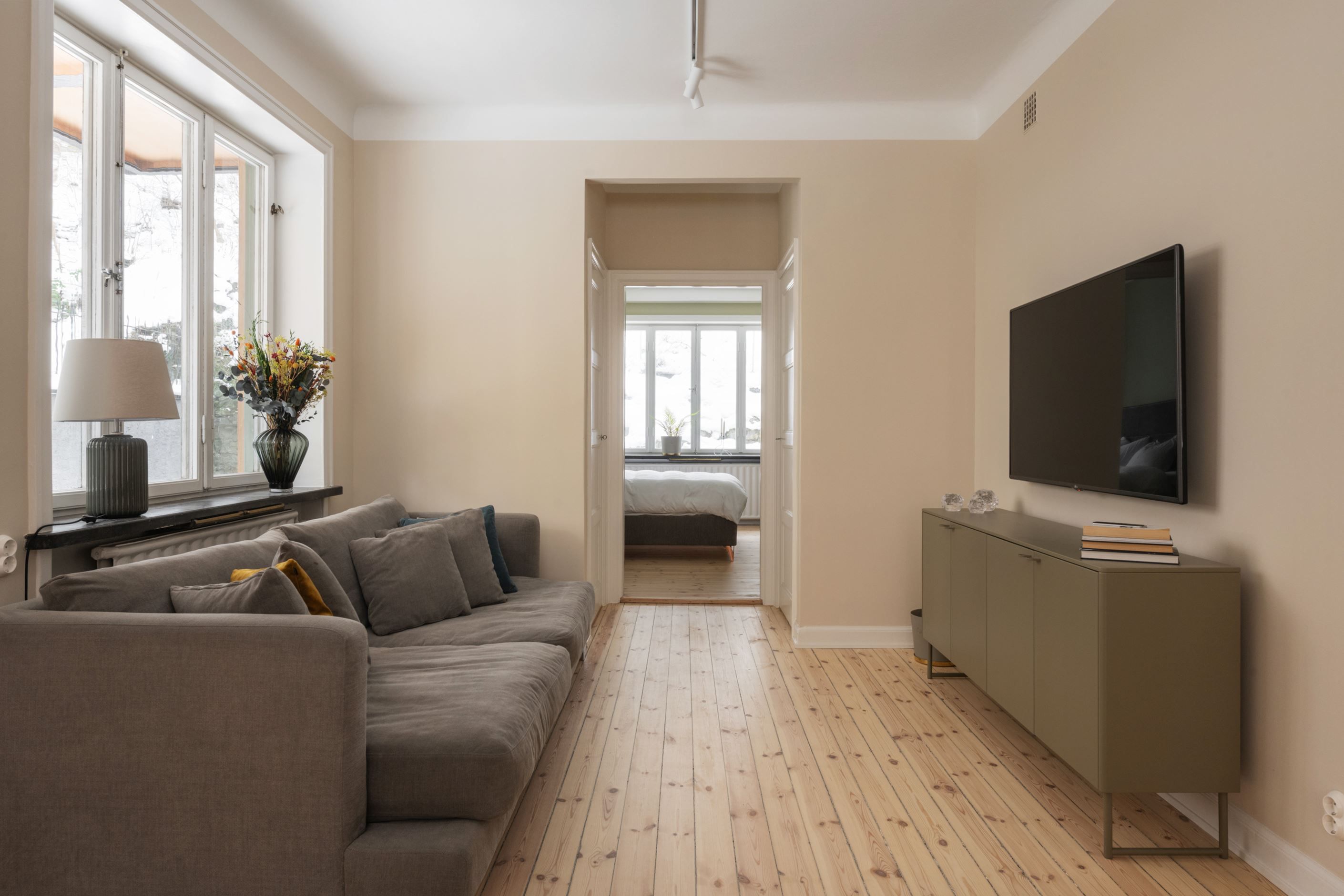 Välkommen till en topprenoverad 20-talslägenhet där klassisk charm möter modern funktion. Bostaden är nyrenoverad och har stilrena materialval, infräst el, genomgående vackra furugolv och ljusa färger som skapar ett elegant och enhetligt intryck.
